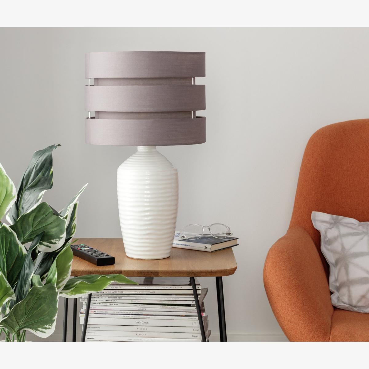Glow on, get cosy. A shade within a shade, this 3 tier easy-fit shade diffuses the light to create a warm and homely feel wherever it goes. Casting bright light up and down for functionality, and diffused light through the sides for atmosphere, it has a geometric design and a simple yet modern vibe, perfect for your lounge, bedroom or hallway. Can be fitted to ceiling pendants and table lamps. Available in other colours and with matching items to complete the look. Made from fabric. Size H22cm, Diameter 30cm. Recommended maximum bulb wattage 60 watts. Minimal assembly. Easy fit shade. Manufacturer's 1 year guarantee.