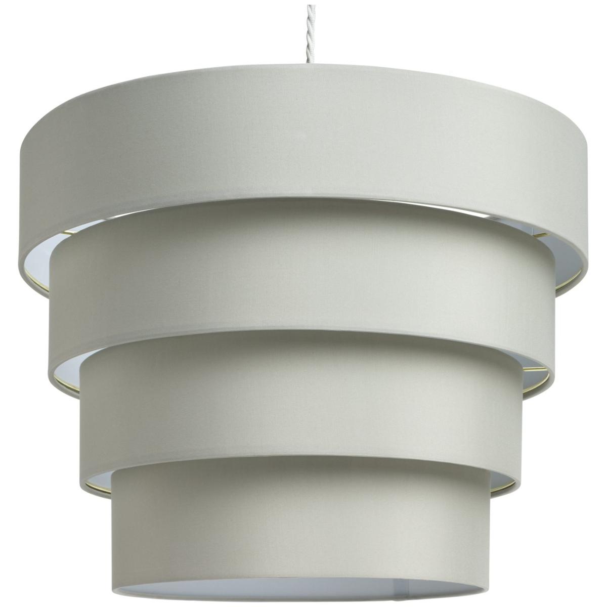 Ready to make a retro style statement? Go a shade mid-century with this striking 4-tier design. In cool grey, it'll smarten up your ceiling no end. The inside is cool too. With a quality brass plated fitting. Easy to put up and simple to love. Made from polyester. Size H34cm, Diameter 45cm. Recommended maximum bulb wattage 15 watts. Minimal assembly. Easy fit shade. Manufacturer's 1 year guarantee.