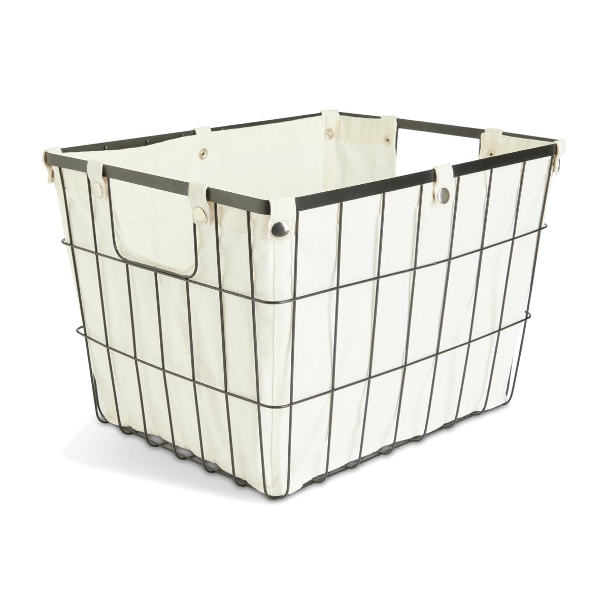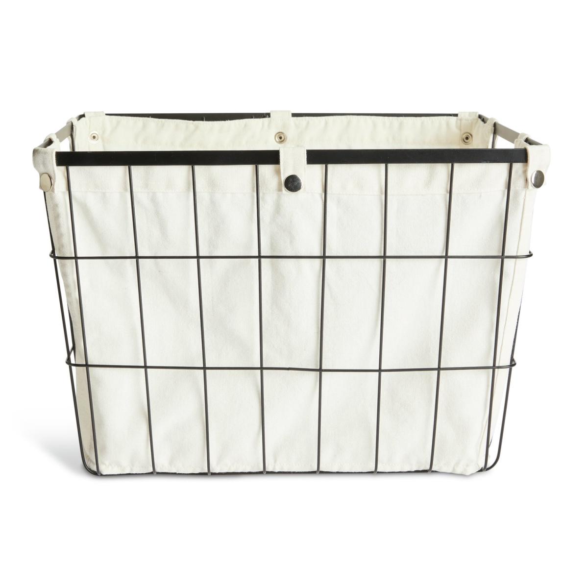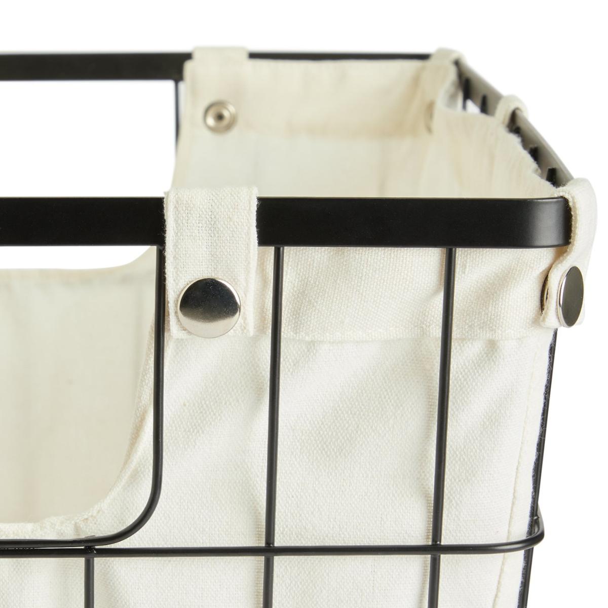 Get a little industrial with your laundry. A black metal grid frame with a removable cream fabric inner. Together they become one stark, smart laundry basket. Clean and fresh with that added industrial pizzazz. Stackable. Size H28, W40, D32cm. Weight 0.84kg. Fully assembled. Manufacturer's 1 year guarantee.