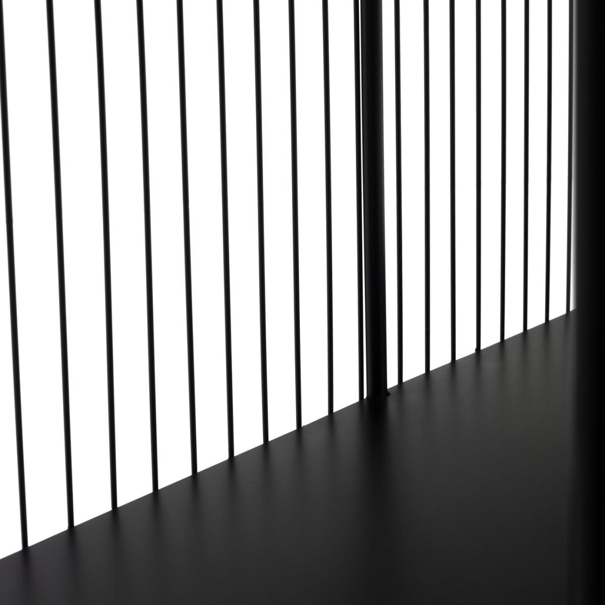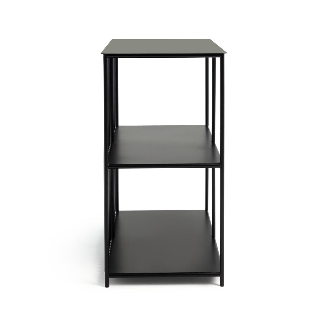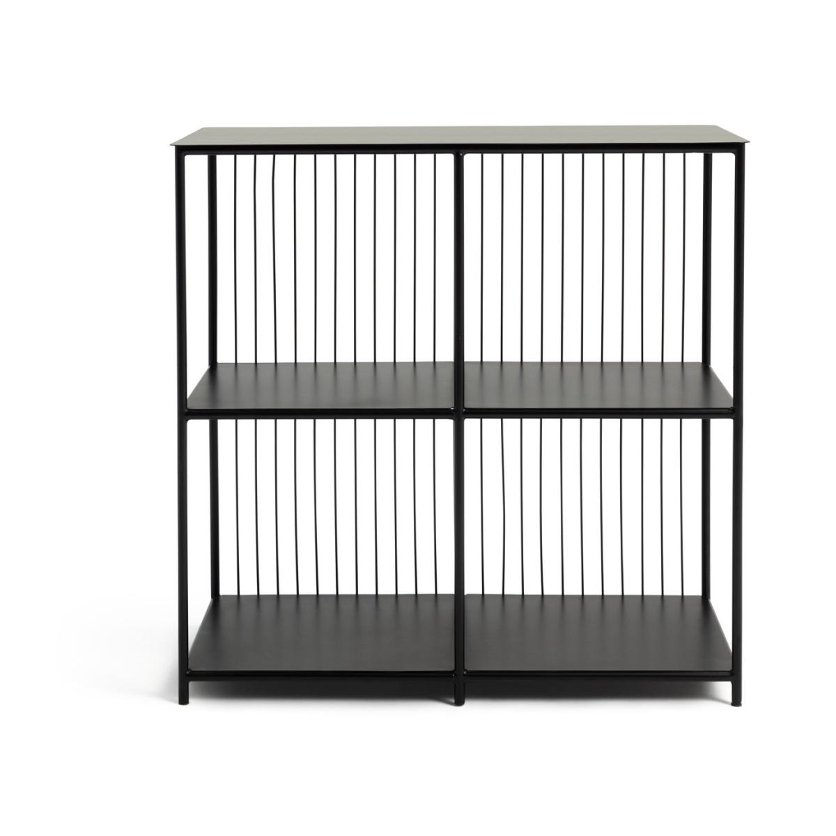 Urban, industrial and bang on-trend. Our modern black shelving unit is a cool way to organise your space. Features 3 shelves in powder-coated iron, and a slim wired back piece that makes a bold statement. Arrives fully assembled so fuss free. Fill it with books, photos or some trailing fresh greenery. Loft living style? You've nailed it.
