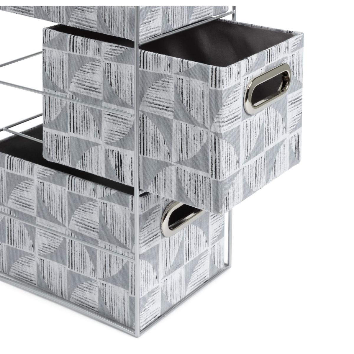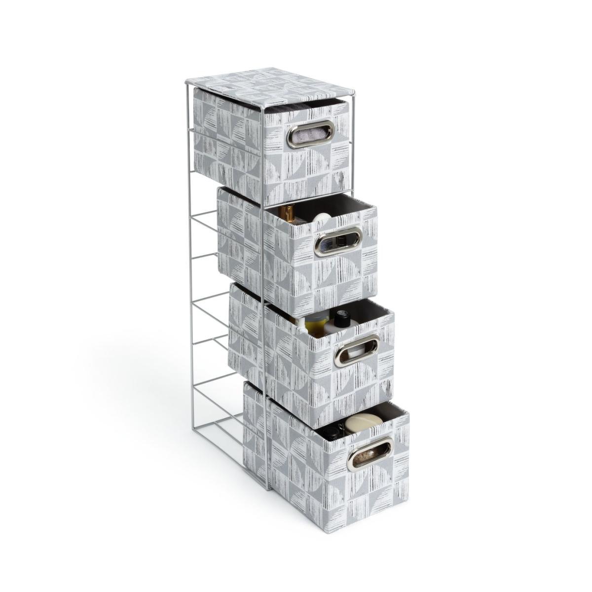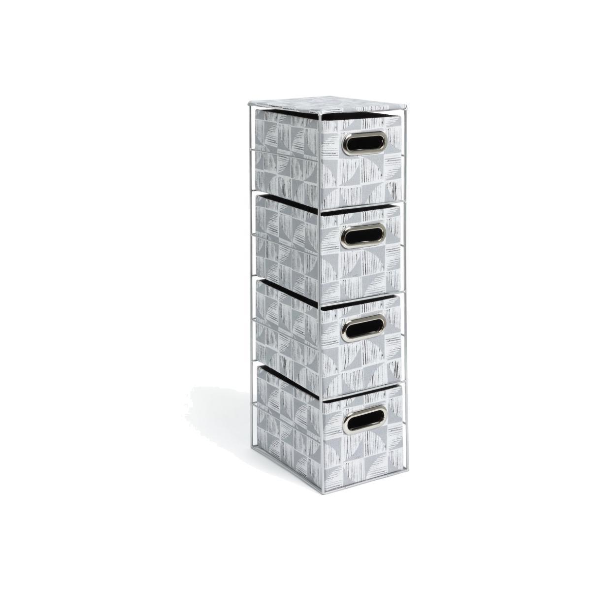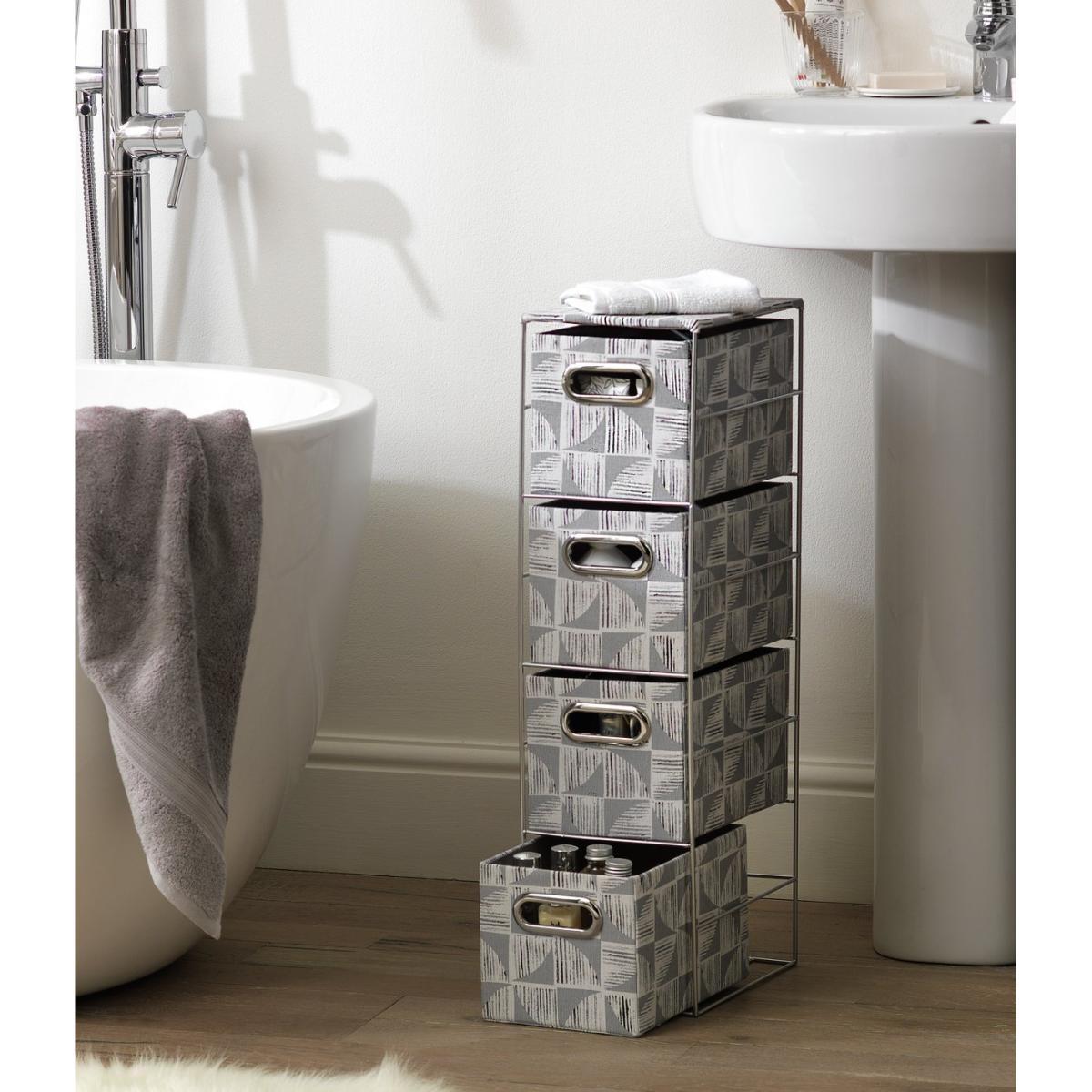 Bathroom bits everywhere? Our handy 4 drawer unit will get you organised. Sort your salt-scrubs from your skincare and your make-up from your rubber ducks. You'll be clutter-free in no time with this space-saving storage tower. We're loving its soft grey geometric pattern and smart chrome handles. Bring a modern touch to your shower space. Comes fully assembled too, ready to use.