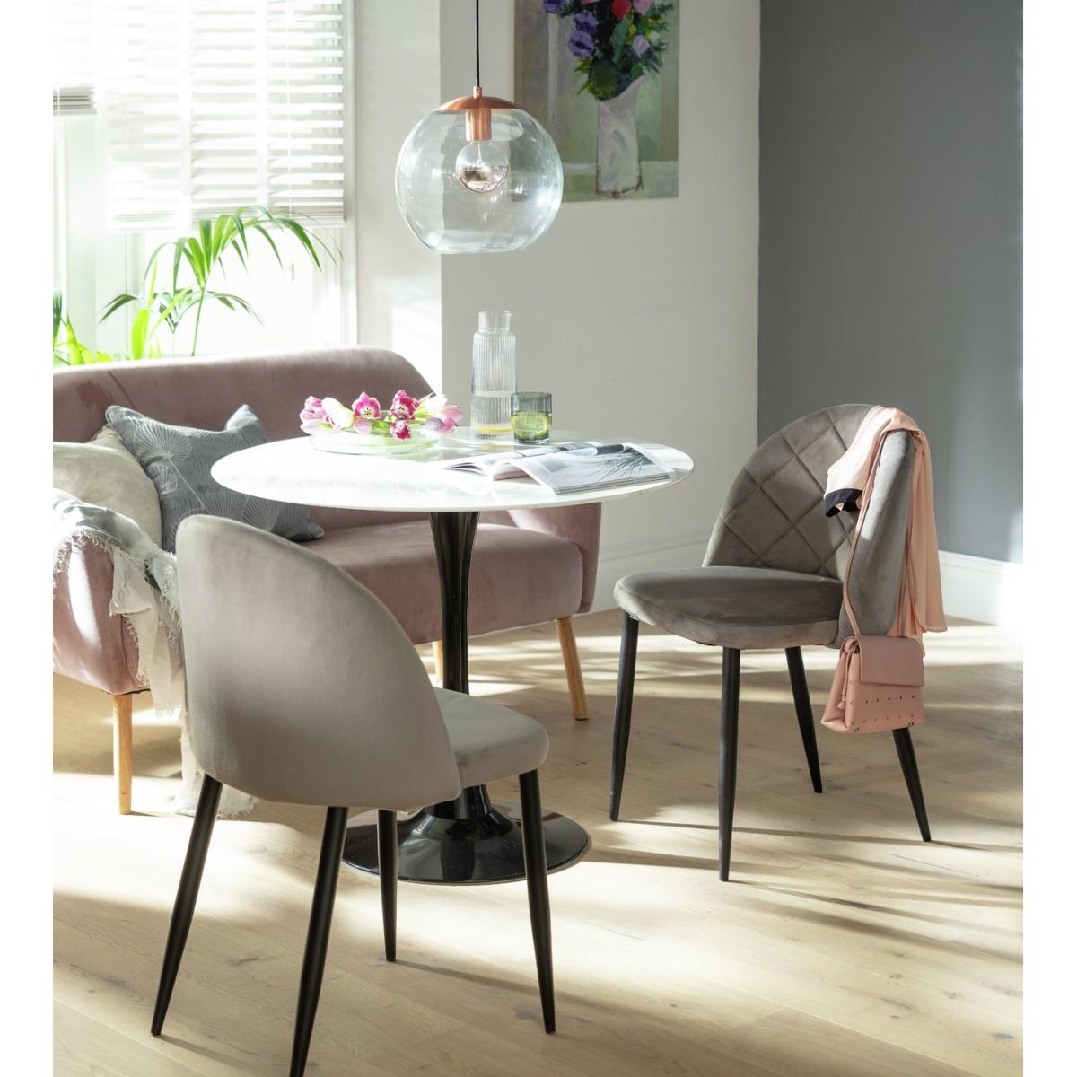 For statement seating choose Imogen. Thanks to their padded backs and comfy seats, this opulent chairs were made for dining. The deep stitching adds a luxurious touch to the proceedings whilst the velvet finish is tactile to touch. With the contrasting tapered black legs supporting, you're onto a real design winner. Go on, indulge your senses, and glam up your mealtimes with Imogen.