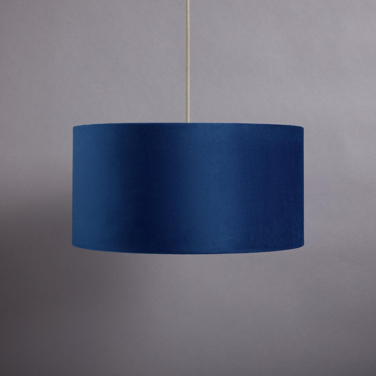 Lower the lights! This luxurious velvet shade in an elegant navy creates just the right mood for cosy evenings in. Sumptuous and indulgent, perfect if you're seeking a little Luxe sophistication. Our classic drum shape works three ways. Fit it as a ceiling shade in the lounge, to a lamp base by your bed or as a floor lamp to throw light on darker corners. Effortlessly diffuses the light to create a subtle, ambient glow. Heavenly!