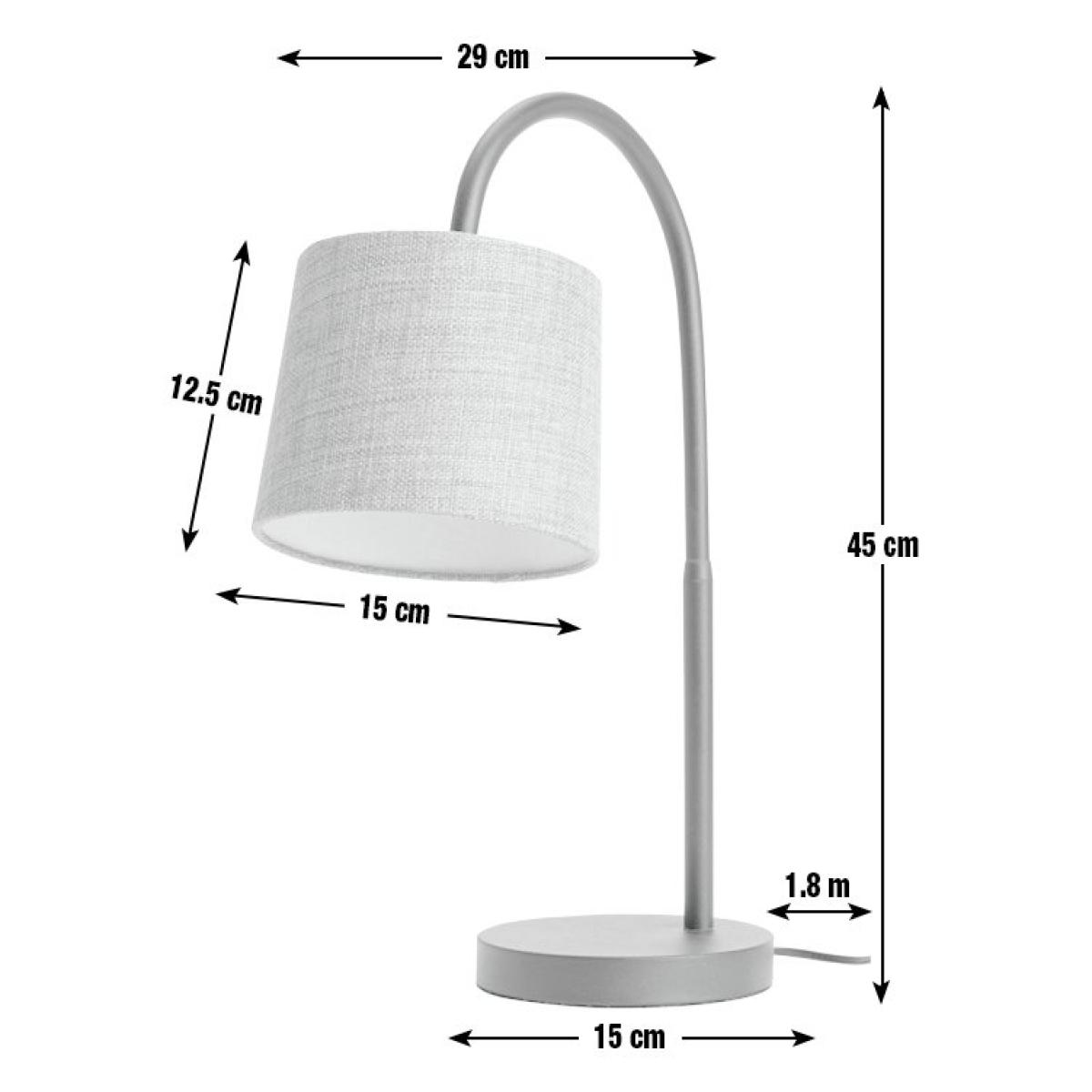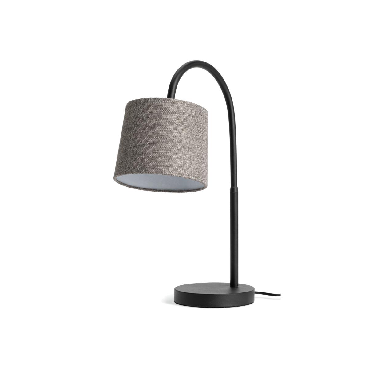A table lamp with poise. Bearing a grey linen-like shade on an elegantly bowed stem, there isn't anywhere that wouldn't work a treat. A modern piece that can go town or country, with an inline switch for easy operation. Dimensions: Overall size H45, Diameter 29cm. Shade size H12.5, D15cm. Diameter of base 15cm. Cord length 1.8m. Bulb Information: Bulbs required 1 x E14 small edison screw filament LED bulb(s) (not included). Recommended maximum wattage: 8 watts. LED bulb only. General Information: Shade colour: grey. Base colour: black. Shade material: fabric. Base material: metal. In-line switch. IP rating 20 - not suitable for bathroom use. Supplied assembled. Product is mains powered plug in. This lighting product is a class 2 fitting. Modern Country. Manufacturer's 1 year guarantee.