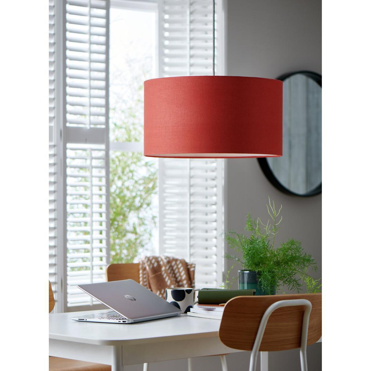 Shine bright. Our rust coloured shade creates a warm sunset glow for cosy evenings. Made from 100% linen, infuse your home with an organic, country feel. The perfect pop of autumnal colour for a living room or bedroom refresh. This beautifully textured drum shade has an understated elegance you won't want to live without.