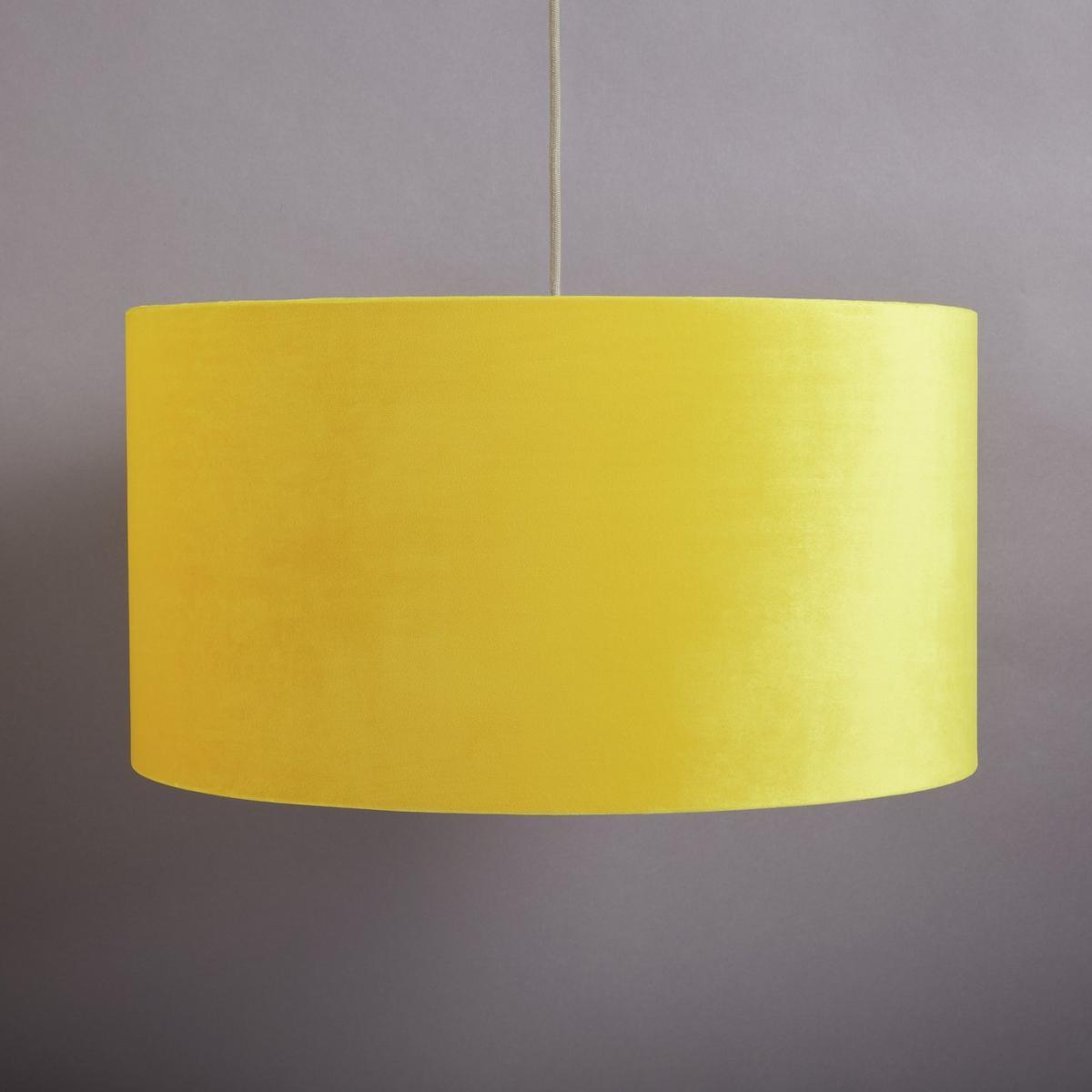 Lower the lights! This luxurious velvet shade in an elegant yellow creates just the right mood for cosy evenings in. Sumptuous and indulgent, perfect if you're seeking a little Luxe sophistication. Our classic drum shape works three ways. Fit it as a ceiling shade in the lounge, to a lamp base by your bed or as a floor lamp to throw light on darker corners. Effortlessly diffuses the light to create a subtle, ambient glow. Heavenly! To keep the tactile velvet shade looking pristine, dust lightly with a clean cloth now and then. We recommend pairing it with our Warley base for a perfect fit. Made from fabric. Size H26cm, Diameter 49cm. Recommended maximum bulb wattage 10 watts. Minimal assembly. Easy fit shade. Manufacturer's 1 year guarantee.