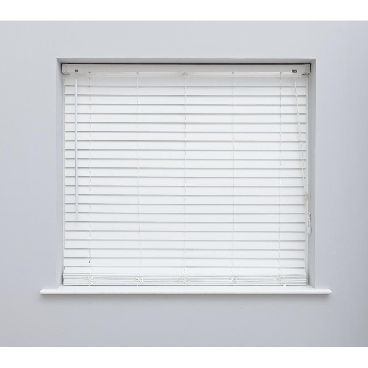 These faux wooden venetian blinds are a design classic, combining practicality with a crisp white finish. With an uncomplicated look that'll suit any decor, this blind has a tilting mechanism, giving you complete control over how much light is let in. You can choose between bathing the room in sunshine, gently filtering in light or blocking it out entirely. The angled slats are great at letting in light without compromising privacy.