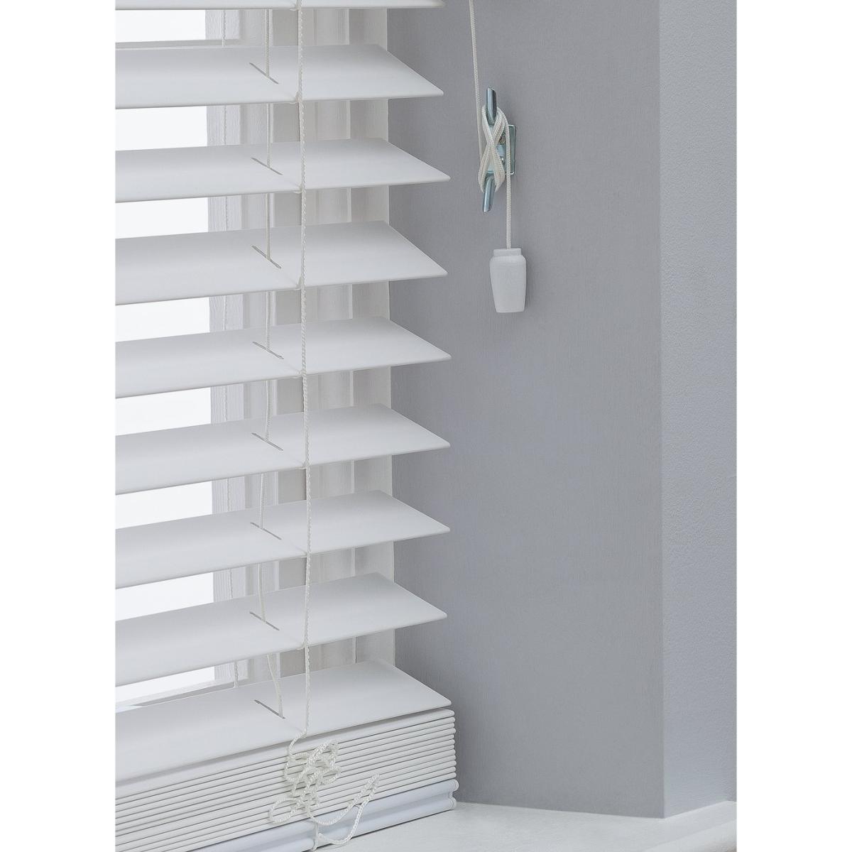 These faux wooden venetian blinds are a design classic, combining practicality with a crisp white finish. With an uncomplicated look that'll suit any decor, this blind has a tilting mechanism, giving you complete control over how much light is let in. You can choose between bathing the room in sunshine, gently filtering in light or blocking it out entirely. The angled slats are great at letting in light without compromising privacy.