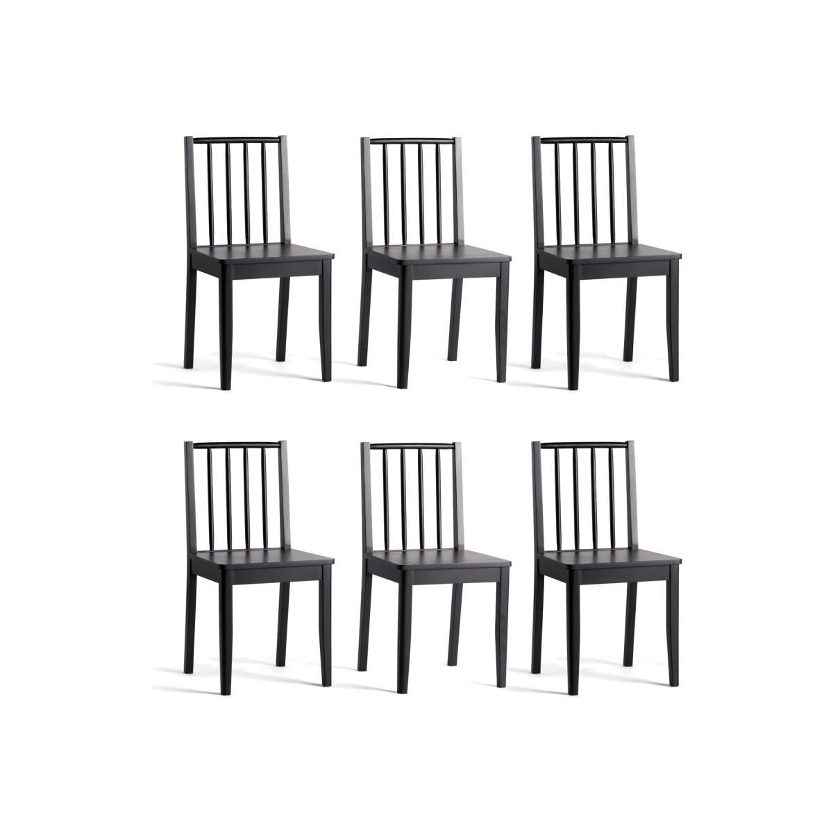 Dine in style with Nel. Our solid black chairs bring a natural feel to mealtimes. A tasteful update on traditional country chairs. The solid wood square seat is softened by curved spindles on the back, giving them a fresh, modern look. Family and friends to feed? Work from home? These versatile seats double up as desk chairs too. Add a cushion to get really comfy. Nel's got your back. Super easy to clean, just wipe with a damp sponge. Part of the Nel collection. Chair: 6 chairs supplied. Size H84.5, W47, D48cm. Seat height 45cm. Solid wood frame with solid wood legs. Solid wood seat pad. Self-assembly - 1 person recommended. Max user weight per chair 100kg. Individual chair weight 6.5kg. Clean with a sponge and warm soapy water. Package Dimensions: Chair package size: H12, W52, D92cm. General information: We are excited to be welcoming some of our favourite HOME products into the Habitat range. Your product may arrive in Habitat or HOME packaging. Manufacturer's 1 year guarantee.