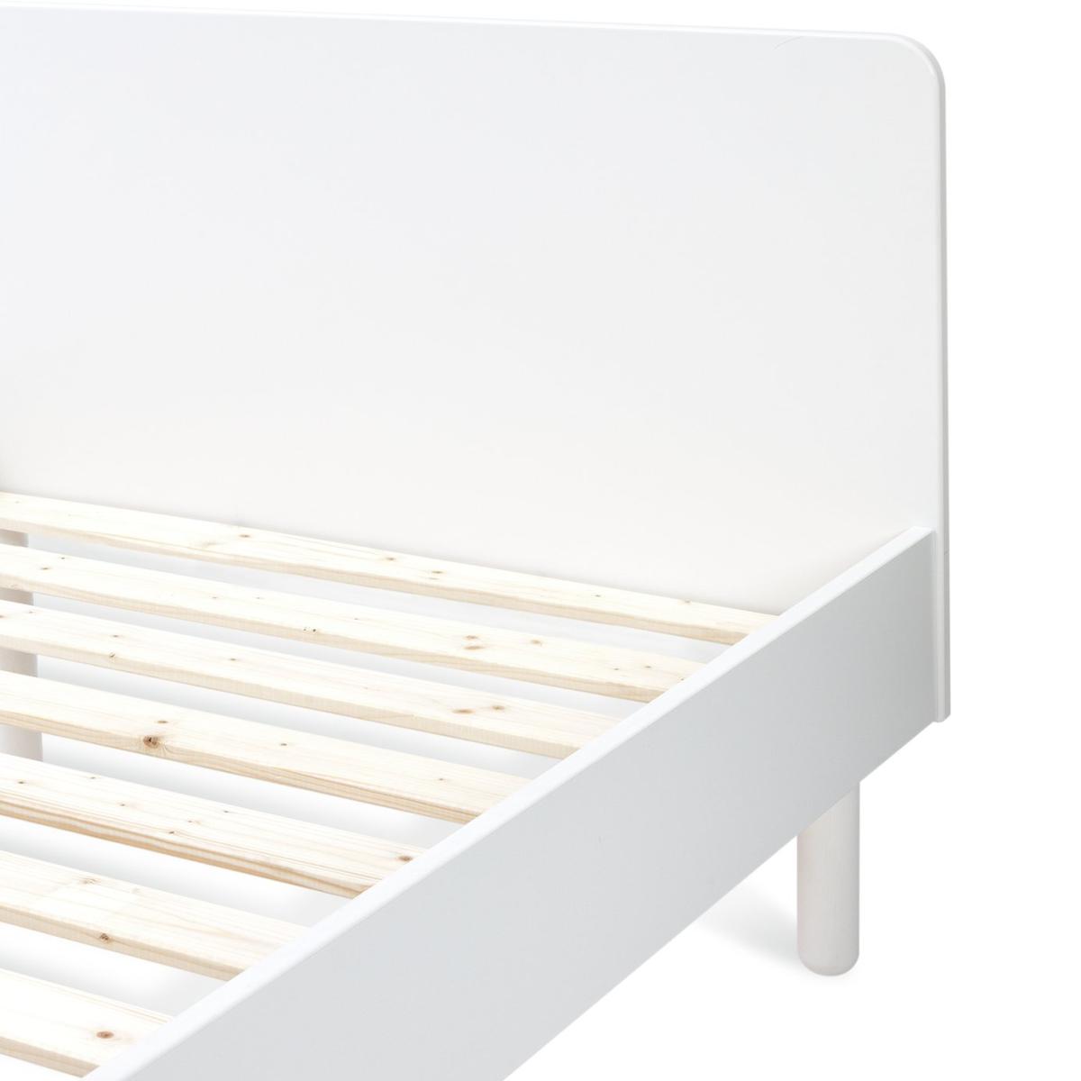 Another fresh idea from Derby-based designer D'arby Mawson, exclusive to Habitat. Bringing a sense of joy and personality to any child's bedroom, this Alba single bed has a soft rounded aesthetic in a calming neutral white. With a headboard and space underneath, it's airy, fun and functional. Coordinate with other pieces from the Alba collection to complete the look. Requires a single mattress (available separately). Part of the specially commissioned collection in celebration of Habitat's 60 years of British design. Part of the Habitat 60 collection. Bed frame: Single bed. White bed with a solid wood and mdf frame. Includes wooden slats. Packed flat - 2 people recommended. Maximum user weight 120kg. Suitable for adult use (safety tested to 100kg). Dimensions: Frame size L194, W73, H95cm. Package dimensions: Package 1 size H6.5, W54.5, D197cm. General information: Manufacturer's 2 year guarantee. FSC certified meaning the materials used for this product are responsibly sourced.