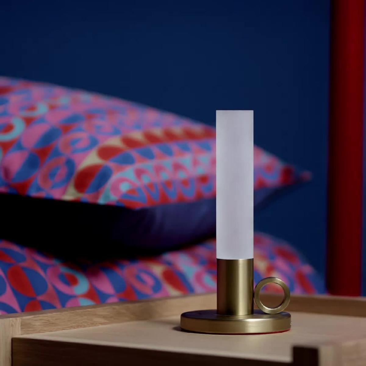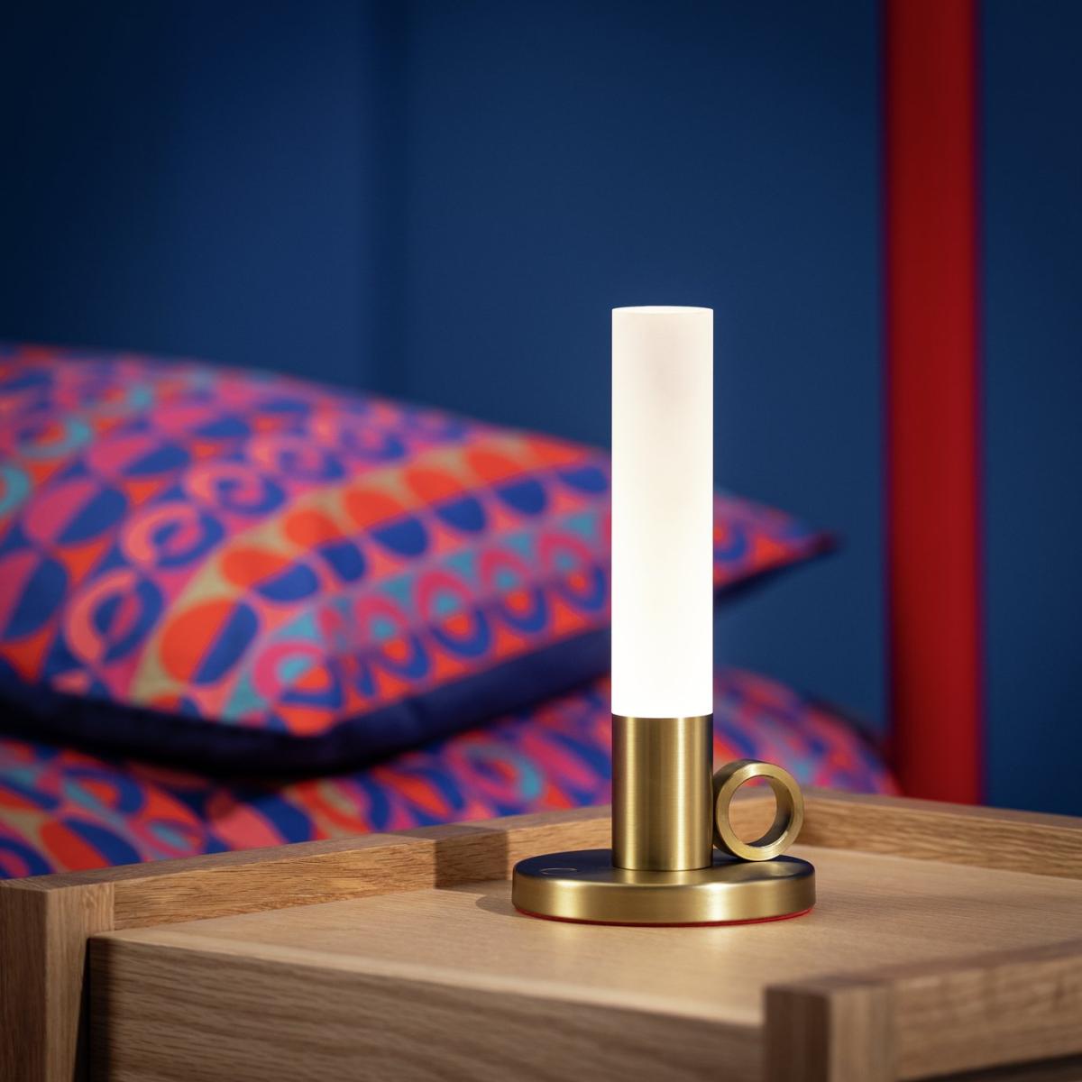 Introducing 'Chamber' by Sebastian Conran - highly acclaimed British designer whose thoughtful designs seek to enhance the experience of life. Returning to Habitat with this exclusive design, Sebastian Conran's rechargeable and dimmable Chamber bedside lamp takes inspiration from traditional candle sticks. With a translucent glow, Chamber is the perfect downtime companion. Part of the specially commissioned collection in celebration of Habitat's 60 years of British design. Dimensions: Overall size H23.5, Diameter 12cm. Diameter of base 12cm. Cord length 1.8m. Bulb Information: Bulbs required 1 x integrated LED bulb(s) (included). Colour rendering index 80. Colour temperature 3000. K. Rated luminous flux 80 lumens. General Information: Shade colour: white. Base colour: gold. Shade material: acrylic. Base material: metal. Product features: USB connectivity. Touch sensor - 4 stage touch control. IP rating 20 - not suitable for bathroom use. Minimal assembly. Product is mains powered plug in. This lighting product is a class 3 fitting. Habitat 60. Manufacturer's 1 year guarantee.