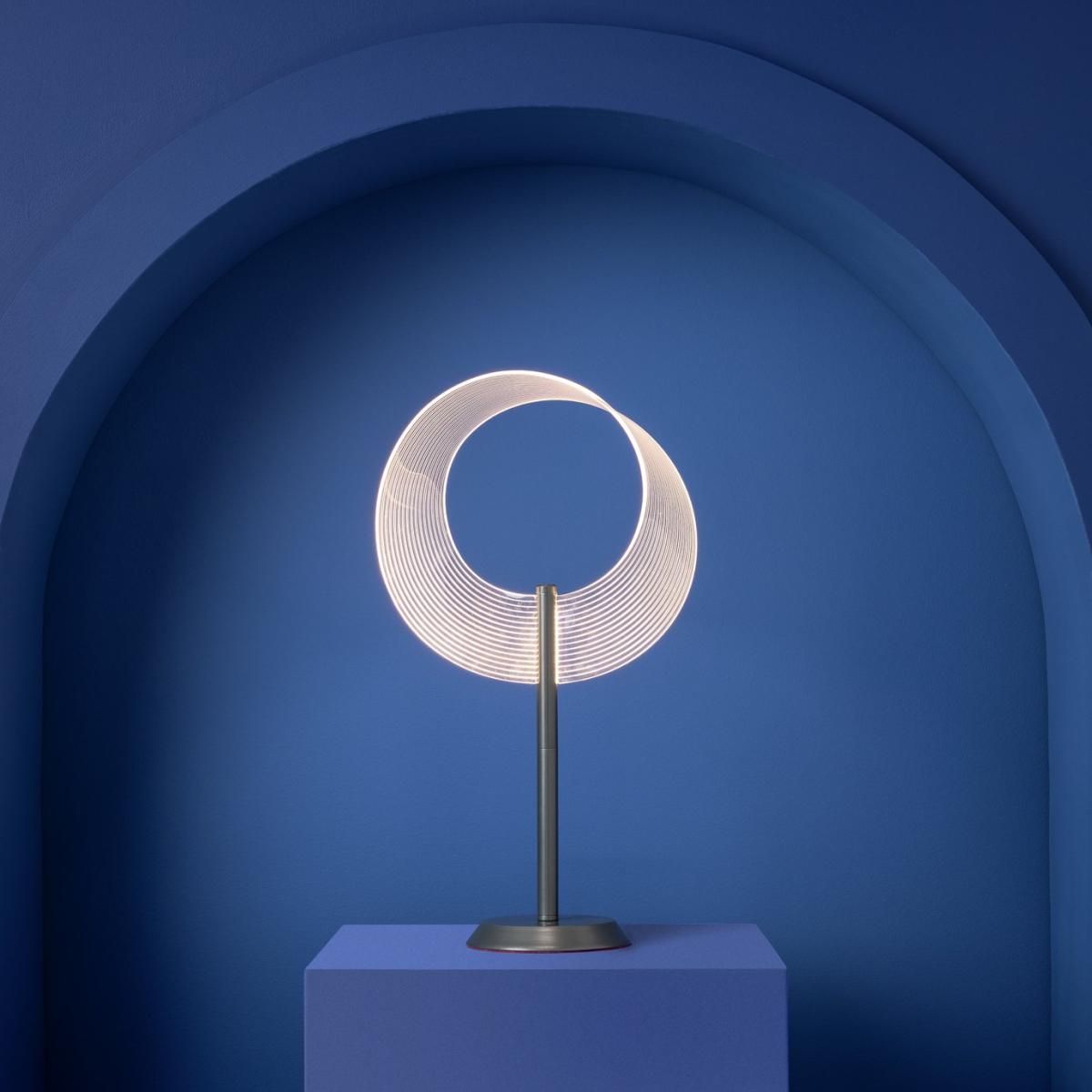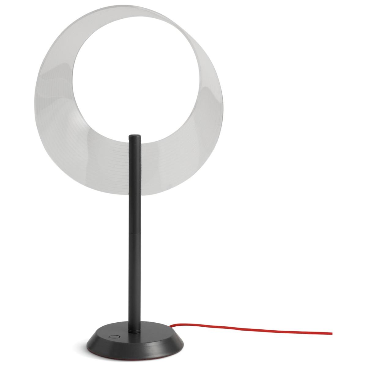 Introducing 'Compass' by Sebastian Conran - highly acclaimed British designer whose thoughtful designs seek to enhance the experience of life. Returning to Habitat with this exclusive design, Sebastian Conran's Compass table lamp takes inspiration from the 19th century discovery of the single sided geometric infinity loop. Combining gun metal, acrylic and a vibrant red woven cord, this versatile lamp creates a soft ambience in any room setting. Part of the specially commissioned collection in celebration of Habitat's 60 years of British design. Dimensions: Overall size H51, Diameter 29cm. Shade size H29, D29cm. Diameter of base 15cm. Cord length 1.8m. Bulb Information: Bulbs required 1 x integrated LED bulb(s) (included). Colour rendering index 80. Colour temperature 3000. K. Rated luminous flux 180 lumens. General Information: Shade colour: clear. Base colour: black. Shade material: acrylic. Base material: metal. Switch on product base. IP rating 20. Fully assembled. Product is mains powered plug in. This lighting product is a class 3 fitting. Habitat 60. Manufacturer's 1 year guarantee.