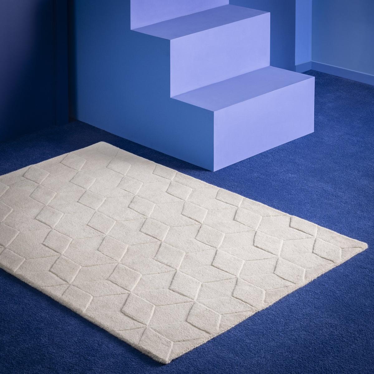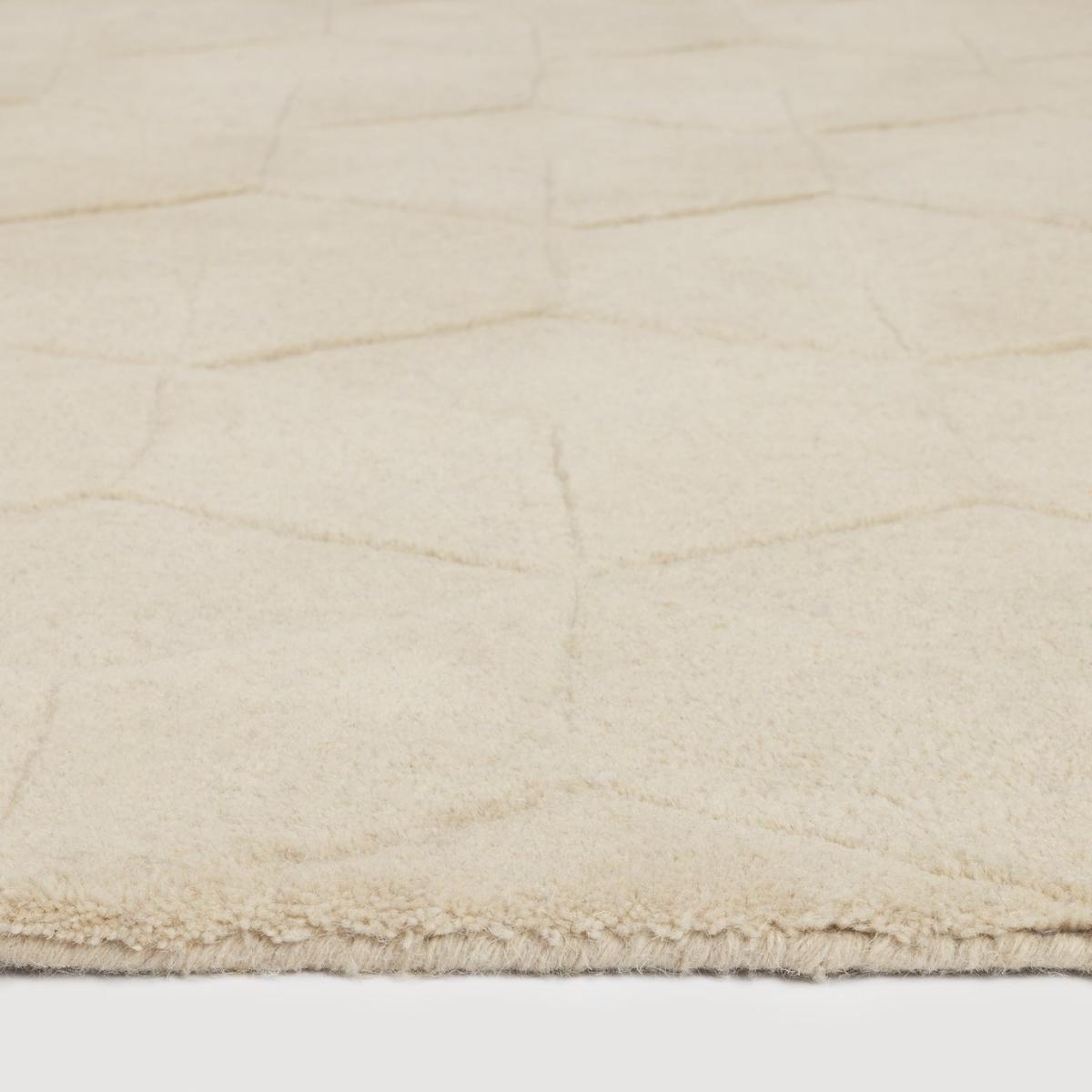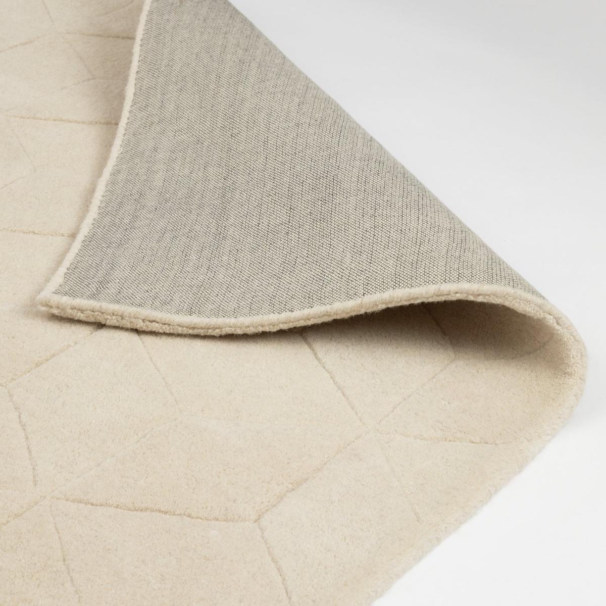 Taking inspiration from mid-century prints, in-house designer Rachel Greenaway's Geo rug is made from 100% wool and is carved to give a 3-dimensional effect. In a light of-the-moment natural tone, it's an easy to live with piece that's great for creating a relaxed and layered look. Part of the specially commissioned collection in celebration of Habitat's 60 years of British design. Hand made. Made in India. 100% wool. Spot clean only. Size L170, W120cm. 8.5kg. Natural netural hexagone low high tufted design.