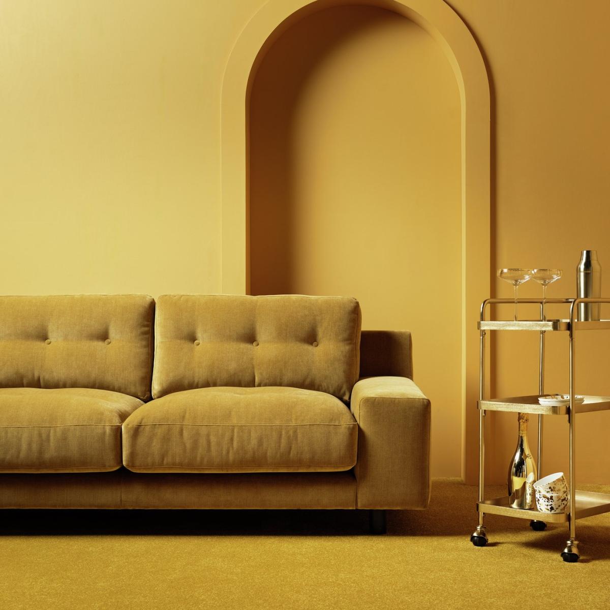 Essential for entertaining in the 50s, the art deco inspired mobile drinks trolley is once again a fashionable must have. This brushed gold tubular framed design blends practicality with luxury. Featuring 3 tray-style shelves with a top glass surface and safety bar for crafting cocktails or placing the ice bucket. Modern materials in a vintage-esque style from our very own in-house designer, Will Hudson. The Habitat 60 Gold Edit has been specially commissioned in celebration of Habitat's 60 years of British design. A beautiful capsule collection that is unapologetically luxurious, wonderful for celebrations and year-round entertaining. Part of the Habitat 60 Gold Edit collection. Made from metal and glass. Glass top. 3 shelves. Metal handle. General information: Self-assembly. Size H78, W35, D52.75cm. Manufacturer's 1 year guarantee.