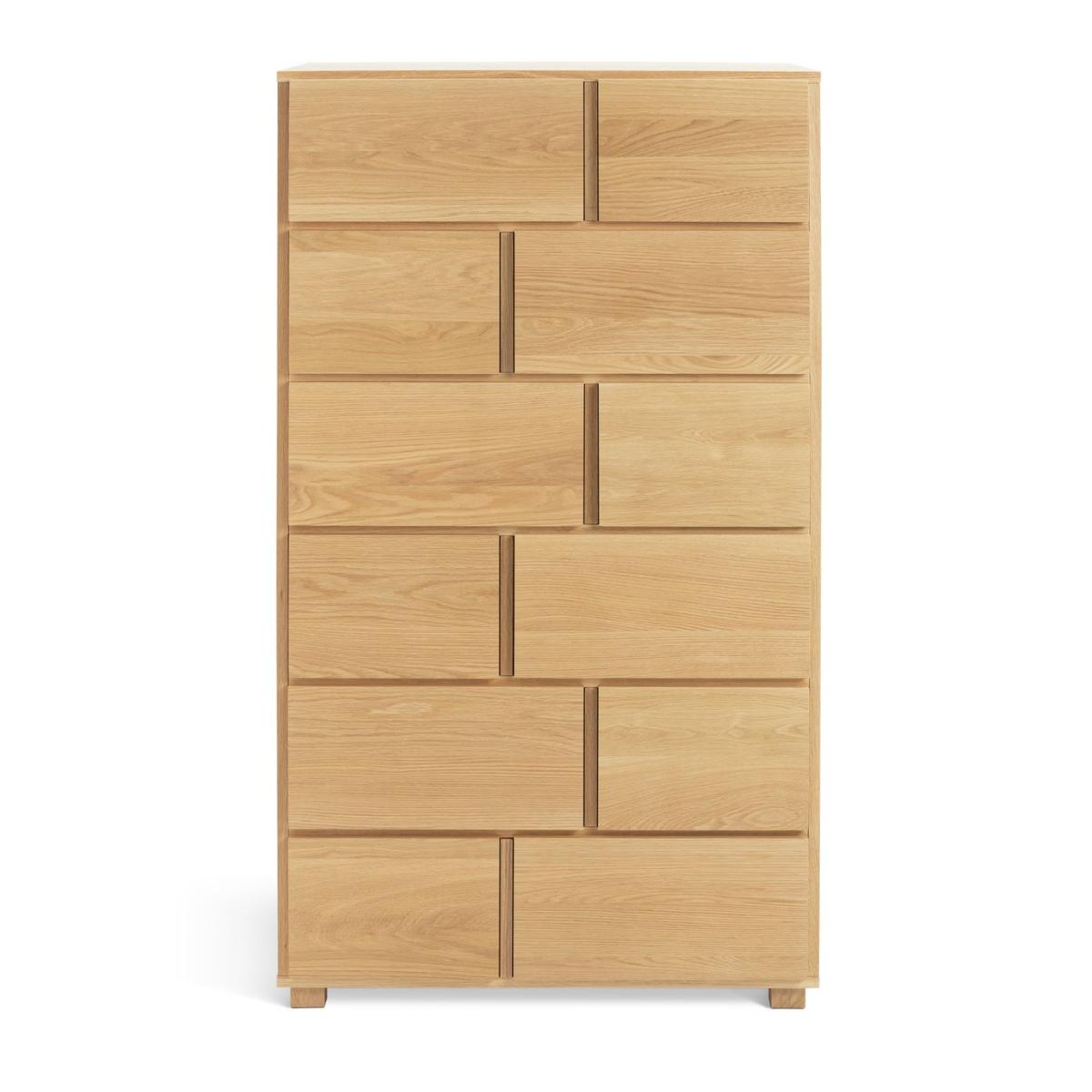 Reintroduced from the Habitat archives, the Hana collection remains remarkable in its contemporary appeal and timeless design. First launched 20 years ago, the Hana tallboy is crafted using FSC solid oak and oak veneer. With dovetail joints and smooth opening actions on all the drawers, it oozes quality and provenance. Balanced, clean, iconic. Part of the specially commissioned collection in celebration of Habitat's 60 years of British design. Part of the Habitat 60 collection. Made of oak and oak veneer. 12 drawers. Packed flat - 2 people recommended (includes wall fixings). If this product is over 60cm high it must be securely attached to the wall to prevent overturning. Dimensions: Size H146.5, W78.5, D50cm. Internal drawer H19.5, W39.5, D43.5cm. Large internal drawer H19.5, W52.5, D43.5cm. Weight 110.5kg. Package Dimensions: Package 1 dimensions: H57.5, W94, D17cm. Package 1 weight: 28.5kg. Package 2 dimensions: H57.5, W151, D9.5cm. Package 2 weight: 33kg. Package 3 dimensions: H55, W94, D27cm. Package 3 weight: 20kg. General information: FSC certified meaning the materials used for this product are responsibly sourced. Manufacturer's 1 year guarantee.