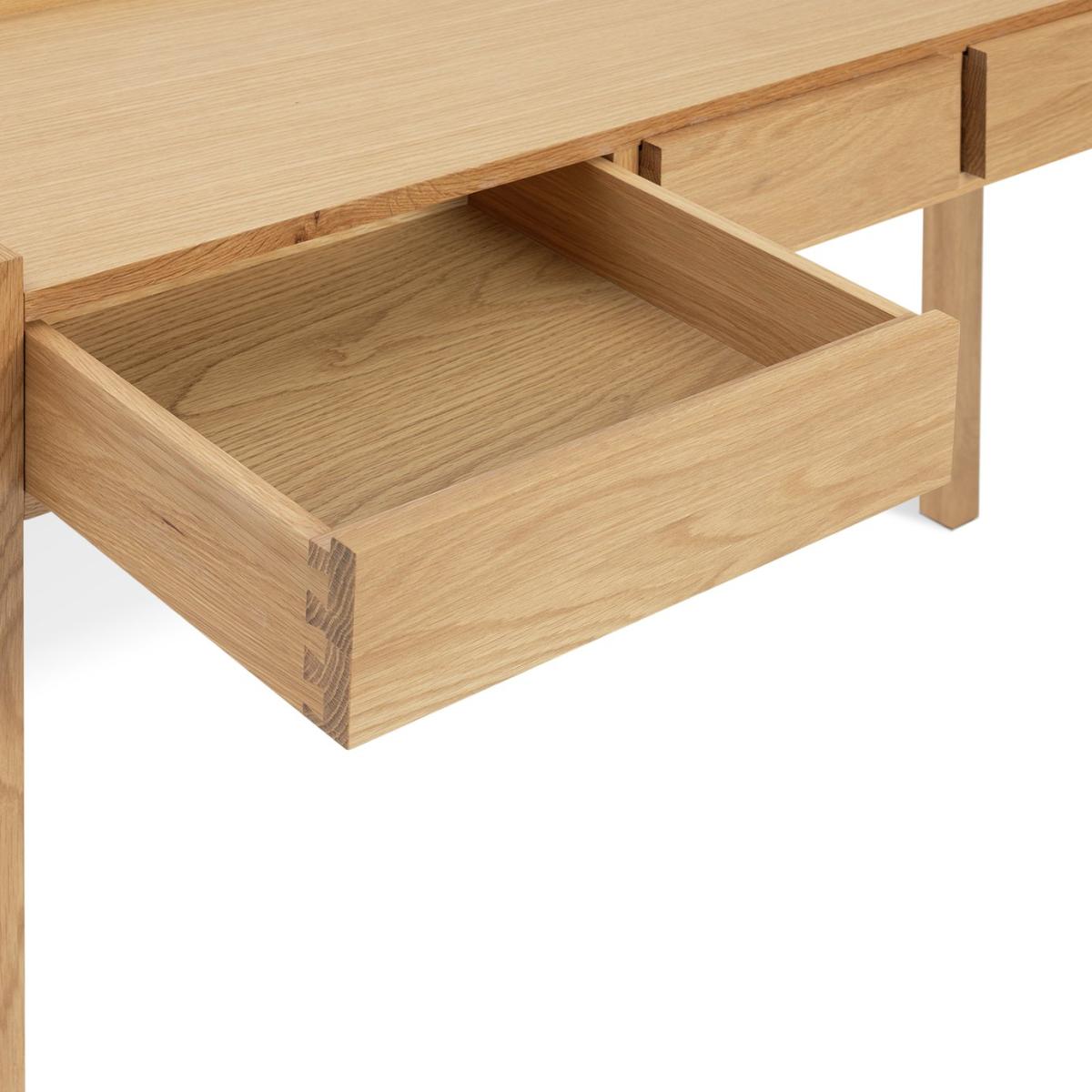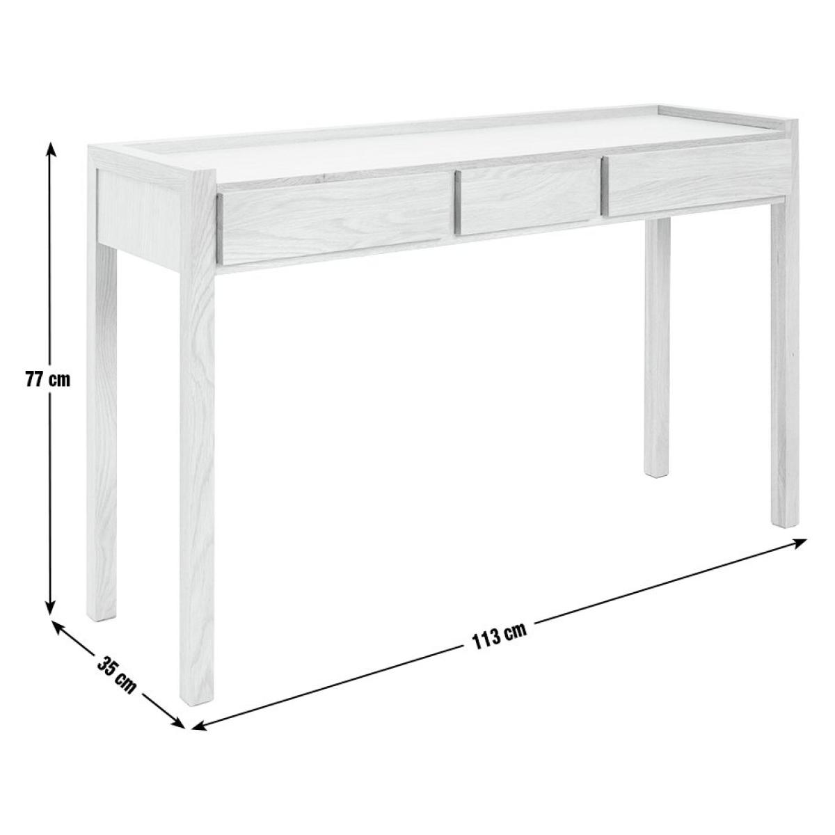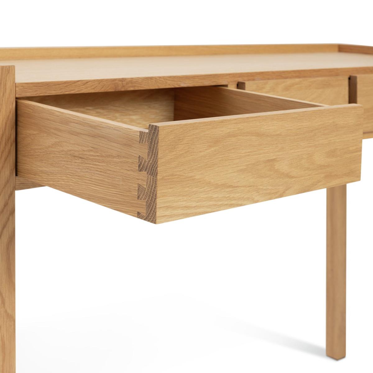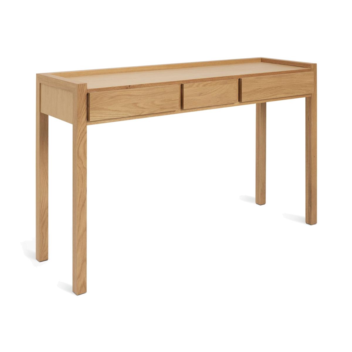 Reintroduced from the Habitat archives, the Hana collection remains remarkable in its contemporary appeal and timeless design. First launched 20 years ago, the Hana console dressing table is crafted using FSC solid oak and oak veneer, and works well as a console table, a dressing table or a small footprint desk. With dovetail joints and smooth opening actions on all the drawers, it oozes quality and provenance. Balanced, clean, iconic. Part of the specially commissioned collection in celebration of Habitat's 60 years of British design. Part of the Habitat 60 collection. Made from oak and oak veneer. 3 drawers. Packed flat - 2 people recommended (includes wall fixings). If this product is over 60cm high it must be securely attached to the wall to prevent overturning. Dimensions: Size H77, W113, D35cm. Internal drawer H8, W23, D30cm. Weight: 22.5kg. Package Dimensions: Package 1 dimensions: H45, W121, D25cm. Package 1 weight: 25kg. General Information: FSC certified meaning the materials used for this product are responsibly sourced. Manufacturer's 1 year guarantee.