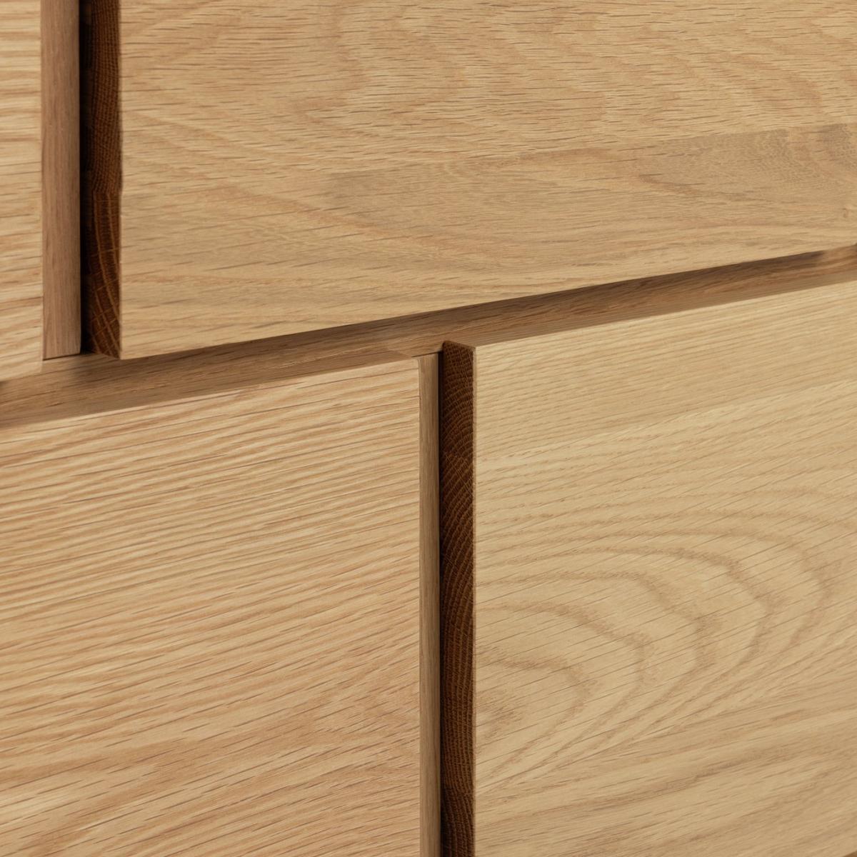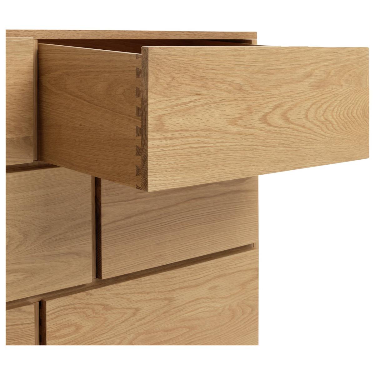 Reintroduced from the Habitat archives, the Hana collection remains remarkable in its contemporary appeal and timeless design. First launched 20 years ago, the Hana wide chest of drawers is crafted using FSC solid oak and oak veneer. With dovetail joints and smooth opening actions on all the drawers, it oozes quality and provenance. Balanced, clean, iconic. Part of the specially commissioned collection in celebration of Habitat's 60 years of British design. Part of the Habitat 60 collection. Made of oak and oak veneer. 9 drawers. Packed flat - 2 people recommended (includes wall fixings). If this product is over 60cm high it must be securely attached to the wall to prevent overturning. Dimensions: Size H76, W135, D50cm. Internal drawer H19.5, W28, D38.5cm. Large internal drawer H19.5, W52.5, D43.5cm. Weight 93.5kg. Package Dimensions: Package 1 dimensions:H58.5, W145, D17.5cm. Package 1 weight: 53kg. Package 2 dimensions: H28.5, W64.5, D56cm. Package 2 weight: 16.5kg. General information: FSC certified meaning the materials used for this product are responsibly sourced. Manufacturer's 1 year guarantee.