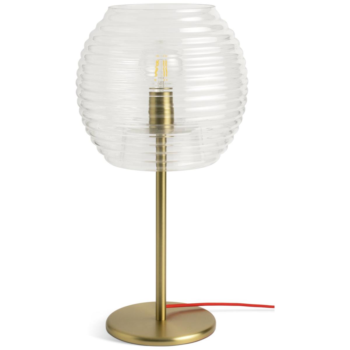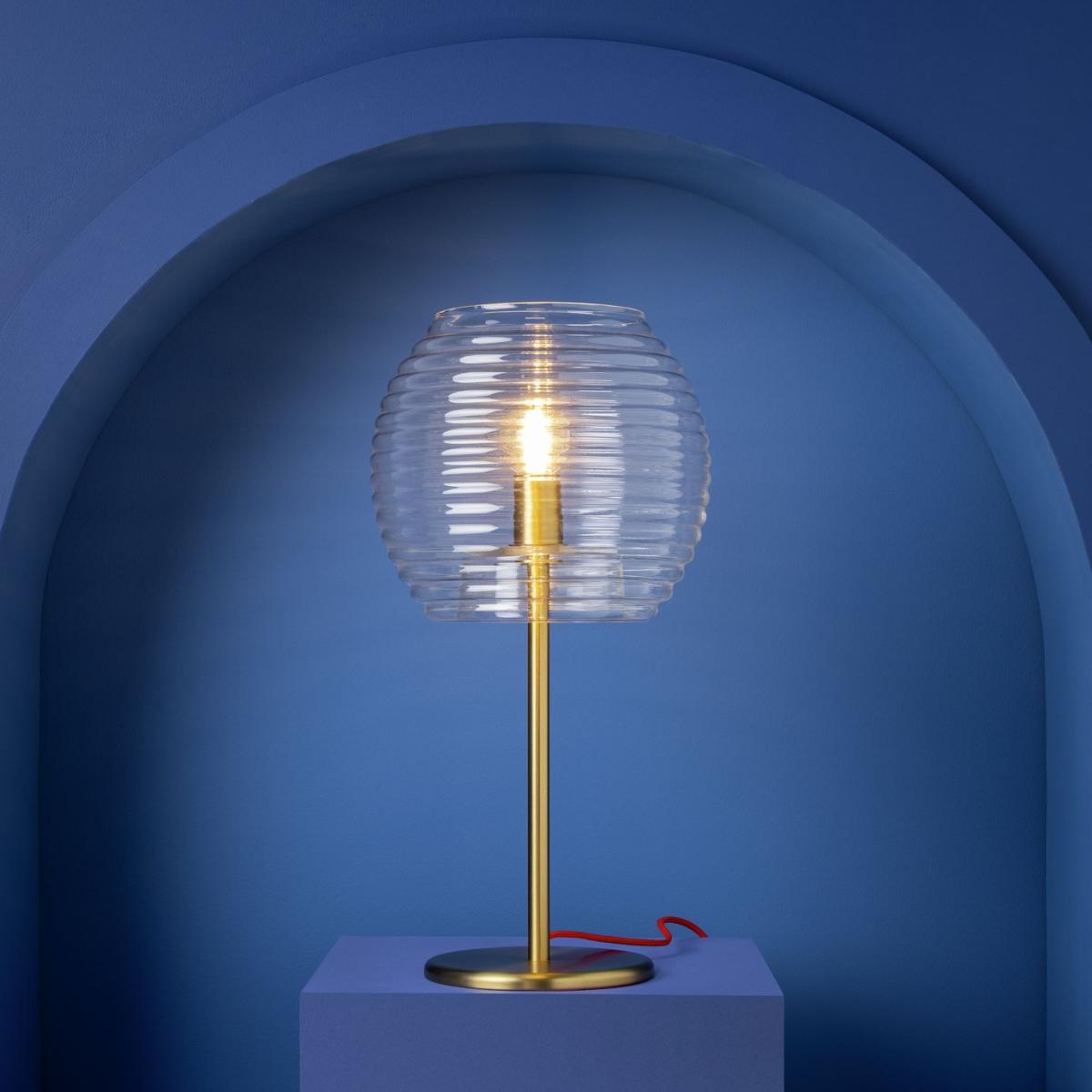 Introducing 'Hub' by Sebastian Conran - highly acclaimed British designer whose thoughtful designs seek to enhance the experience of life. Returning to Habitat with this exclusive design, Sebastian Conran's Hub table lamp brings together heritage and future with a blown-glass ribbed orb, a simple brass-effect column base and a vibrant red woven cord. Creating a softly patterned ambient light, it has universal appeal for any room setting. Part of the specially commissioned collection in celebration of Habitat's 60 years of British design. Dimensions: Overall size H51, Diameter 30cm. Shade size H28, D30cm. Diameter of base 15cm. Cord length 1.8m. Bulb Information: Bulbs required 1 x GLS E27 edison screw LED bulb(s) (not included). Recommended maximum wattage: 13 watts. General Information: Shade colour: clear. Base colour: brass. Shade material: glass. Base material: metal. In-line switch. IP rating 20 - not suitable for bathroom use. Minimal assembly. Product is mains powered plug in. This lighting product is a class 2 fitting. Habitat 60. Manufacturer's 1 year guarantee.