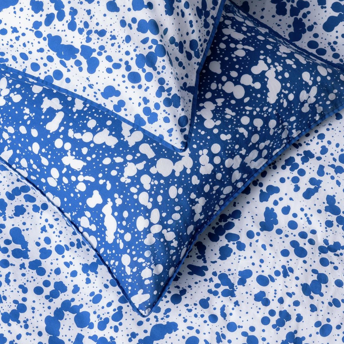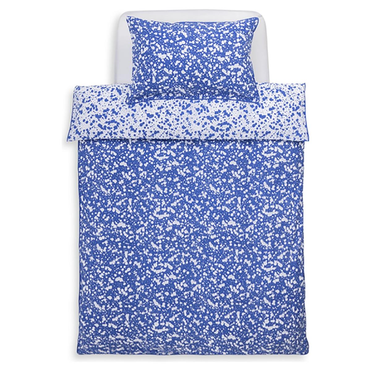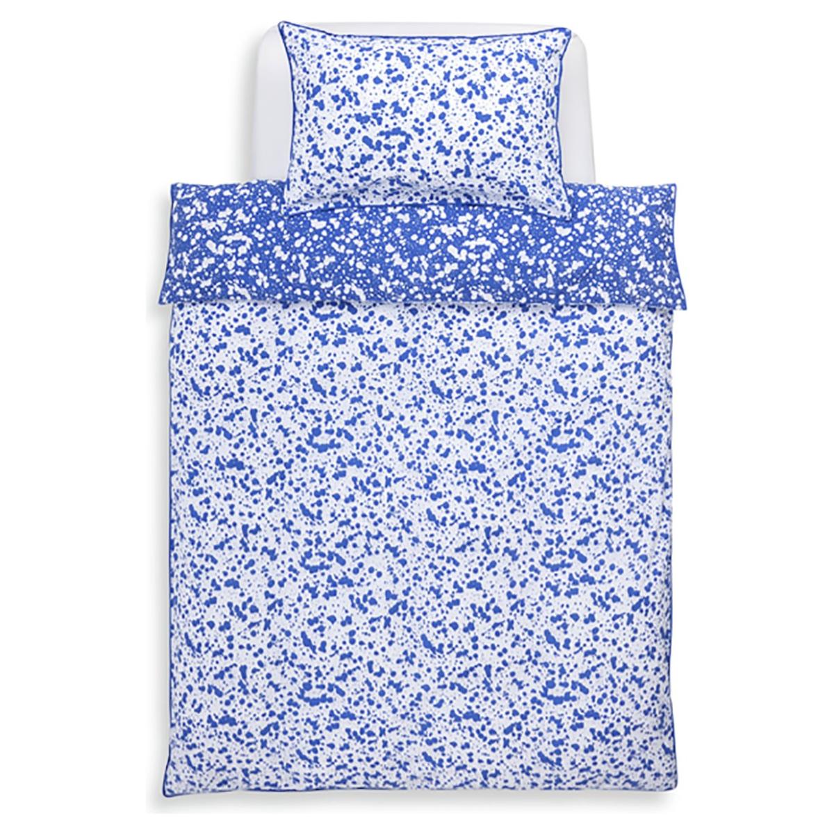 The art of fresh bedding - Introducing our exclusive collection of Jackson duvet cover sets and pillowcases. Created from real paint splatters and transformed into a fun and vibrant print, this iconic blue and white single bedding set is made from 100% organic cotton. White on blue, blue on white, it's light, bright and playful. Part of the specially commissioned collection in celebration of Habitat's 60 years of British design. This item carries the STANDARD 100 by OEKO-TEX logo, which means you can be certain that every component has been tested for harmful substances and is therefore harmless to human health. Finish: washed. 100% organic cotton. 144 thread count. Set includes 1 duvet cover and 1 pillowcase. Bed size: single. Length 200cm, Width 135cm. Piped edging detail. Reversible. Buttons for fastening. Standard pillowcase (s). Pillow case length 75cm, Width 50cm. Reversible pillowcase (s). Wash before use. Suitable for tumble drying. Part of the Habitat 60 collection.