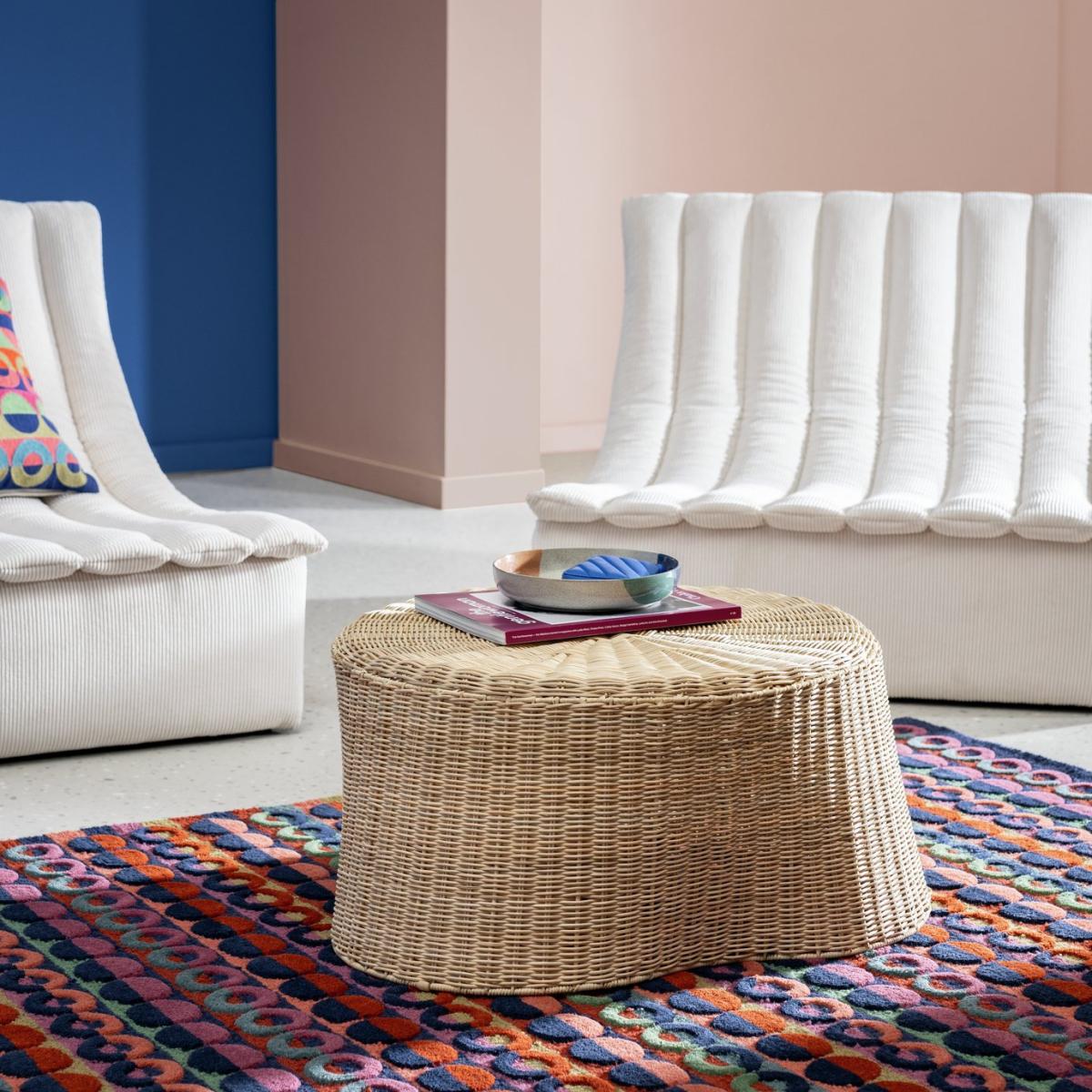 Designed in-house by Will Hudson, the Kaya coffee table exemplifies his commitment to reductive and honest design principles. In contrast to his signature love of Sheffield-inspired metals, Kaya takes inspiration from Hudson's woodland walks and the stumps of old oak trees. Woven by hand, the shape of the table is free flowing and natural. As if rooted to the floor, it adds calm and stillness to any space. Part of the specially commissioned collection in celebration of Habitat's 60 years of British design. Part of the Habitat 60 collection. Size H 32, W 67, D 67cm. Made from rattan. Weight 2.77kg. Fully assembled. Maximum load weight 150kg. Package Dimensions: Package 1 dimensions: H34, W69, D69cm. Package 1 weight: 3.42kg. General information: Manufacturer's 1 year guarantee. FSC certified meaning the materials used for this product are responsibly sourced.