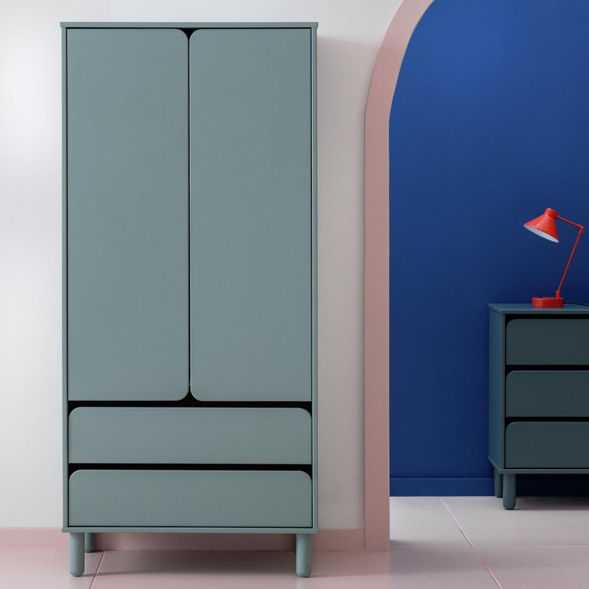 Another fresh idea from Derby-based designer D'arby Mawson, exclusive to Habitat. Bringing a sense of joy and personality to any child's bedroom, this Alba 2 door 2 drawer wardrobe has a soft rounded aesthetic in a calming neutral grey. With space for hanging and folded clothes in one neat airy footprint, it's fun yet functional. Coordinate with other pieces from the Alba collection to complete the look. Part of the specially commissioned collection in celebration of Habitat's 60 years of British design. Part of the Habitat 60 collection. Made of MDF and pine. 2 doors. 2 drawers with metal runners. 1 fixed hanging rail. Hanging rail holds up to 15kg. Packed flat - 2 people recommended (includes wall fixings). If this product is over 60cm high it must be securely attached to the wall to prevent overturning. Dimensions: Size H170, W80, D53cm. Internal hanging space H124, W74.5, D51cm. Large internal drawer H11.5, W72, D34cm. Weight 60kg. Package Dimensions: Package 1 dimensions: H8, W54, D158.5cm. Package 1 weight: 35.45kg. Package 2 dimensions: H9, W55.5, D93.5cm. Package 2 weight: 23.5kg. General information: FSC certified meaning the materials used for this product are responsibly sourced.