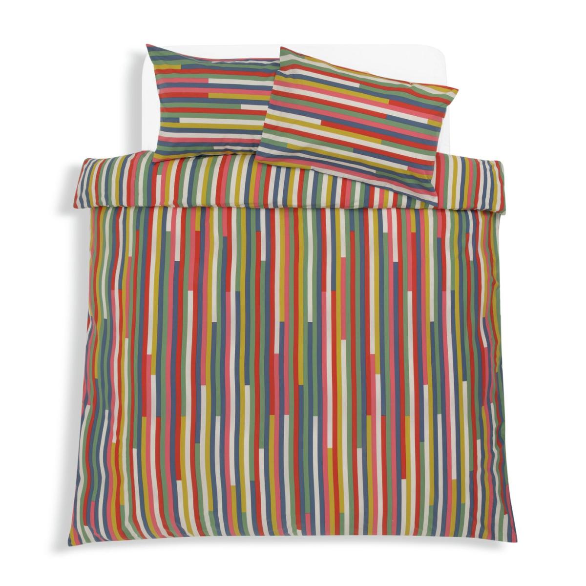 Designed exclusively for Habitat by Margo Selby, an award-winning British artist and textile designer, the Klee bedding collection vibrantly demonstrates her distinct use of geometric construction in colour. Drawing inspiration from the Habitat archive of patterns and her ongoing fascination with typography, it's deliberately bold, abstract and playful. Part of the specially commissioned collection in celebration of Habitat's 60 years of British design. This item carries the STANDARD 100 by OEKO-TEX logo, which means you can be certain that every component has been tested for harmful substances and is therefore harmless to human health. Finish: percale. 100% cotton. 180 thread count. Set includes 1 duvet cover and 2 pillowcases. Bed size: double. Length 200cm, Width 200cm. Buttons for fastening. Standard pillowcase (s). Pillow case length 75cm, Width 50cm. Machine washable. Suitable for tumble drying. Part of the Habitat 60 collection.