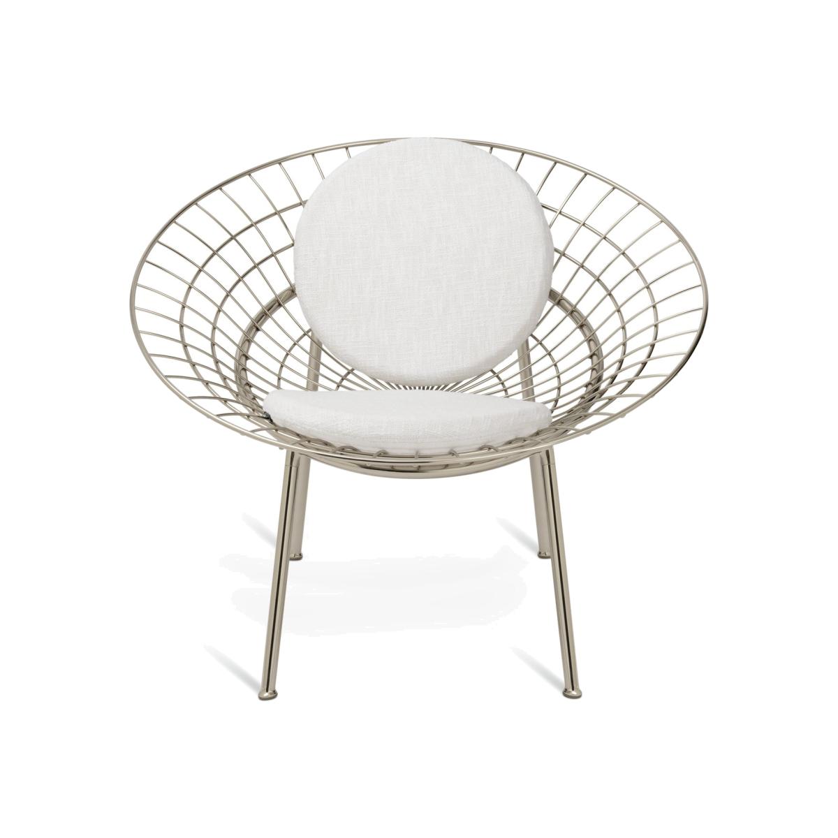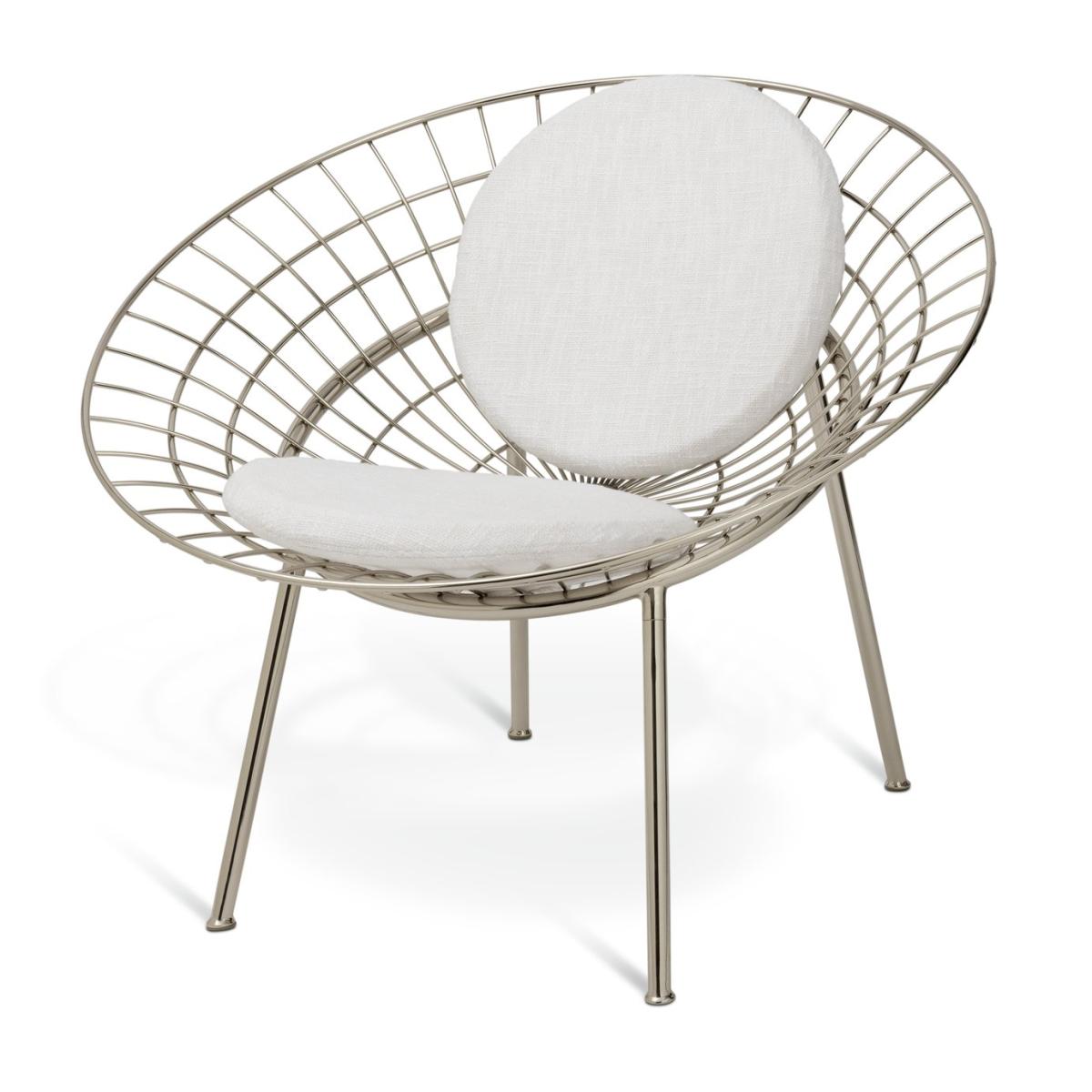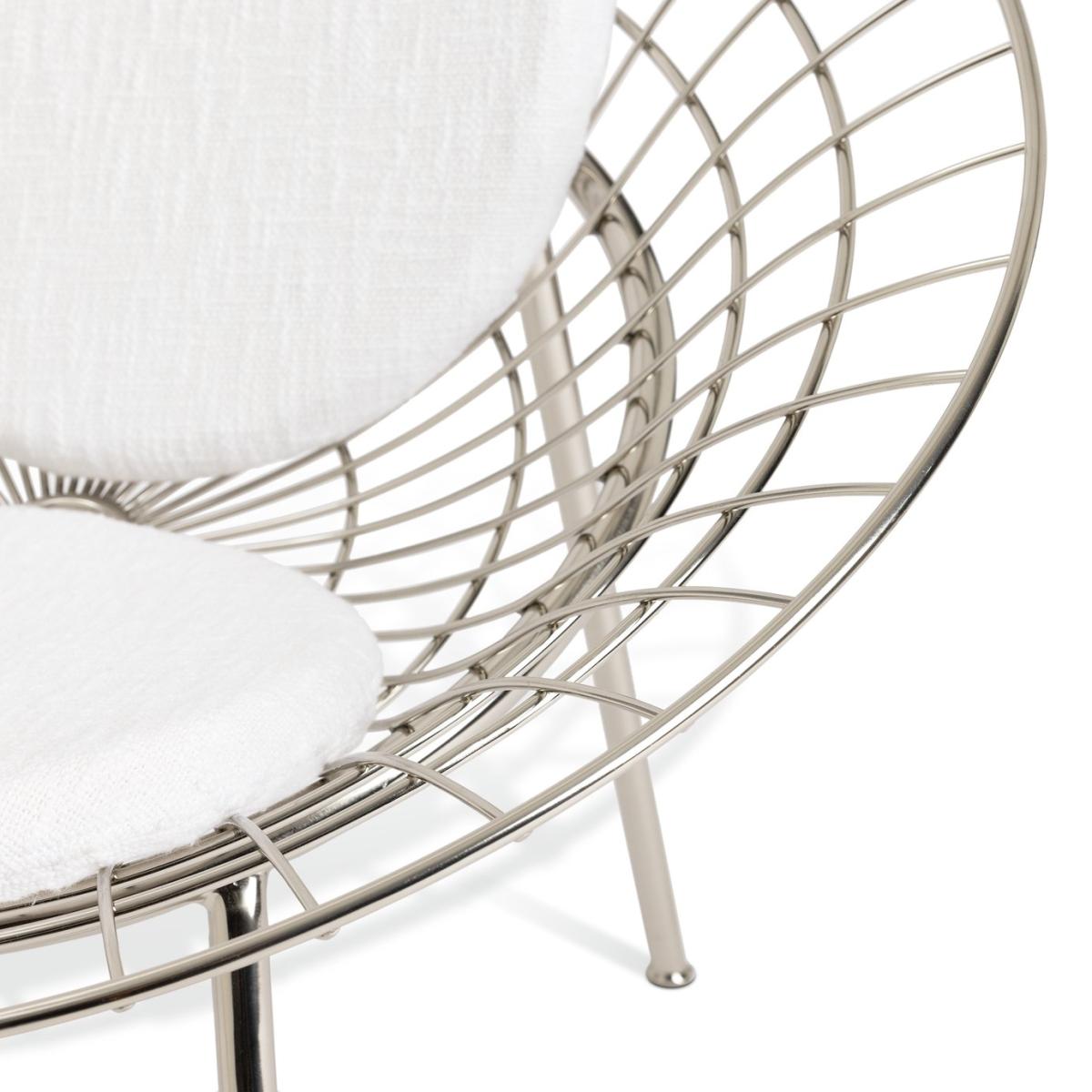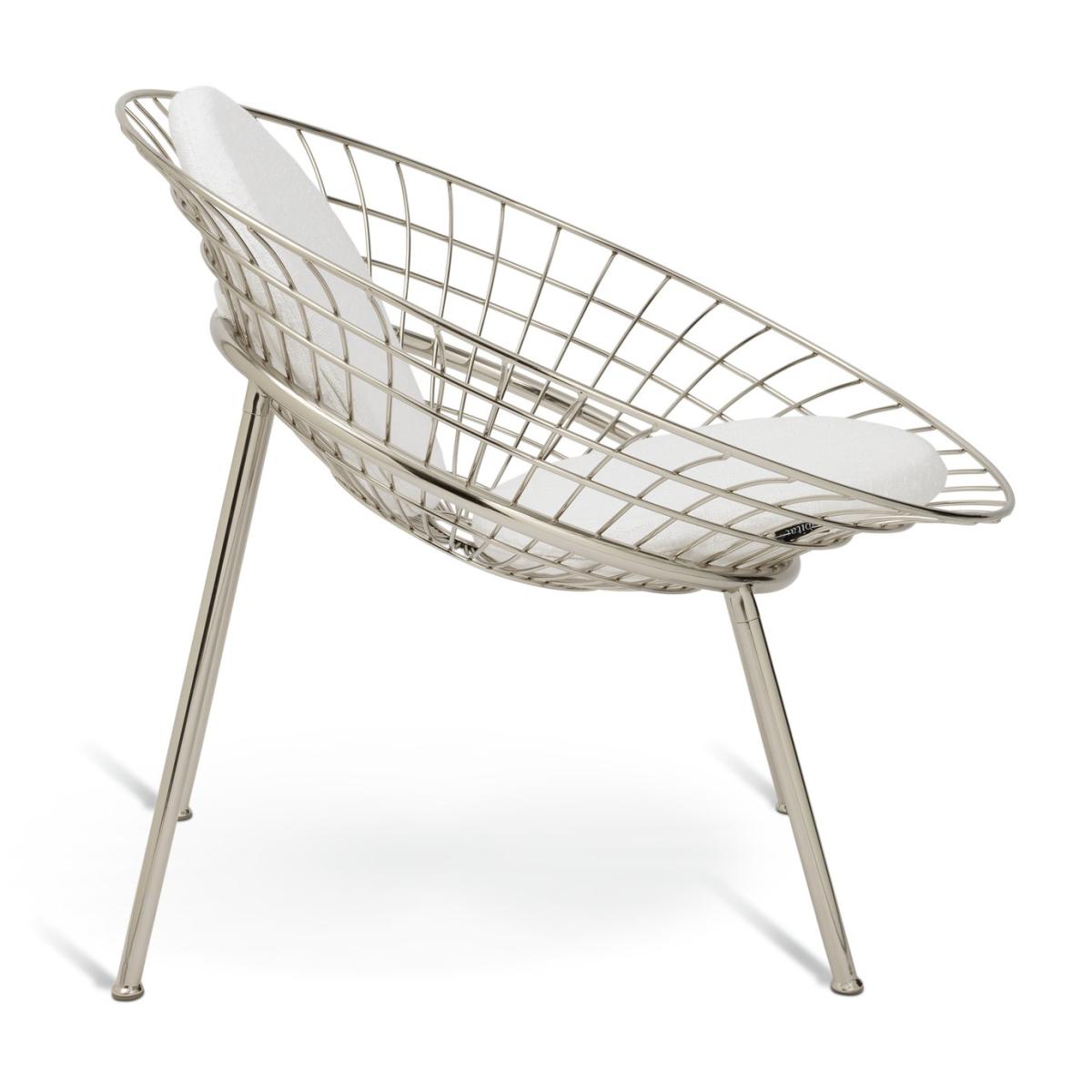Designed in-house by Will Hudson, an accomplished industrial designer, the Lattice chair exemplifies his commitment to reductive and honest design principles. Drawing from his love of Sheffield heritage, it pairs cool steel lattice work with bright circles of white textured upholstery, surrounding the user in a protective embrace. Inspired by the futuristic aesthetics of the 80s, the Lattice chair offers a striking seating experience, blending retro-inspired design with modern comfort. Part of the specially commissioned collection in celebration of Habitat's 60 years of British design. Part of the Habitat 60 collection. Material: Stainless steel. Metal feet. Removable cushion(s) with fibre filling. Dimensions: Size H67, W78, D78cm. Floor to seat height: 30cm. Depth of seat: 38cm. Width of seating area between arms: 38cm. Weight 7kg. Do not wash. Maximum individual user weight 80kg. Packaged dimensions: Package size H26, W80, D80cm. General information: Manufacturer's 2 year guarantee.