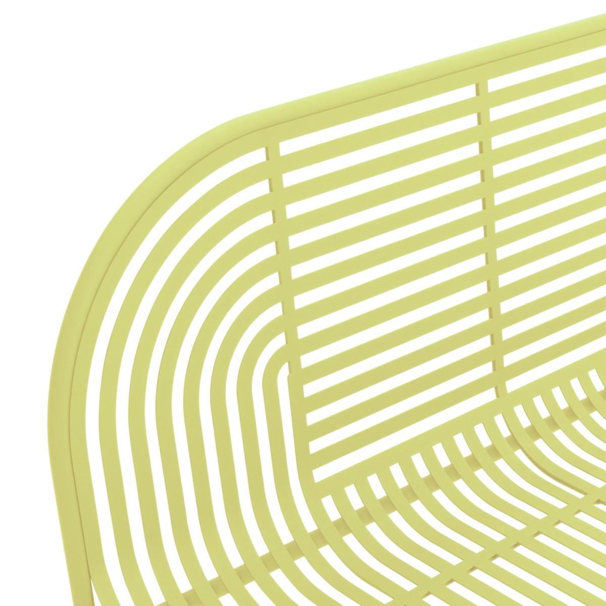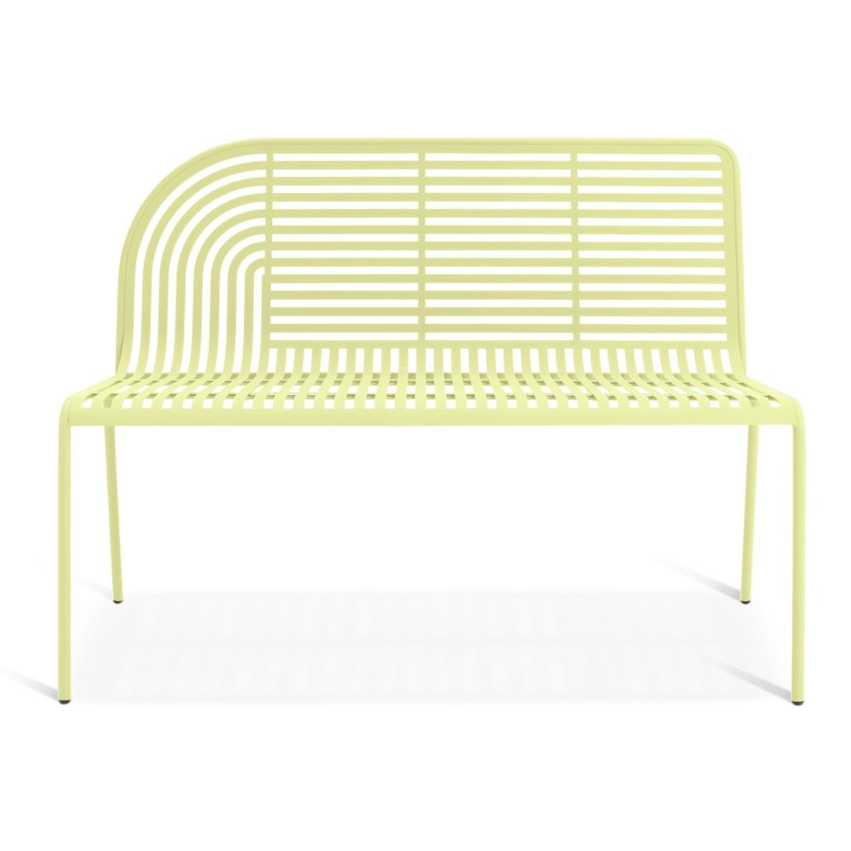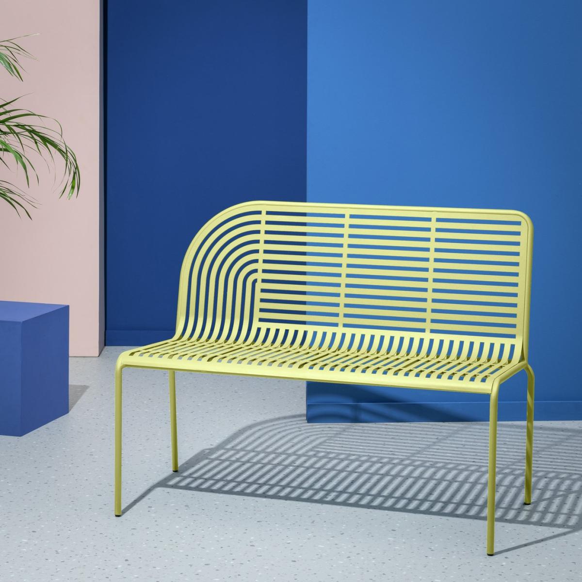 Designed in-house by Kate Mc. Cormack, a furniture and product designer led by the colour and narrative of design, the modular Lucinda collection of garden furniture explores the forms of colour and the way material and finish influence a product's purpose. The slatted silhouette of this yellow metal bench filters light with dramatic effect, casting changing patterns that reflect the life cycle of a day. Mix and match with other pieces from the collection for an extra graphic dimension. Made from metal. Dimensions: Size H87, W116, D56cm. Seat height from floor 46cm. Weight 14.5kg. Seating area W110, D40cm. Maximum user weight 220kg. Package Dimensions: Package 1 dimensions: H87, W116, D56cm. Package 1 weight: 15.4kg. General information: Fully assembled. Cover or store inside in winter months to prolong life of the product. Manufacturer's 2 Year (1 year fabric) guarantee.