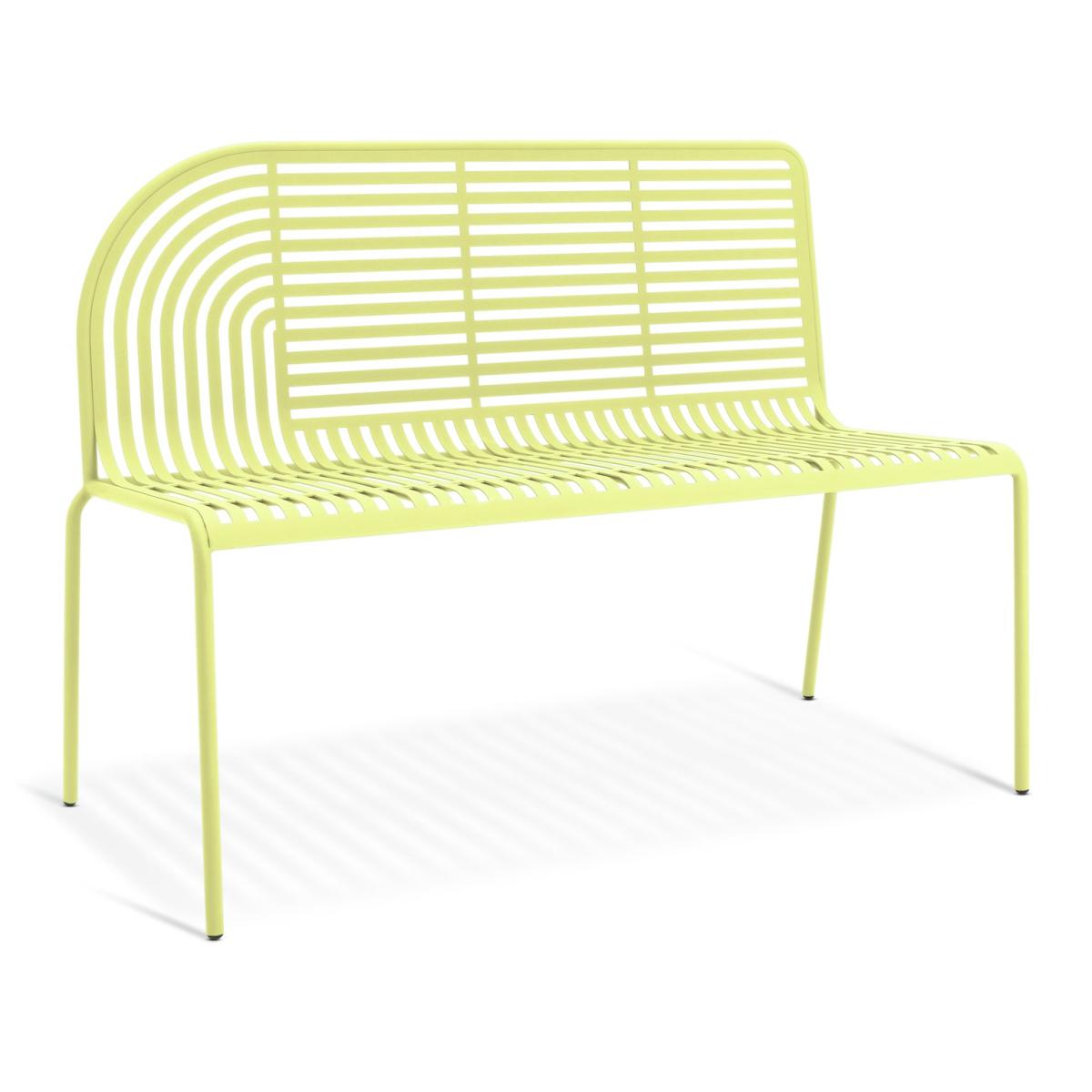 Designed in-house by Kate Mc. Cormack, a furniture and product designer led by the colour and narrative of design, the modular Lucinda collection of garden furniture explores the forms of colour and the way material and finish influence a product's purpose. The slatted silhouettes of this yellow metal bench and chair filter light with dramatic effect, casting changing patterns that reflect the life cycle of a day. Mix and match with other pieces from the collection for an extra graphic dimension. Part of the Habitat 60 collection. General features: Set seats 3 people. Set made from metal. Cover or store inside in winter months to prolong life of the products. Total weight 21.5kg. Chair features: Chair seat and back made from metal. Size H87, W55.5, D56cm. Seat height 46cm. Seating area size W 50, D40cm. Stackable chairs. 110kg maximum user weight per chair. Bench features: Bench size H87, W116, D56cm. 220kg maximum user weight per bench. Packaging information: Package 1 size H87, W116, D56cm. Package 1 weight 15.4kg. Package 2 size H87, W55.5, D56cm. Package 2 weight 8kg. General Information: Fully assembled. Manufacturer's 2 year guarantee.