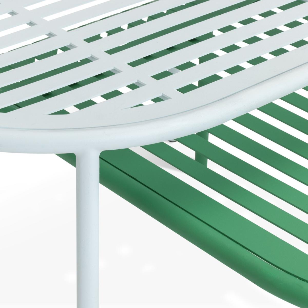 Designed in-house by Kate Mc. Cormack, a furniture and product designer led by the colour and narrative of design, the modular Lucinda collection of garden furniture explores the forms of colour and the way material and finish influence a product's purpose. The slatted silhouettes of these metal tables filter light with dramatic effect, casting changing patterns that reflect the life cycle of a day. Mix and match with other pieces from the collection for an extra graphic dimension. Part of the specially commissioned collection in celebration of Habitat's 60 years of British design. Metal table top. Made from metal. Dimensions: Size H42, W51, L65cm. Weight 5.5kg. Smaller table size: H34, W45,D71. Smaller table weight 5.3kg. Package Dimensions: Package 1 dimensions: H44.5, W73, D53cm. Package 1 weight: 14kg. General information: Fully assembled. Store inside when not in use. Cover or store inside in winter months to prolong life of product.