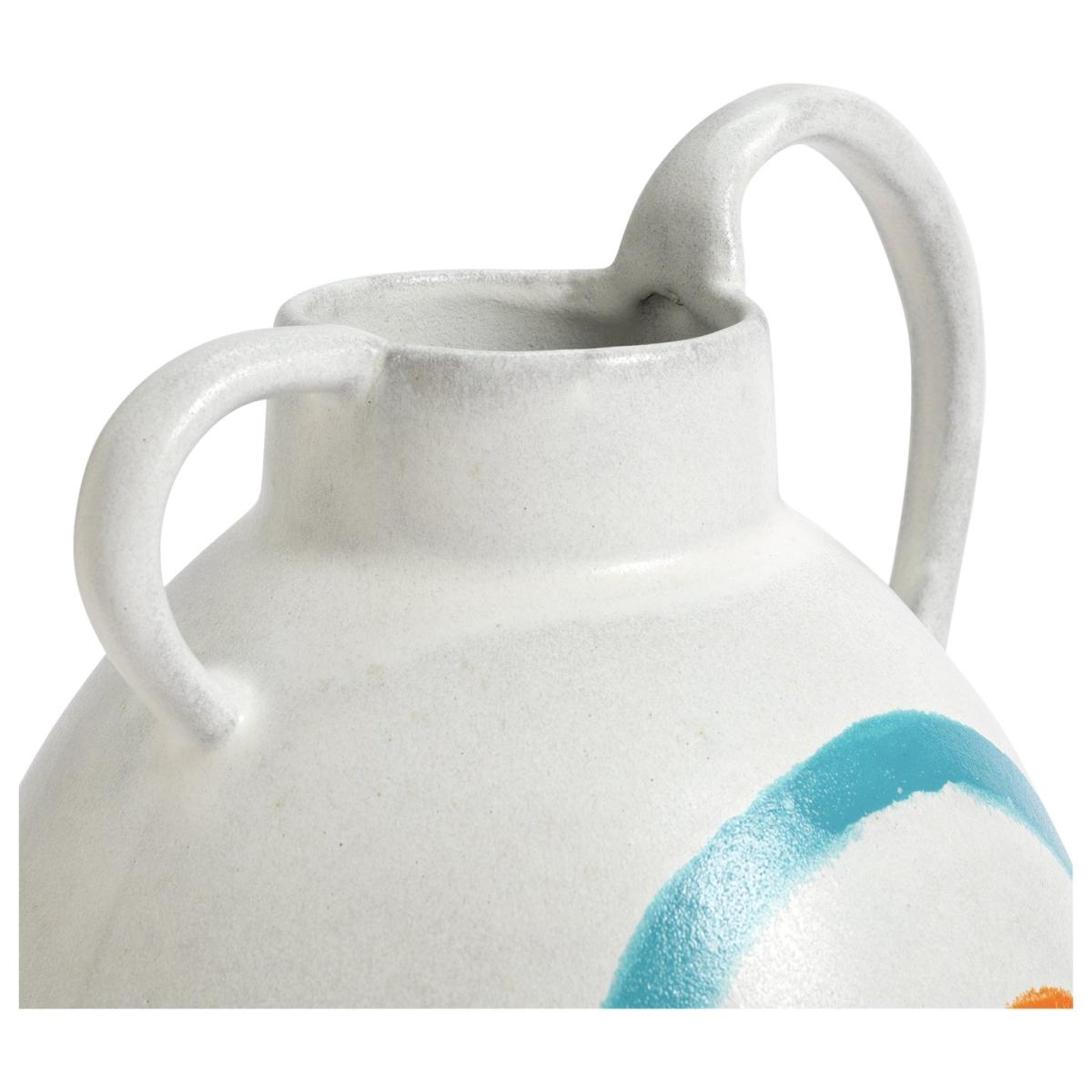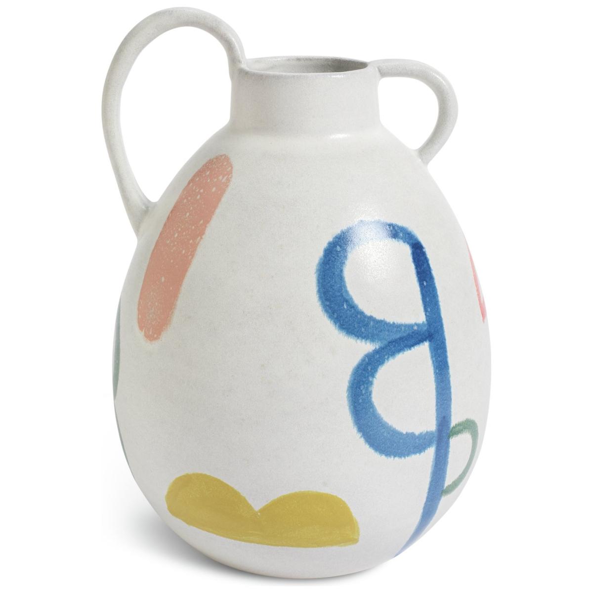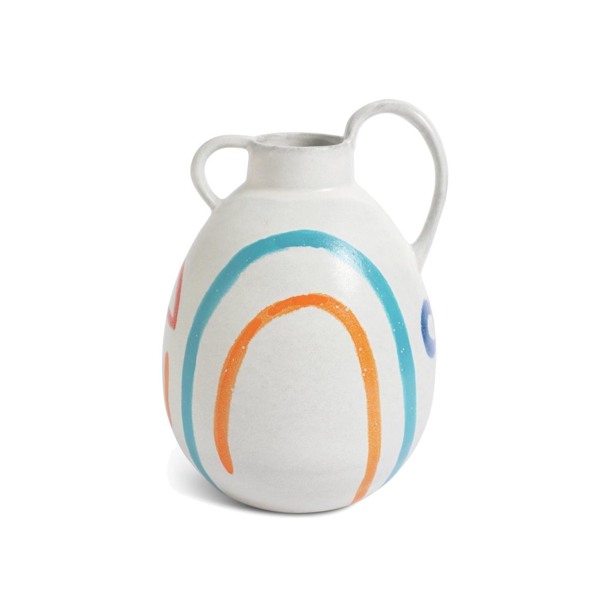 Designer, Silvia Kamodyova has worked with our artisans in Portugal to create each hand painted statement piece in our exclusive Radica terracotta collection. Like this irregular handled vase. Uplifting, colourful and playful, Silvia's intuitive stokes in vibrant hues were inspired by the palette of the 1980s Habitat 'Living with Colour' catalogue. The movement and tactility through the bright brush marks and application of glaze are all synonymous with Silvia's joyful pottery. Part of the specially commissioned collection in celebration of Habitat's 60 years of British design. For Decorative use only. Clean with a soft dry cloth. Size H32, Diameter 23cm. Part of the Habitat 60 collection.