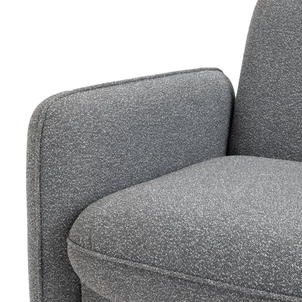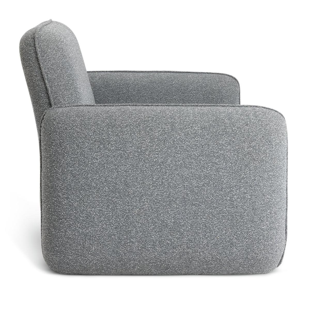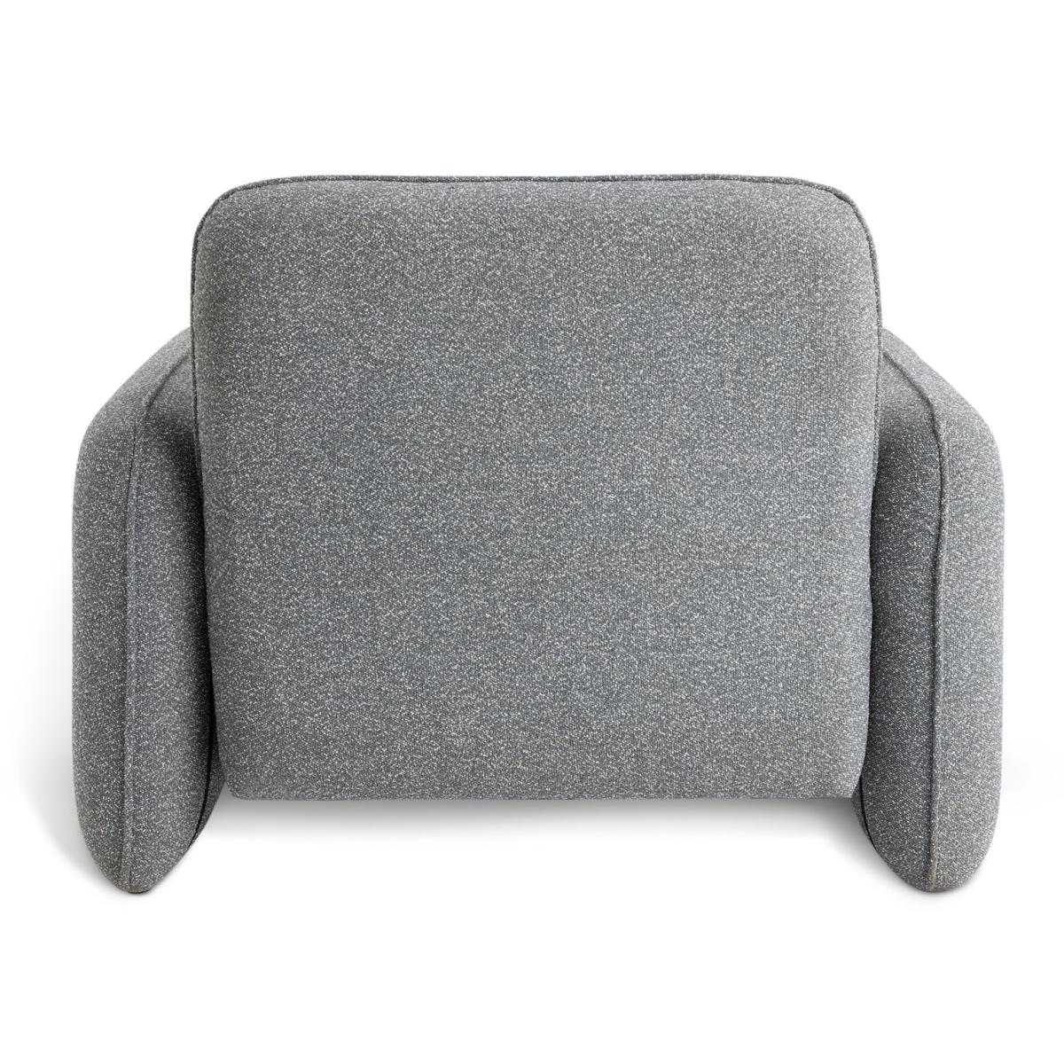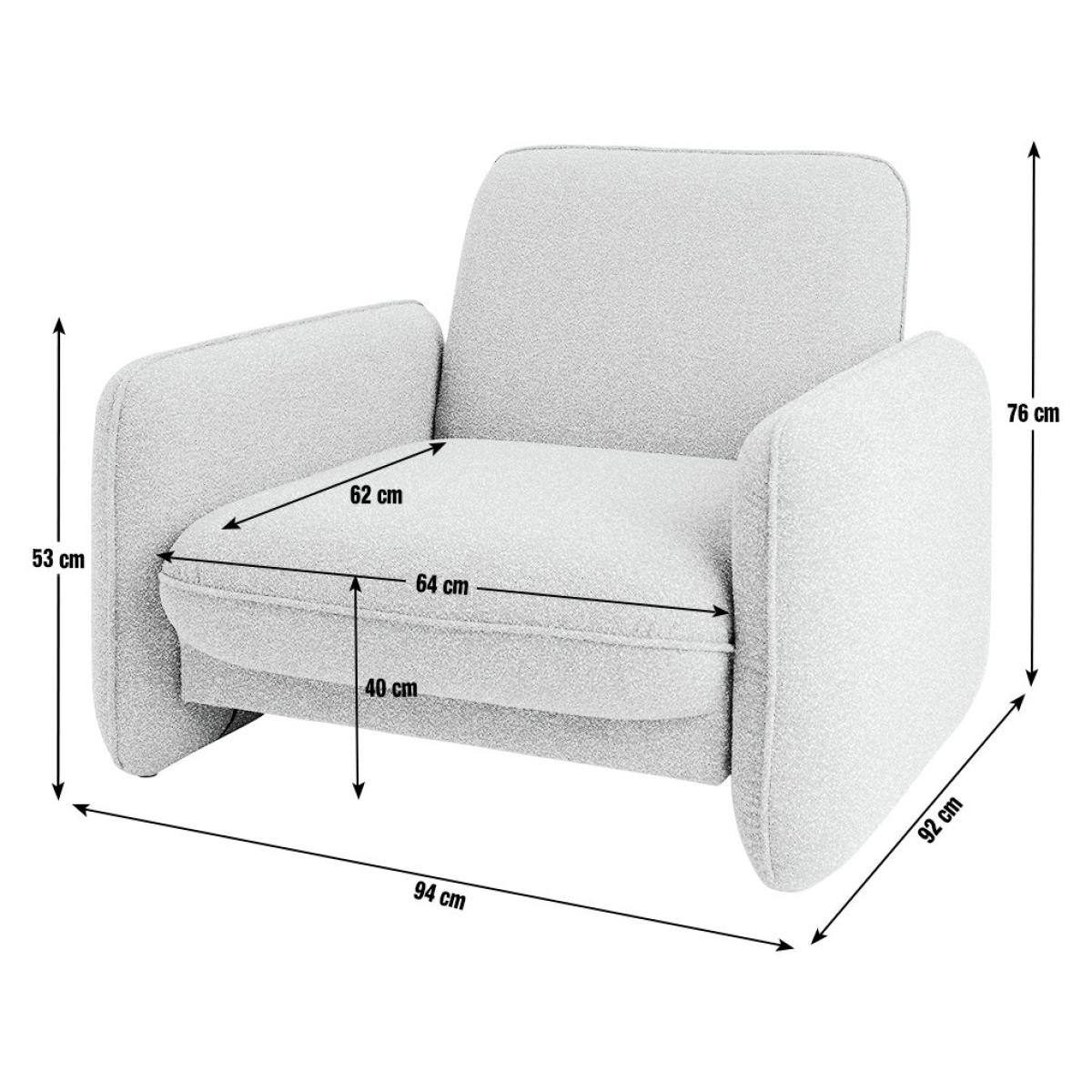 From our in-house senior designer James Cottingham, the personality-packed Trac armchair draws inspiration from 1970s Habitat upholstery, innovative manufacturing methods and diverse materials. With arms that continue to the floor the seat appears to look like its floating. Rounded, inflated forms, chunky piping details and a generous seat depth offer comfort. Upholstered in a speckled and textured boucle-like fabric. Also available as a 2 and 3 seater sofa. Each sold separately. Part of the specially commissioned collection in celebration of Habitat's 60 years of British design. Part of the Habitat 60 collection. Material: Made from 100% boucle. Fixed seat with foam fibre wrap filling. Fixed cushion(s) with foam fibre wrap filling. Free fabric swatch available on this line. Dimensions: Size H76, W94, D92cm. Floor to seat height: 40cm. Depth of seat: 62cm. Height of seat back: 36cm. Width of seating area between arms: 64cm. Height of arm rest: 53cm. Weight 35kg. Professional clean only. Plump cushions regularly to maintain shape. Fully assembled. Maximum individual user weight 150kg. Packaged dimensions: Package size H78, W97, D88cm. FSC certified meaning the materials used for this product are responsibly sourced. General information: Manufacturer's 2 year guarantee.