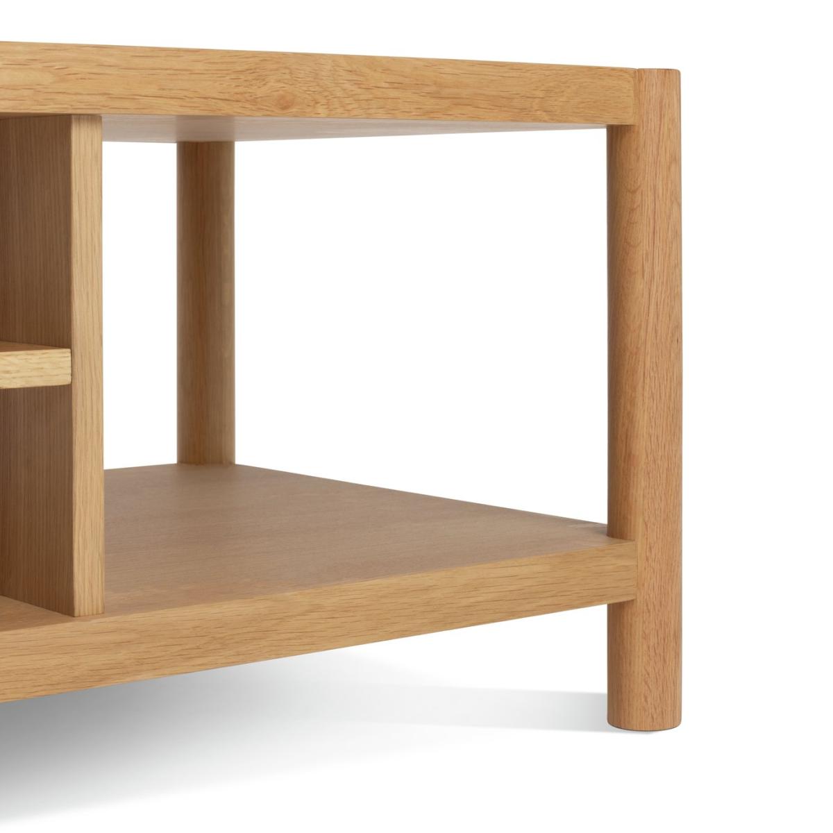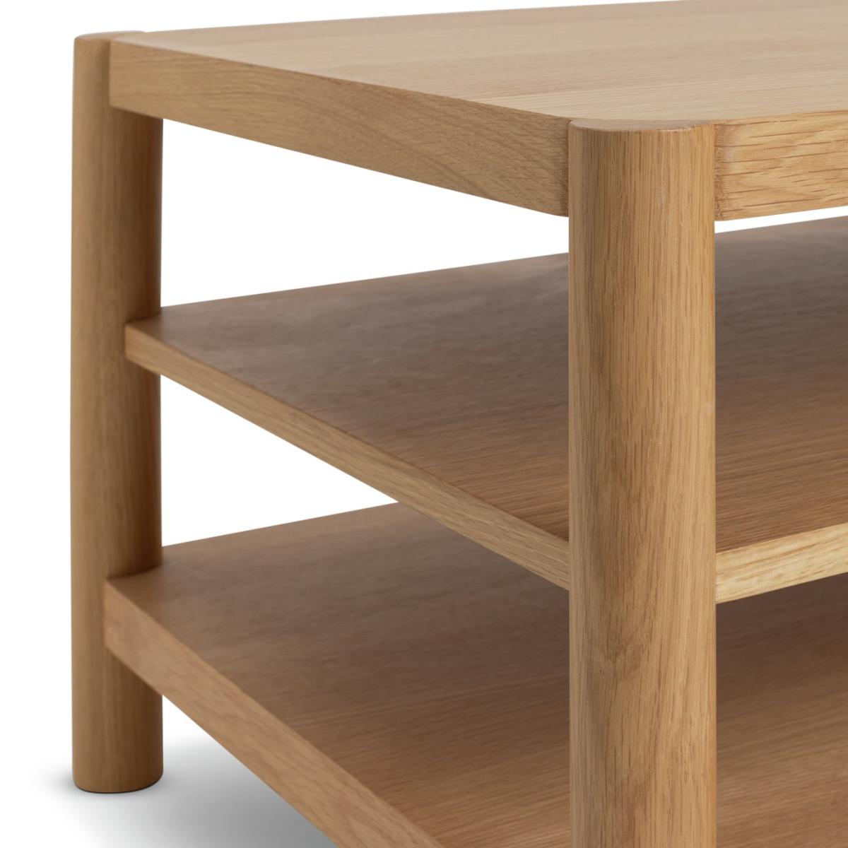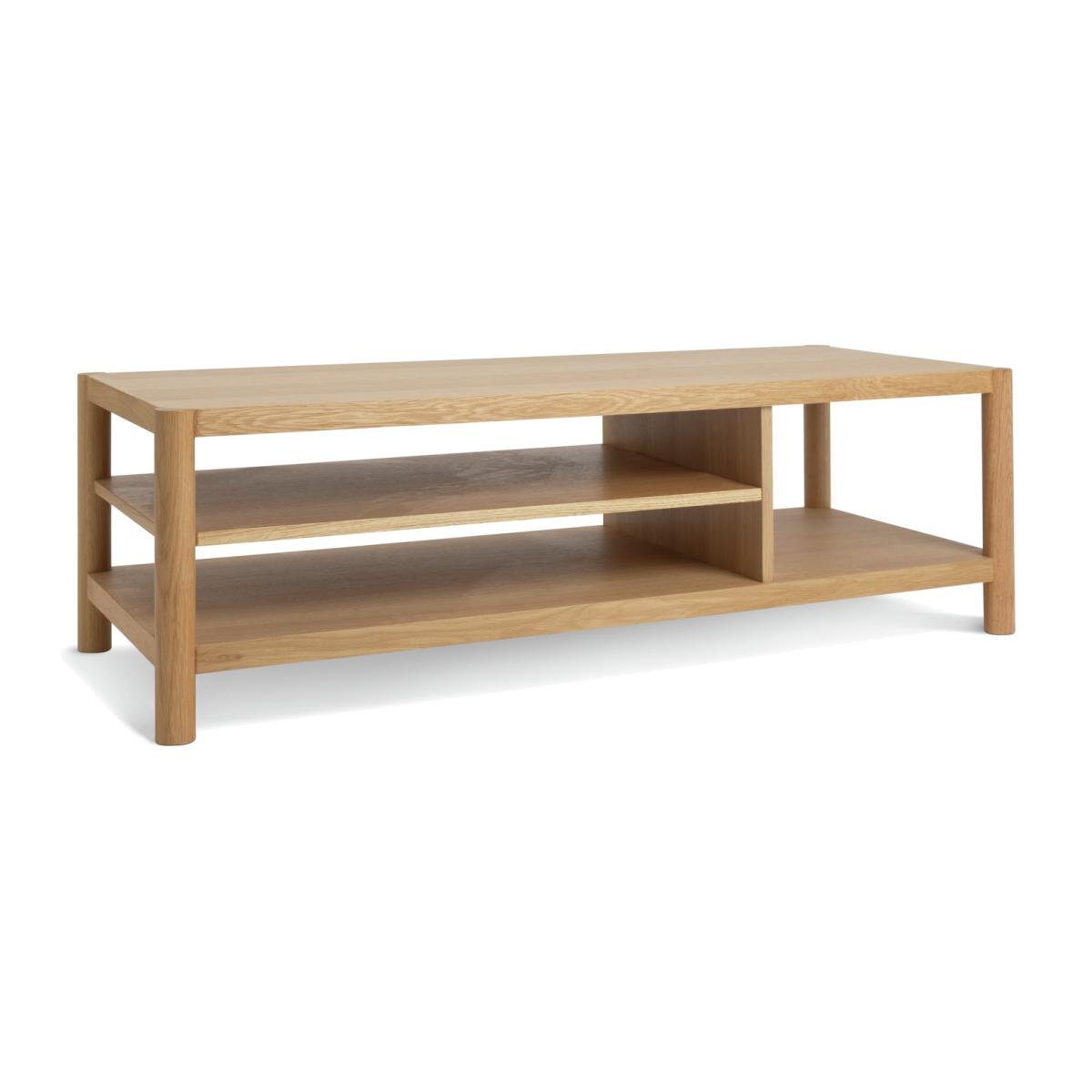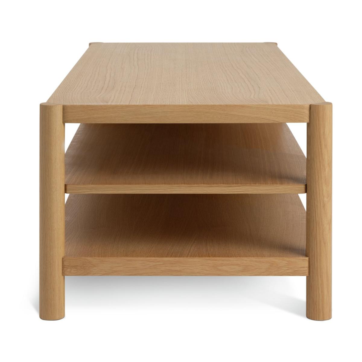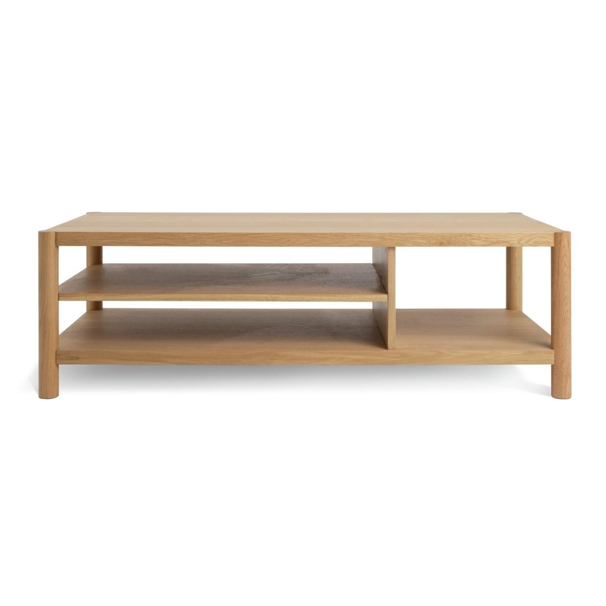 In celebration of solid craftsmanship. Habitat New Designer Award winner Guy Selwood Miller celebrates the diversity of natural oak in this statement Yakker coffee table. Made using FSC solid oak and oak veneer, it offers rounded dowel uprights, smooth planes of oak and liberal proportions. The joints are unapologetically on-show, and there's generous spacing between the elements for a calm and balanced aesthetic. A name to watch, this Guy Selwood Miller sideboard is timeless. Part of the specially commissioned collection in celebration of Habitat's 60 years of British design. Part of the Habitat 60 collection. Size H 40, W 121, D 50cm. Made from oak and oak veneer. 1 undershelf. Weight 37kg. Self-assembly - 2 people recommended. Maximum load weight 40kg. Package Dimensions: Package 1 dimensions: H43.5, W131, D60.5cm. Package 1 weight: 40kg. General information: Manufacturer's 1 year guarantee. FSC certified meaning the materials used for this product are responsibly sourced.