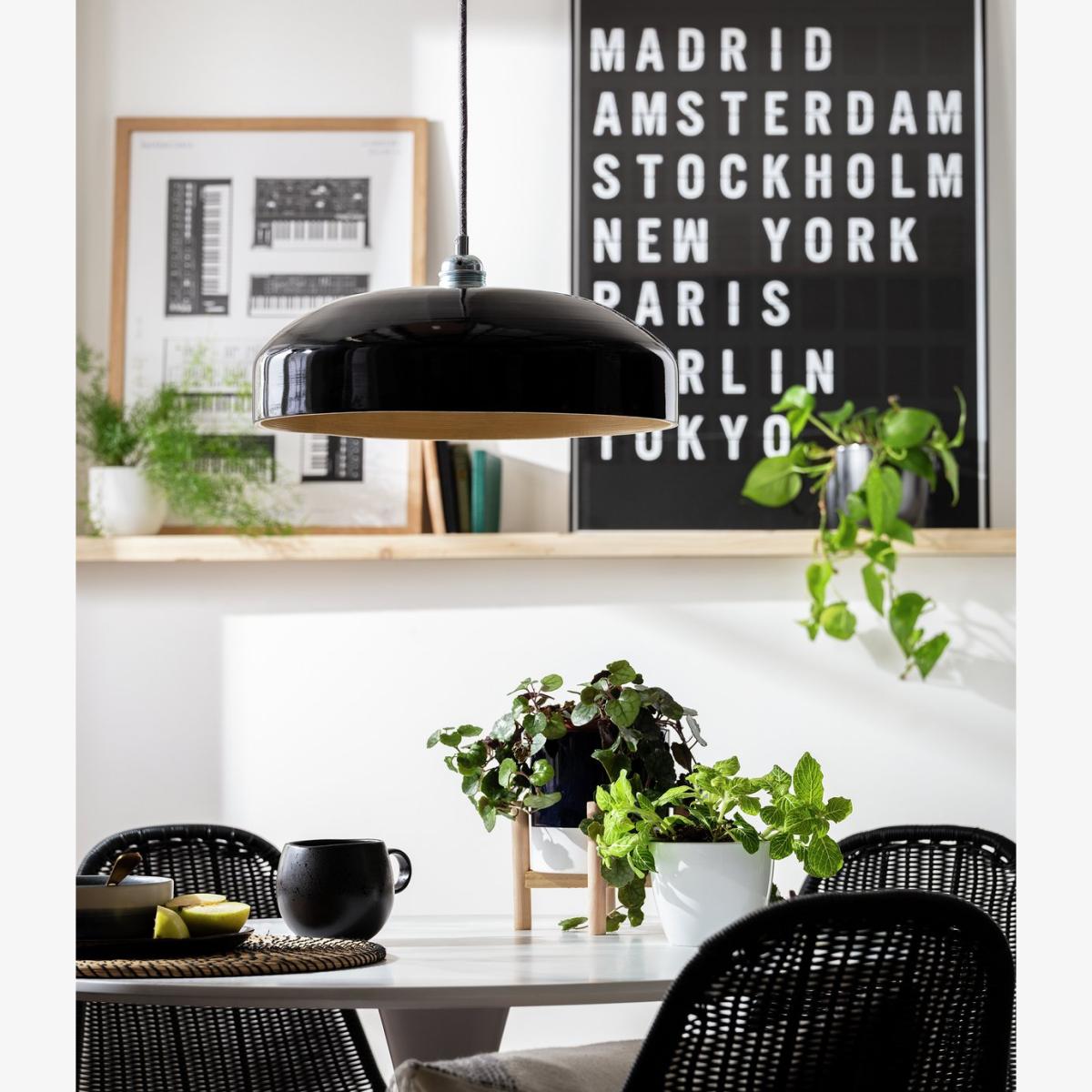 Make mine minimal. Switch up to contemporary restaurant style with this spun bamboo pendant shade. Naturally smart with a lacquer-like sleek black gloss finish it oozes minimalist modern cool. Hang this generous 37cm diameter shade low over a dining table to add a touch of drama to dinner or use in a kitchen to add a softness to brighter task lighting. You ready to order? Fit with an oversized filament bulb and match with metallic table settings for a modern industrial feel. Part of the Abaya collection, this spun bamboo shade fits onto an existing celling rose. No electrician required. Part of the Abaya collection. Made from bamboo. Size H11cm, Diameter 37cm. Recommended maximum bulb wattage 42 watts. Minimal assembly. Easy fit shade. Manufacturer's 1 year guarantee.