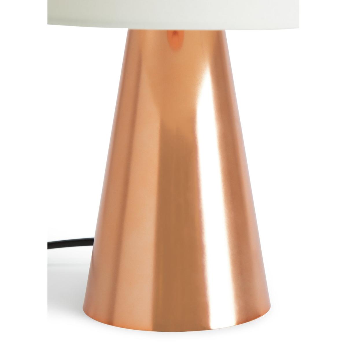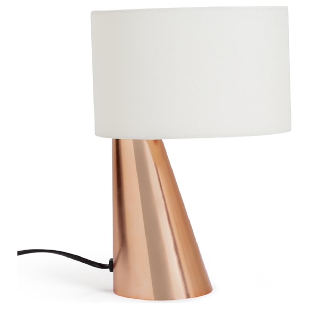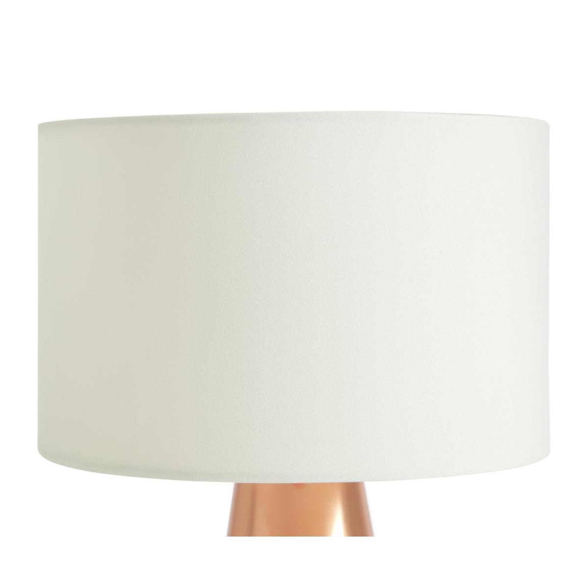 Touch and glow. With its stunning geometric silhouette and contemporary copper and fabric finish, our Abono lamp brings a luxe lightness to the room. A great statement piece for a desk or side table. Switch on the barrel shade and watch it direct the light into a shining, golden pool below. Cosy and coppery cool. Love things a little a la mode? Match with more industrial-style pieces in our collection. Dimensions: Overall size H29, Diameter 20cm. Shade size H12.5, D20cm. Diameter of base 10cm. Cord length 1.8m. Bulb Information: Energy efficiency class: E. Energy consumption/1000h (kwh): 4. Bulbs required 1 x golfball E14 small edison screw (not included). Recommended maximum wattage: 40 watts. Can be used with a dimmer switch. LED bulb only. General Information: Shade colour: black. Base colour: black. Shade material: polyester. Base material: steel. Touch sensor - 4 stage touch control. IP rating 20 - not suitable for bathroom use. Fully assembled. This lighting product is a class 2 fitting. Abono. Manufacturer's 1 year guarantee.