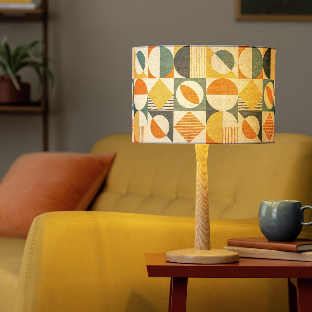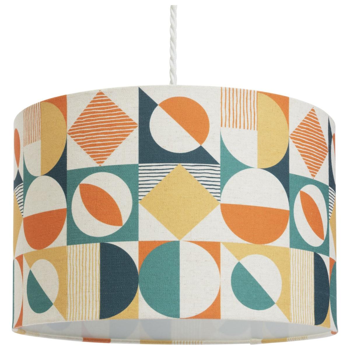 Bang the mid-century drum. This vibrant shade delightfully displays its retro roots. Check out the geometric shapes. Enjoy the distinctive colour palette. It's loud and proud. Just as it should be. Made from fabric. Size H20cm, Diameter 30cm. Recommended maximum bulb wattage 15 watts. Fully assembled. Easy fit shade. Manufacturer's 1 year guarantee.