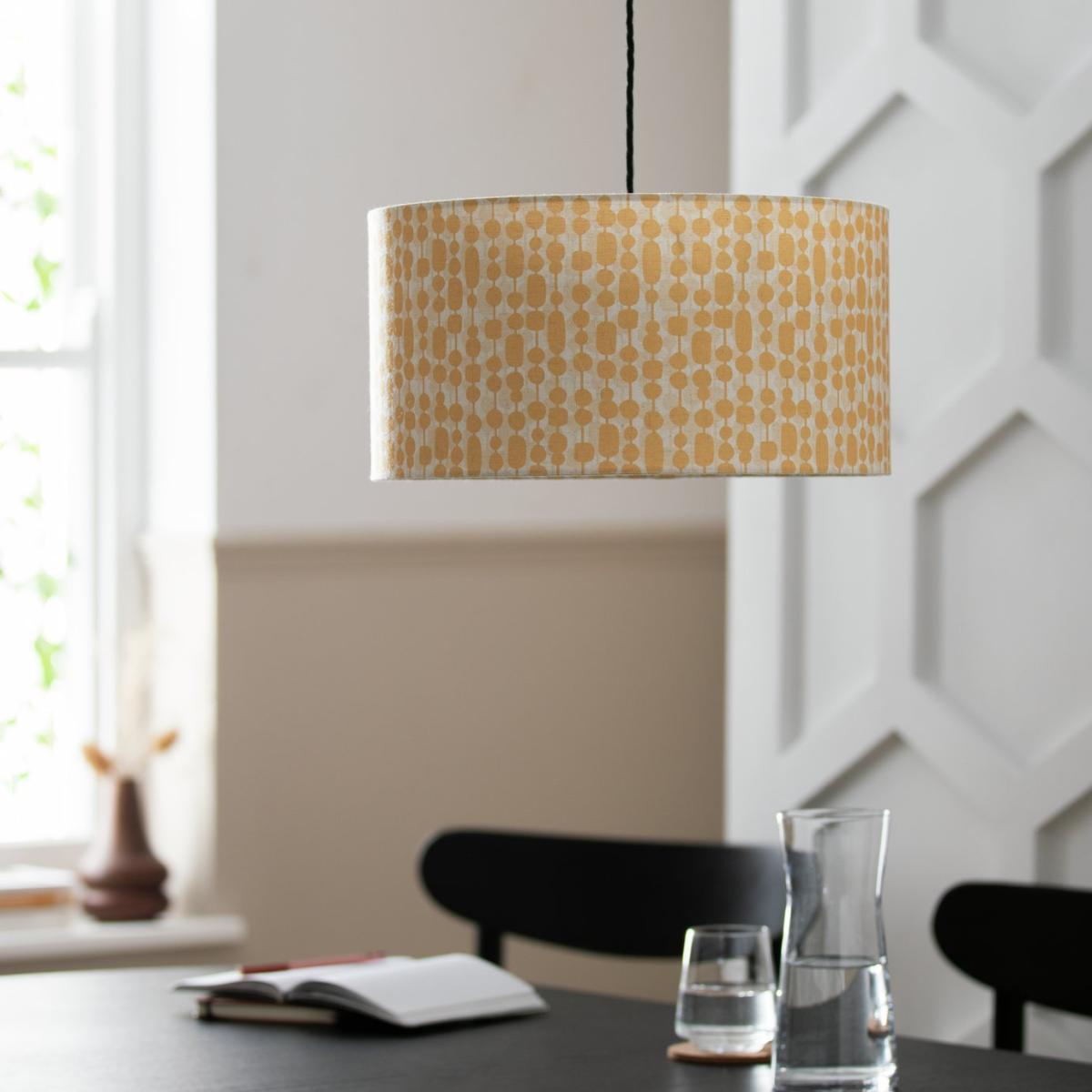 I love the Habitat abstract stripe lampshade for its modern yet versatile look, especially in mustard which adds warmth and a pop of colour to a variety of interiors. It works well in contemporary, Scandinavian or mid-century inspired spaces where its bold pattern can act as a statement piece. Practical styling tips include pairing it with neutral or light-coloured ceilings and walls to let the shade stand out, and adding matching accessories in similar hues for a cohesive look. It's particularly effective when hung over a dining table or in a living room corner, where its pattern can bring subtle texture and interest without overwhelming the space.
