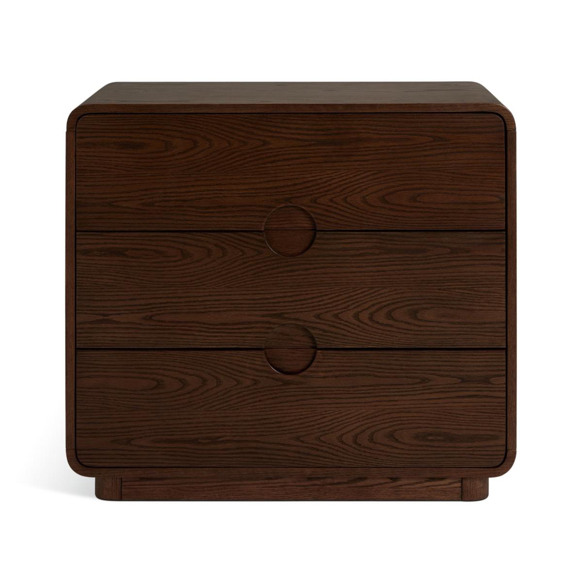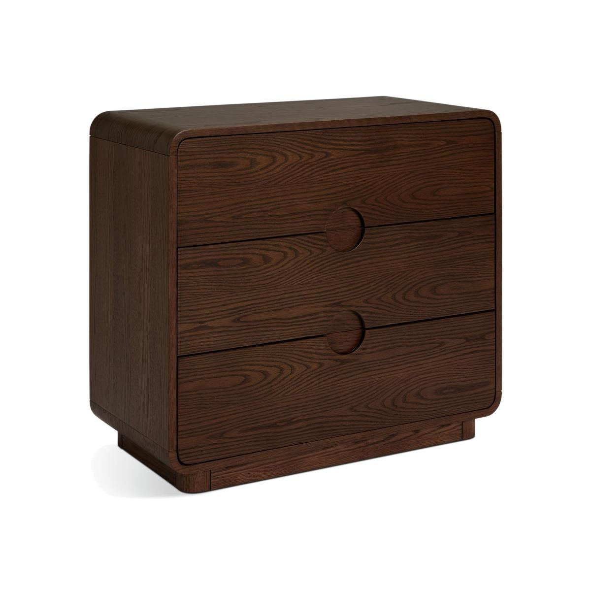 Upscale your bedroom with Adeje. A crafted curved chest from our in-house Habitat studio that puts timeless design at the heart of your home. Made with a stained oak veneer in a rich walnut finish. And featuring 3-drawers with authentically styled cut-out handles, Adeje gets a winning vote from us. Part of the Adeje collection. Made of oak veneer and MDF. Wooden handles. Additional handles not included. 3 drawers with wooden runners. Self-assembly - 2 people recommended (includes wall fixings). If this product is over 60cm high it must be securely attached to the wall to prevent overturning. Dimensions: Size H80, W90, D45cm. Internal drawer H23.4, W86, D41.9cm. Large internal drawer H23.4, W86, D41.9cm. Handle size: L10.4, W5cm. Weight 41.02kg. General information: FSC certified meaning the materials used for this product are responsibly sourced. Manufacturer's 1 year guarantee.