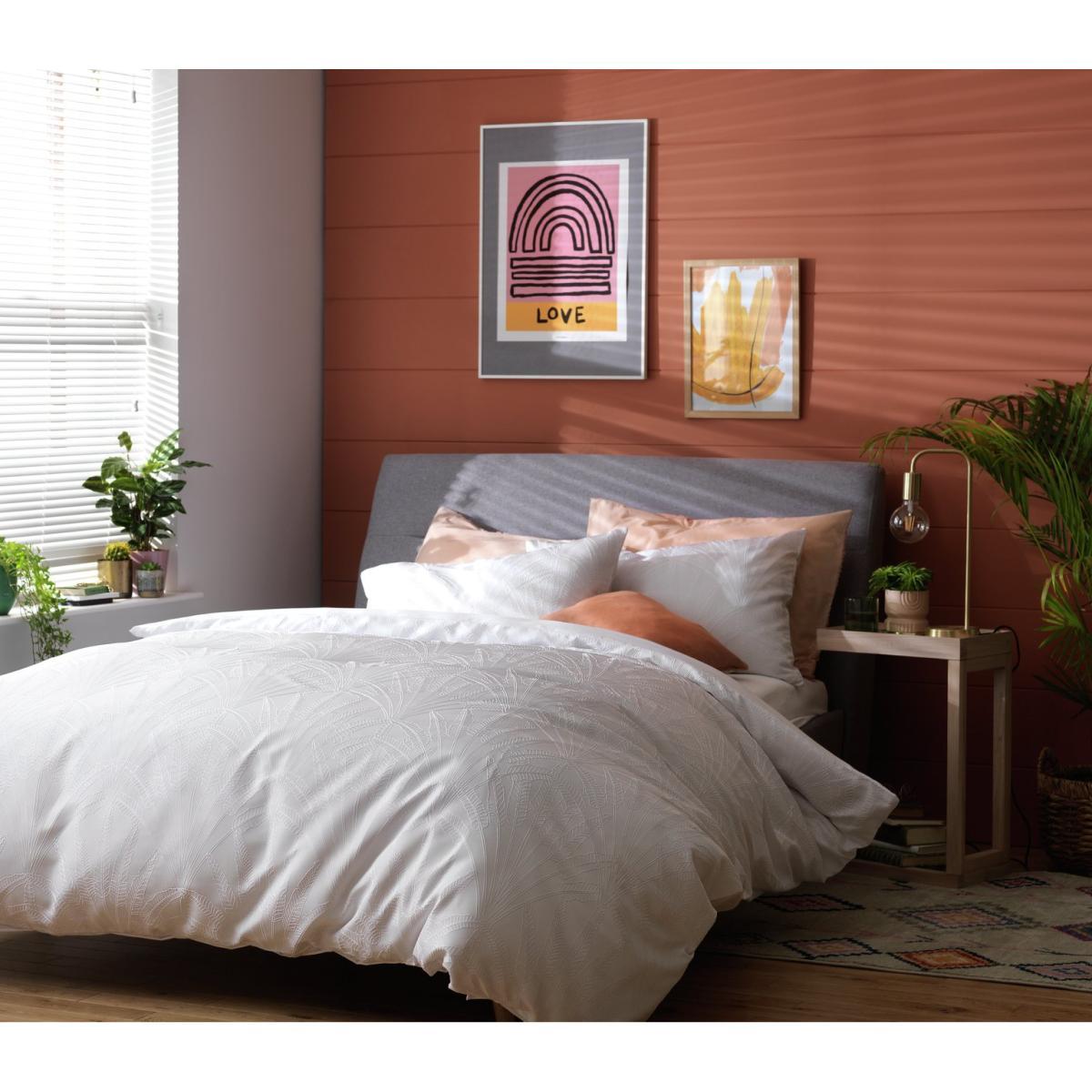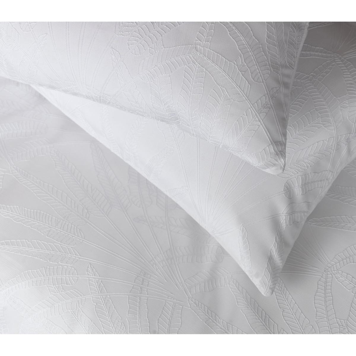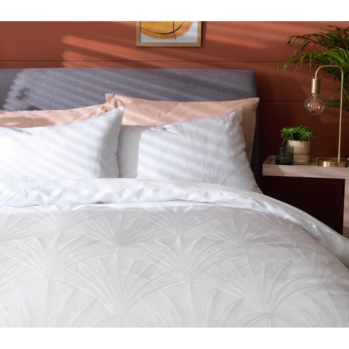 Sleep deep. Bring texture and depth to your bedding with our 3D matelasse bedding set. Fan and palm frond stitching seems to sit atop the pure white background for a luxurious look. Layer with textured throw pillows and blankets for a bed that hits all the right notes for this season's luxe trend. This super soft set is a dream to fall into at night. And it's great value too, with 1 duvet and 2 pillow cases included. Suitable for washing machine and tumble drying. Set includes 1 duvet cover and 2 pillowcases. Machine wash as synthetic at 40 C. Suitable for tumble drying. Face: 100% polyester Reverse: 50% cotton 50% polyester. Buttons for fastening.