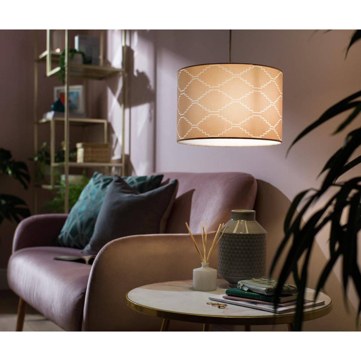 I love the Habitat Agra Flocked Ceiling Shade for its soft pink hue and subtle pattern, which adds a touch of warmth and charm to any room. It works particularly well in cosy, relaxed interiors like bedrooms or living rooms, especially when paired with neutral or pastel palettes. For practical styling, consider combining it with minimalist or Scandinavian furniture to let the shade stand out without overwhelming the space. It also lends itself nicely to eclectic schemes when mixed with textured fabrics or metallic accents, making it a versatile choice for adding a gentle splash of colour and texture.