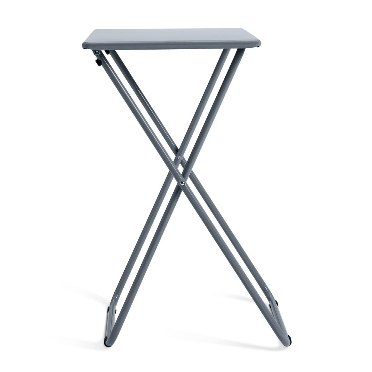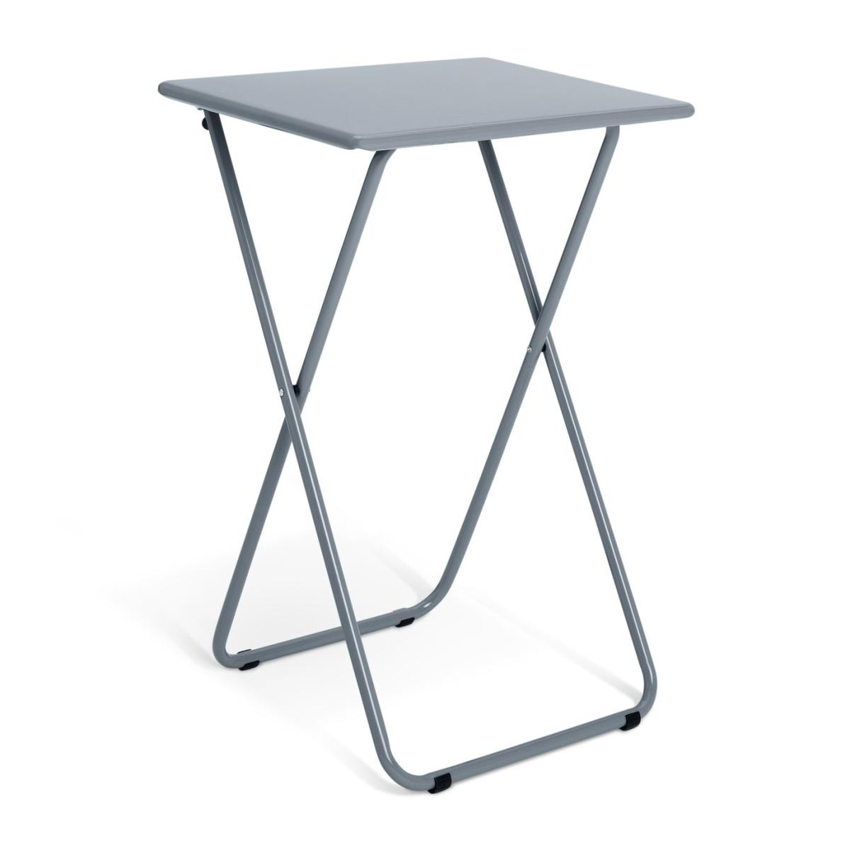 Now you see it, now you don't. The Airo grey metal folding side table is a great looking piece that can be stored flat when not in use. Lightweight yet sturdy, this little table looks super-stylish next to a contrasting colour sofa or armchair. Need a place to rest your laptop? Airo is happy to oblige. Want an instant games table? You've got it. In fact it's such a sweet, neat table we bet it won't be put away too often. Part of the Airo collection. Size H 66, W 49, D 37cm. Made from metal. Weight 2.8kg. Fully assembled. Maximum load weight 10kg. Package Dimensions: Package 1 dimensions: H52.5, W79.1, D18.75cm. Package 1 weight: 18.6kg. General information: Manufacturer's 1 year guarantee.