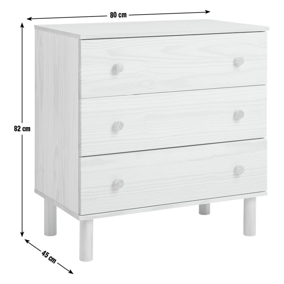 Solid wood is a great way to bring nature home. And the raw beauty of our washed pine 3-drawer chest helps create a calming, scandi-like feel in the bedroom. Plenty of room for jumpers, joggers and gym kit. With a top you can dress with anything from plants to jewellery boxes. Part of the Akio collection. Made of solid wood and MDF. Wooden handles. Additional handles not included. 3 drawers with metal runners. Self-assembly - 2 people recommended (includes wall fixings). If this product is over 60cm high it must be securely attached to the wall to prevent overturning. Dimensions: Size H82, W80, D45cm. Internal drawer H11.8, W71, D33.5cm. Handle size: L3, W3.3cm. Weight 21.96kg. Package Dimensions: Package 1 dimensions: H15.5, W90.2, D48.6,. Package 1 weight: 25.18kg. FSC certified meaning the materials used for this product are responsibly sourced. General information: We are excited to be welcoming some of our favourite HOME products into the Habitat range. Your product may arrive in Habitat or HOME packaging. Manufacturer's 1 year guarantee.