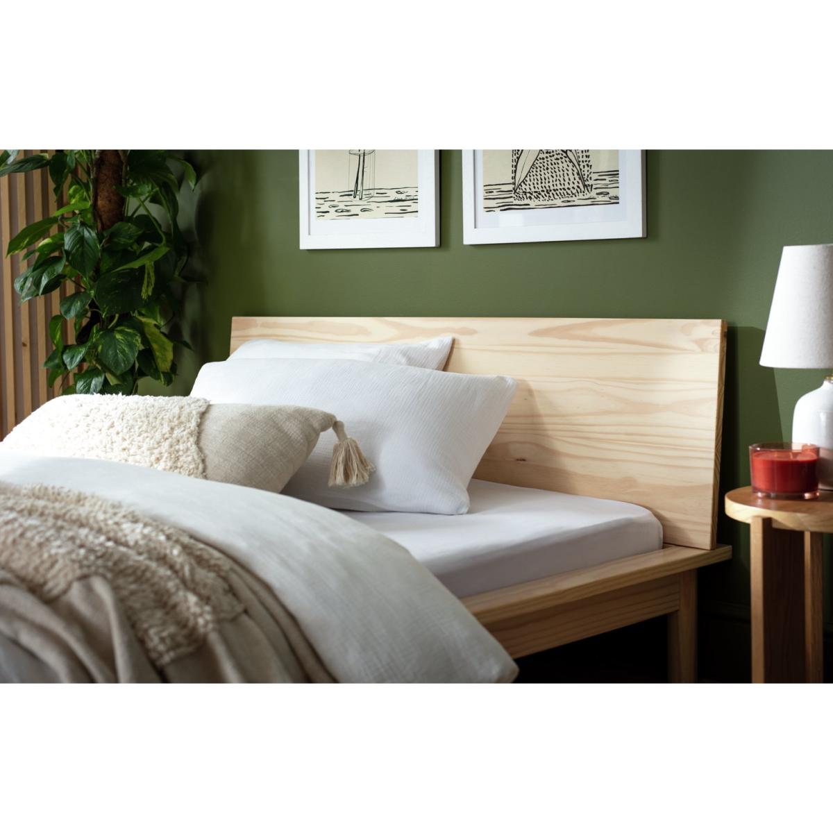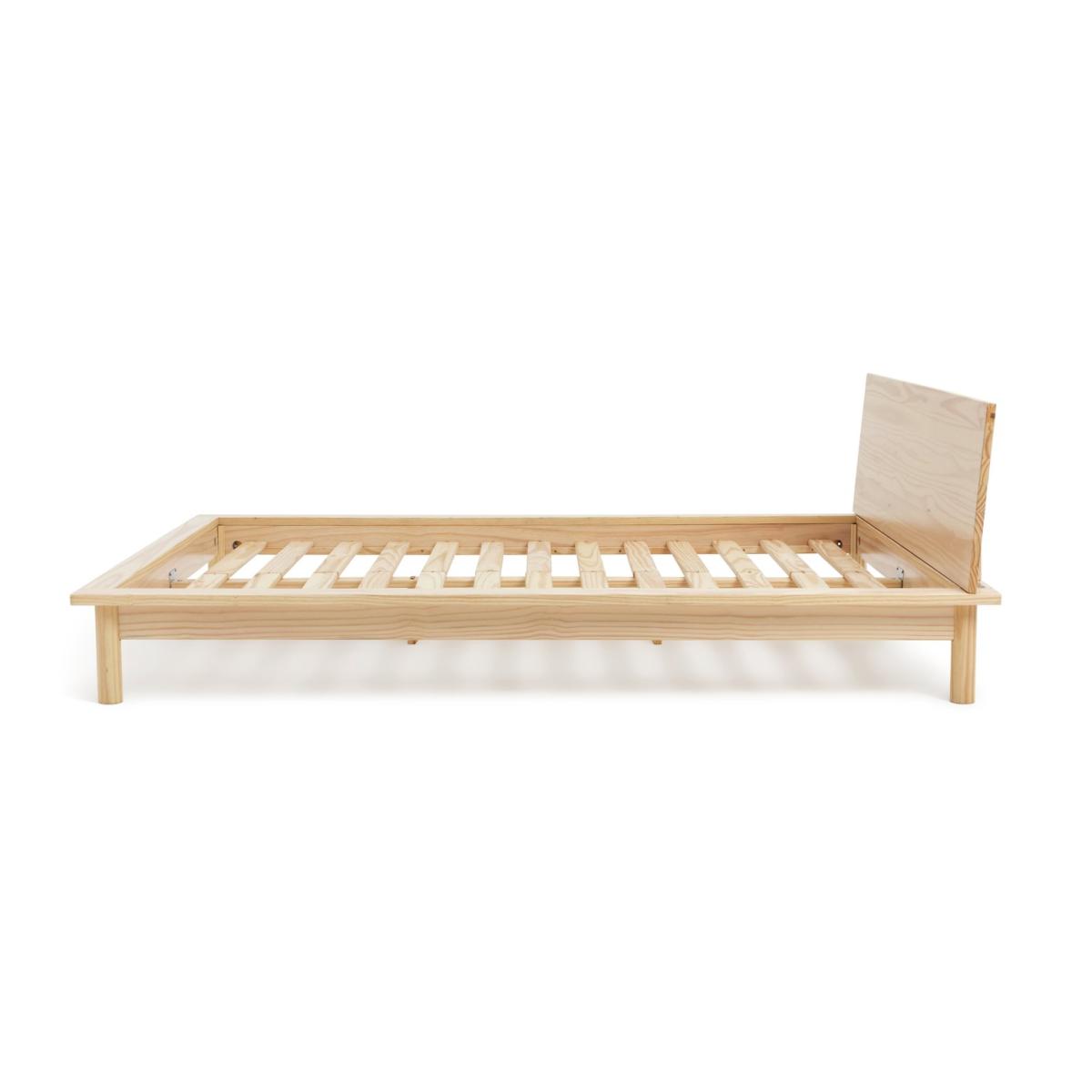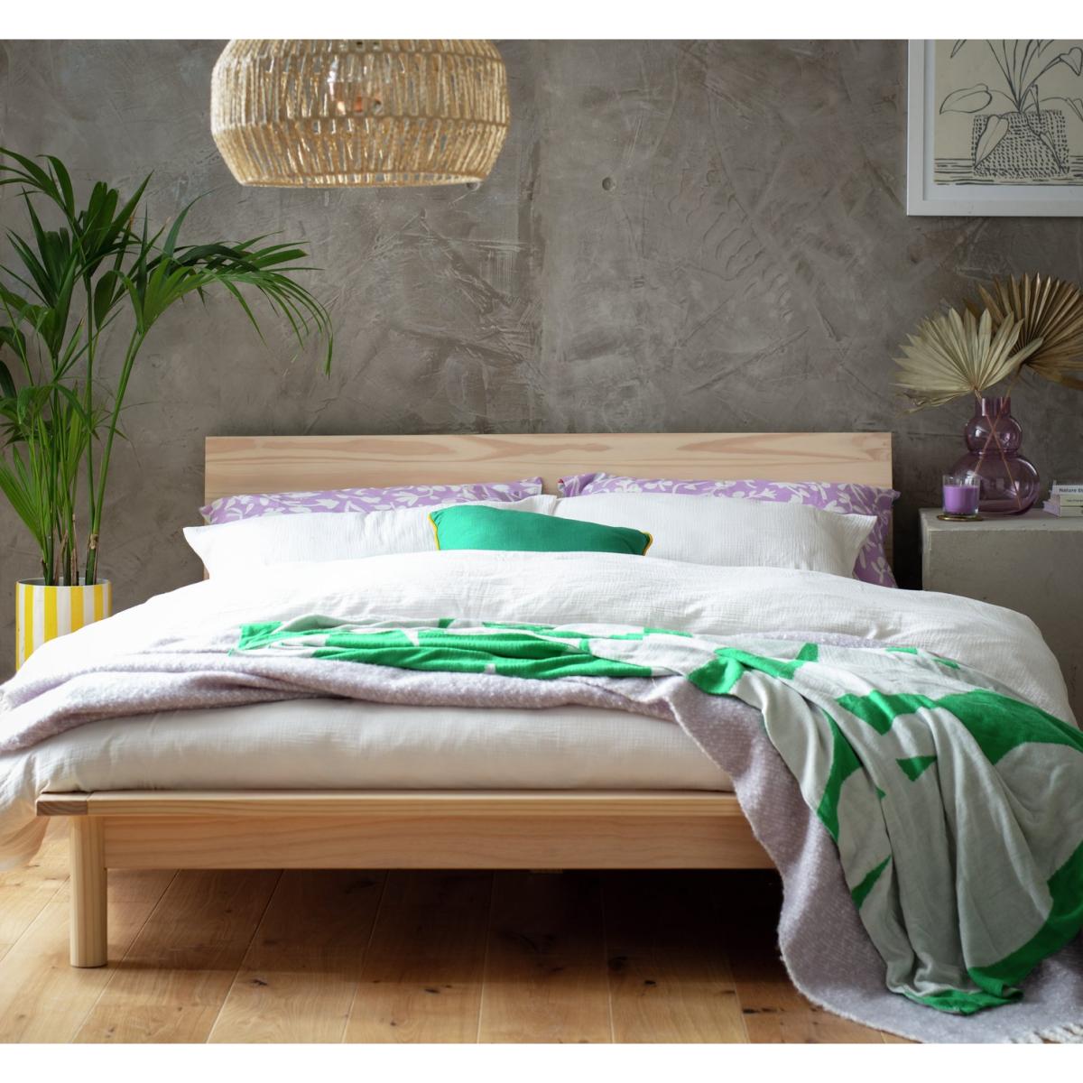Our Akio wooden bed frame is reminiscent of the simple Japanese style. The solid wood is left unpainted to add to its natural beauty. Designed to hold a double mattress the base slats are encased in an outer frame which emphasizes the clean design. Treat your new bedframe to new bedlinen. From pure white, to boldly patterned we have your dream set. Part of the Akio collection. Wooden frame. Base with wooden slats. Size W150, L205, H68cm. Height to top of siderail 25cm. 14cm clearance between floor and underside of bed. Self-assembly - 2 people recommended. Package Dimensions: Package 1 dimensions: H12.5, W48.5, D208cm. Package 1 weight: 34.5kg. General Information: We are excited to be welcoming some of our favourite HOME products into the Habitat range. Your product may arrive in Habitat or HOME packaging. Manufacturer's 1 year guarantee.