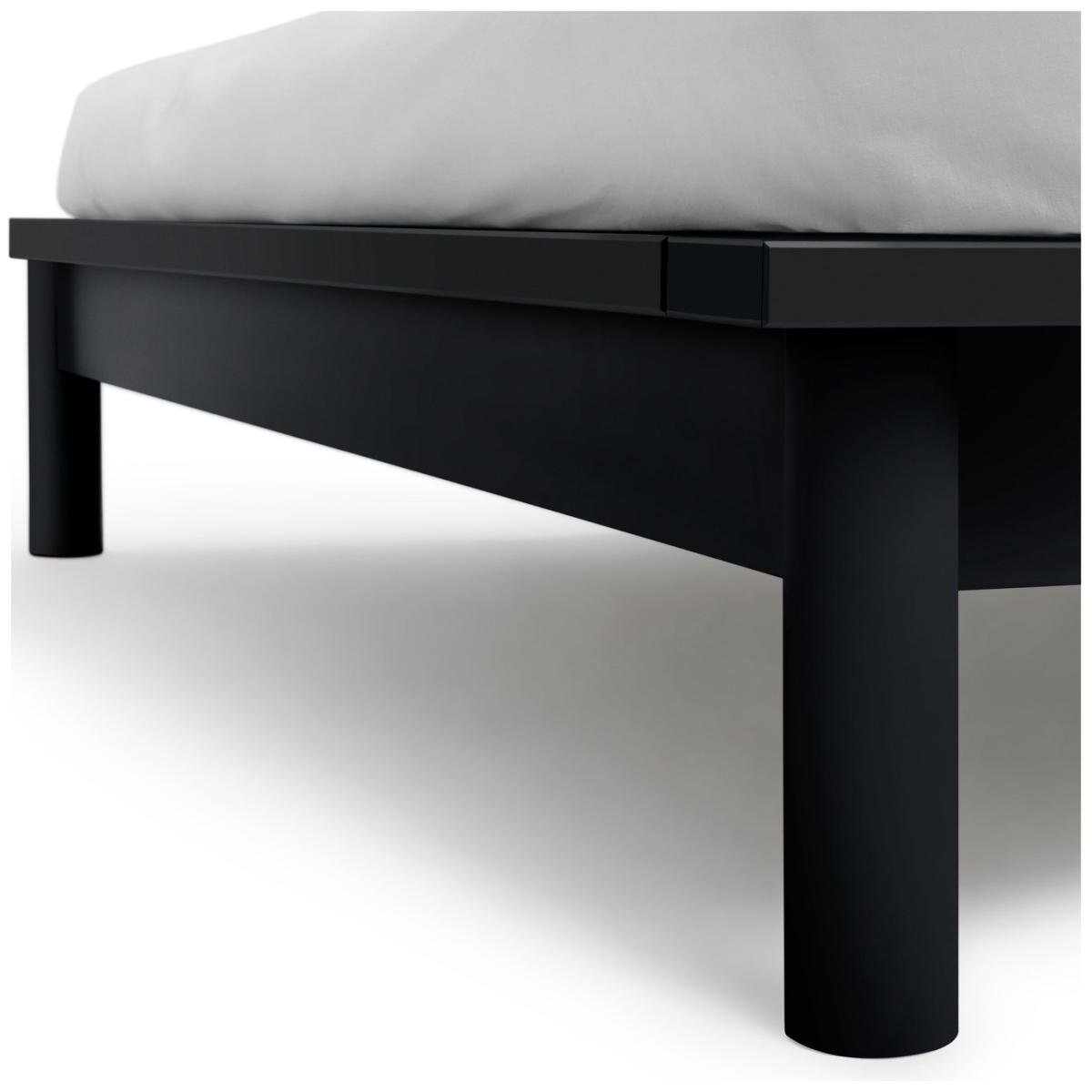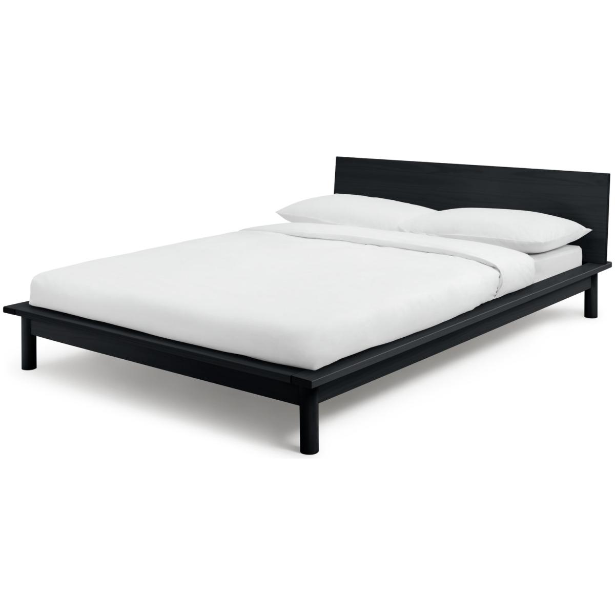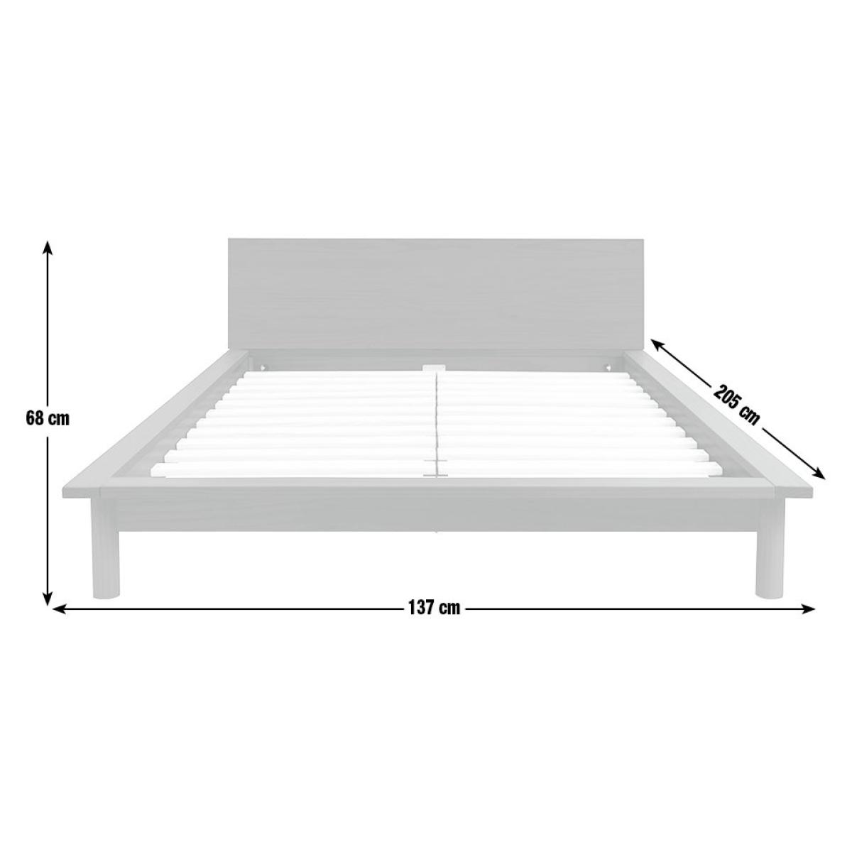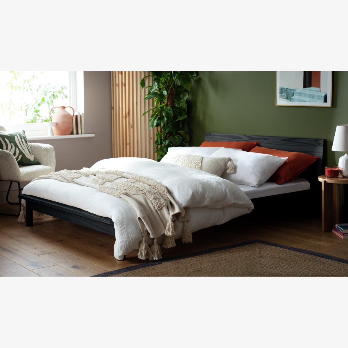 Our Akio wooden bed frame is reminiscent of the simple Japanese style. The solid wood is painted black to add to its stark beauty. Designed to hold a small double mattress the base slats are encased in an outer frame which emphasizes the clean design. Treat your new bedframe to new bedlinen. From pure white, to boldly patterned we have your dream set. Part of the Akio collection. Wooden frame. Base with wooden slats. Size W137, L205, H68cm. Height to top of siderail 25cm. 14cm clearance between floor and underside of bed. Total maximum user weight 220kg. Self-assembly - 2 people recommended. Package Dimensions: Package 1 dimensions: H9.4, W205.3, D48.9cm. Package 1 weight: 29.6kg. General Information: Manufacturer's 1 year guarantee.