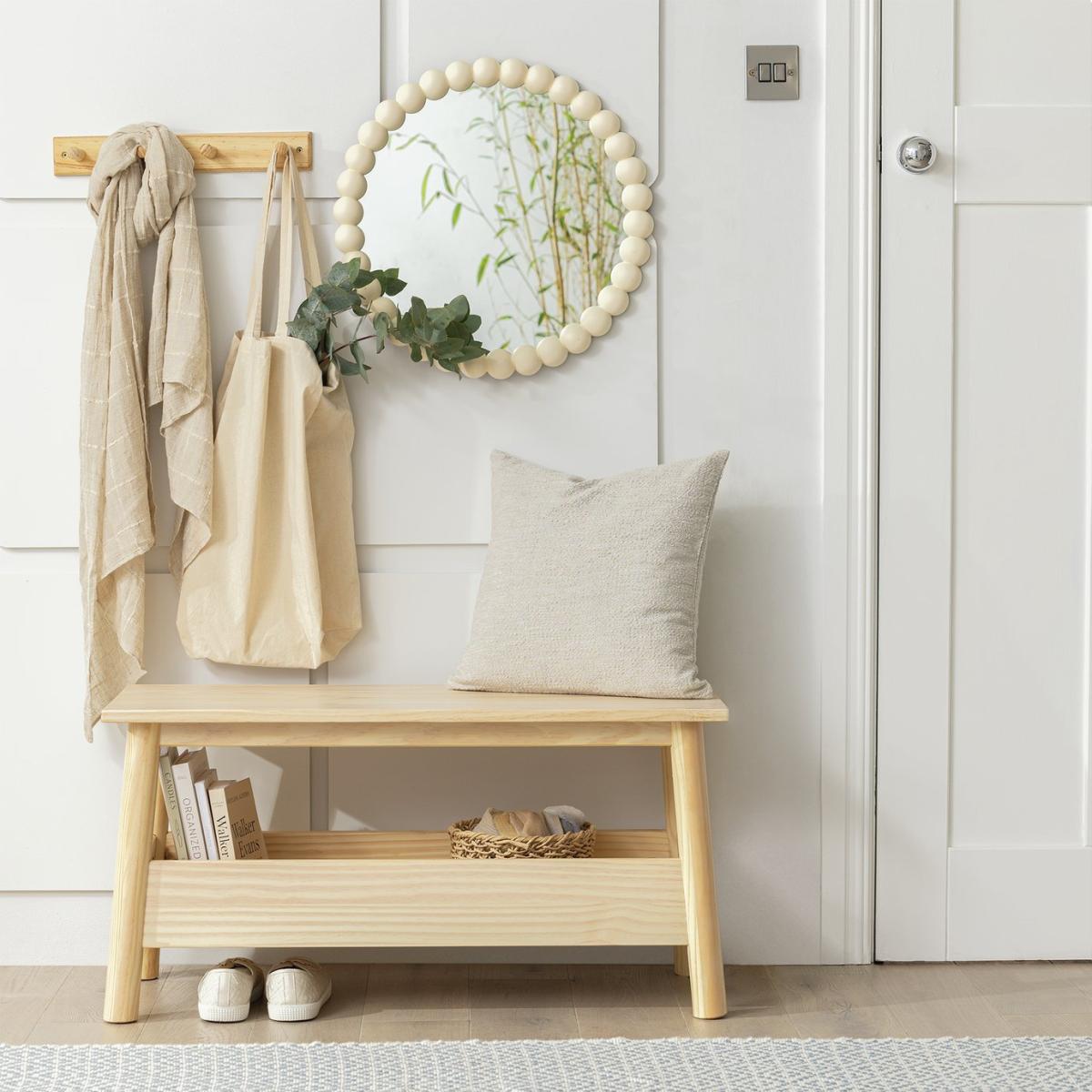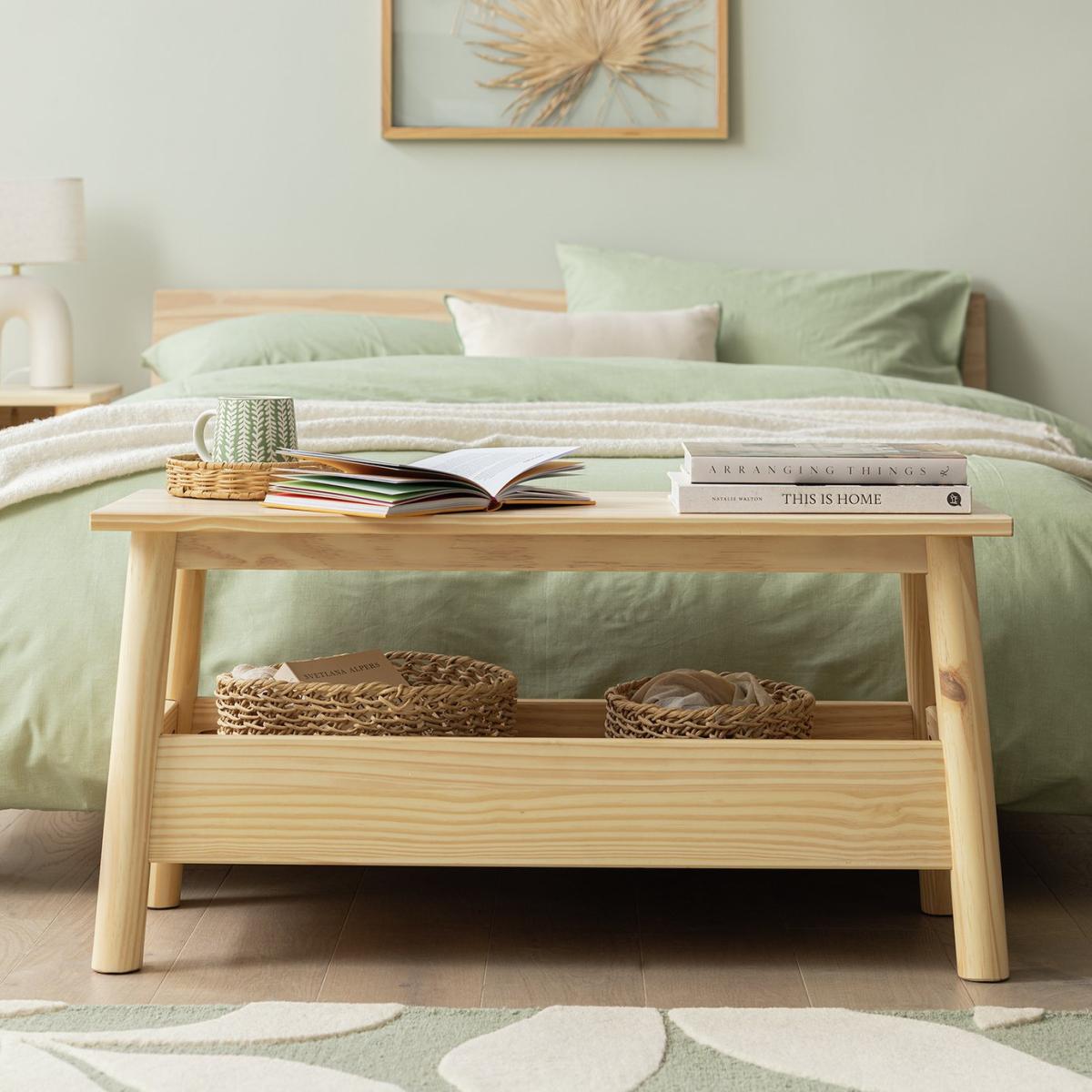 Solid wood is a great way to introduce nature at home. And the raw beauty of our 2-seater washed pine dining bench provides a calming, scandi-like feel. And when you don't need it to sit at the table, use it as a sideboard. Its built-in under-shelf is just the spot for magazines and books, napkins and notepads. Part of the Akio collection. Chair: Size H45, W90, D35cm. Seat height 45cm. Solid wood legs. 1 bench. Bench made from solid wood frame. Solid wood seat pad. Built in storage. Self-assembly - 1 person recommended. Max user weight per chair 100kg. Individual chair weight 11kg. Dust or wipe with a damp cloth only. Package Dimensions: Chair package size: H12.5, W94.2, D43cm. General information: Manufacturer's 1 year guarantee. FSC certified meaning the materials used for this product are responsibly sourced.