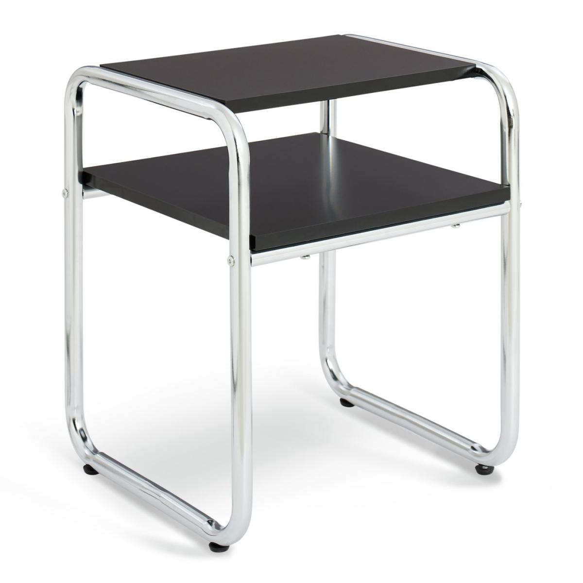 Bedside with a bold twist. Albers blends minimalist design with an industrial edge. Black shelves bring depth while the sleek, chrome frame adds a polished, urban feel. Two open tiers offer easy access to your nighttime essentials – think books, lamps and a glass of water. So handy. Part of the Albers collection. Made of MDF and steel. 2 fixed shelves. Packed flat - 1 person recommended. Dimensions: Size H46.2, W39, D37cm. Weight 3.9kg. Package Dimensions: Package 1 dimensions: H9.5, W52, D41cm. Package 1 weight: 4.8kg. General information: By choosing FSC certified products, you are supporting responsible management of the world's forests. Manufacturer's 1 year guarantee.