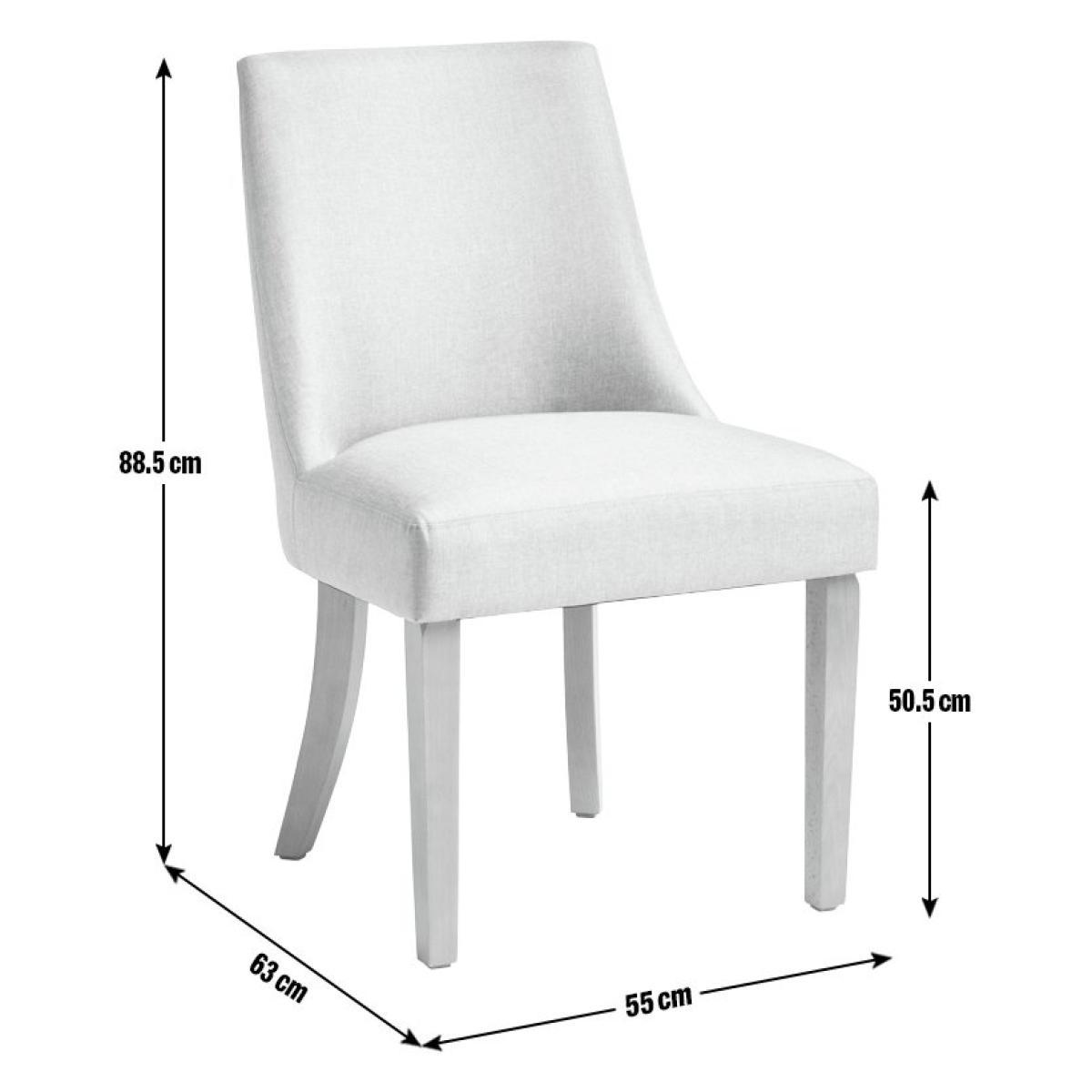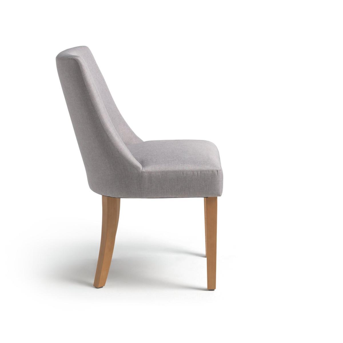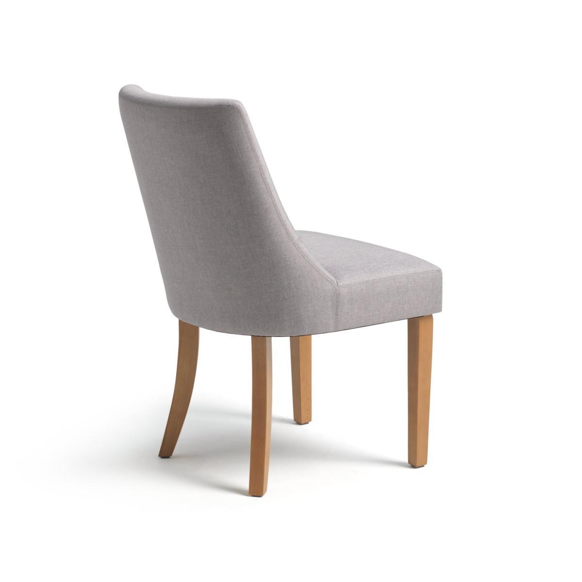 Fine dining starts with fine seating. Our pair of modern midback dining chairs combine comfort with contemporary design. The soft grey upholstery sits beautifully against the natural beechwood. And the gently curved back legs bring a distinctively elegant touch. Enjoy relaxing over a meal? The padded seat and shaped backrest support you all the way. So pull up a chair, settle in, the night is young.