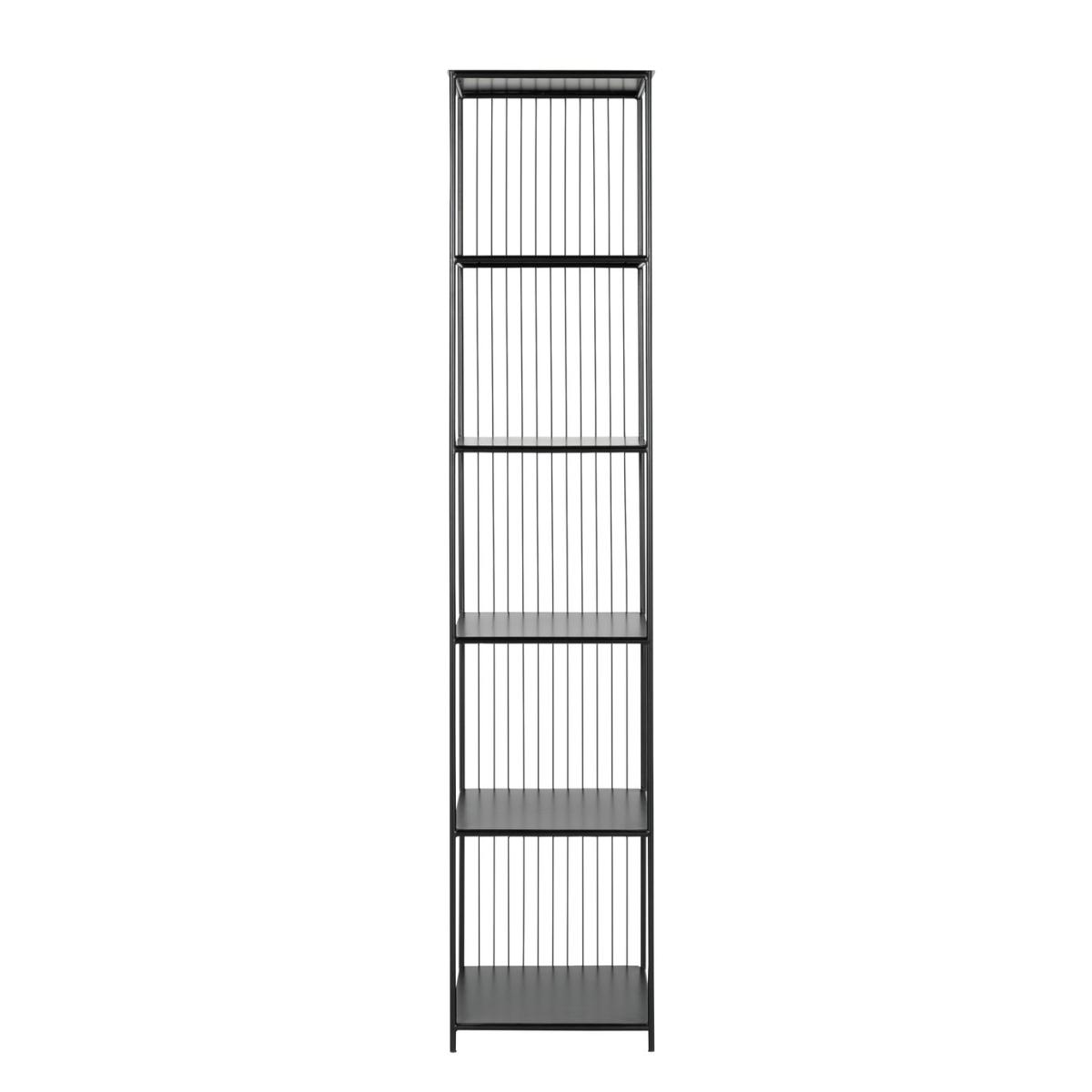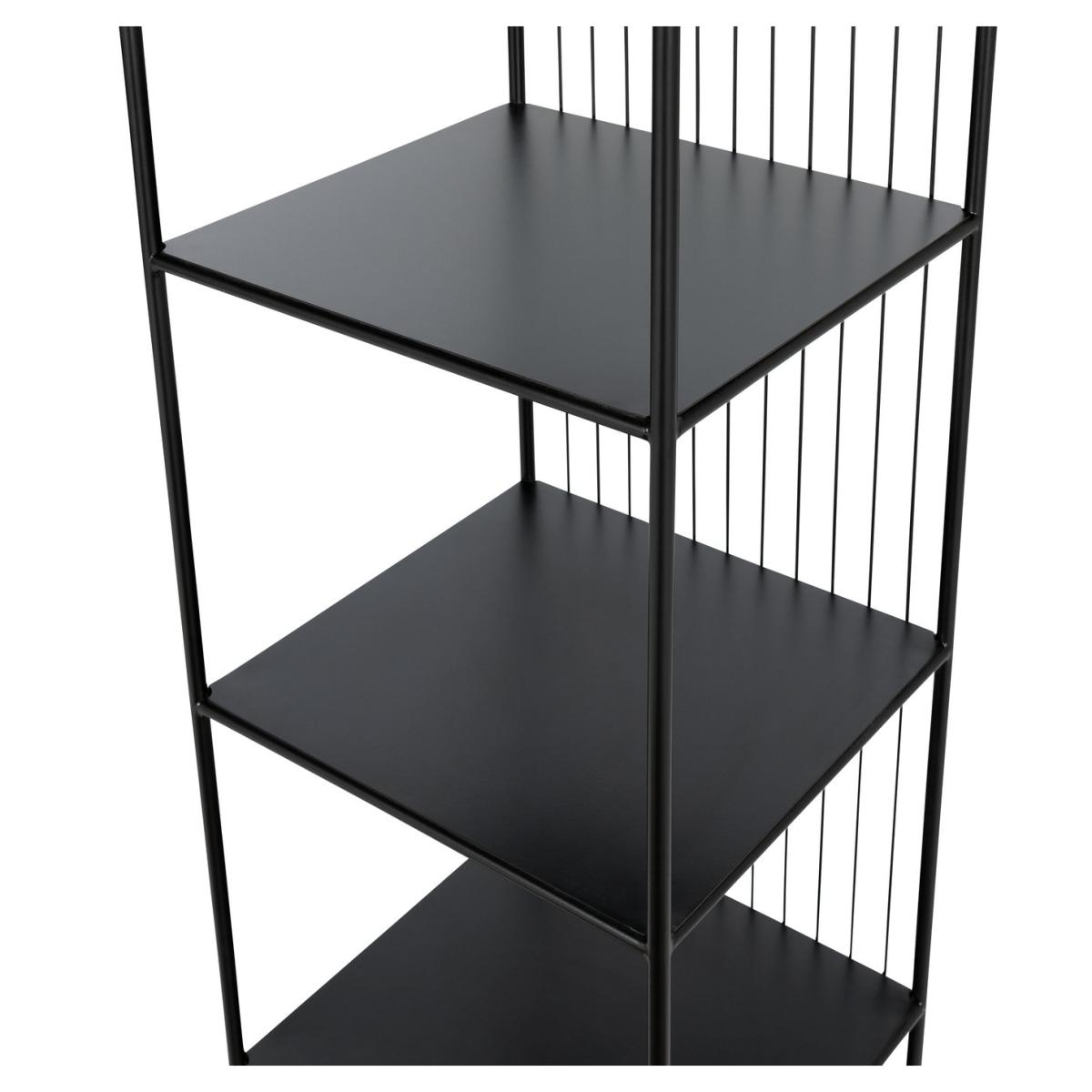 Urban, industrial and bang on-trend. Our modern black shelving unitis a cool way to organise your space. Features 5 shelves in powder-coated iron, and a slim wired back piece that makes a bold statement. Arrives fully assembled so fuss free. Fill it with books, photos or some trailing fresh greenery. Loft living style? You've nailed it.