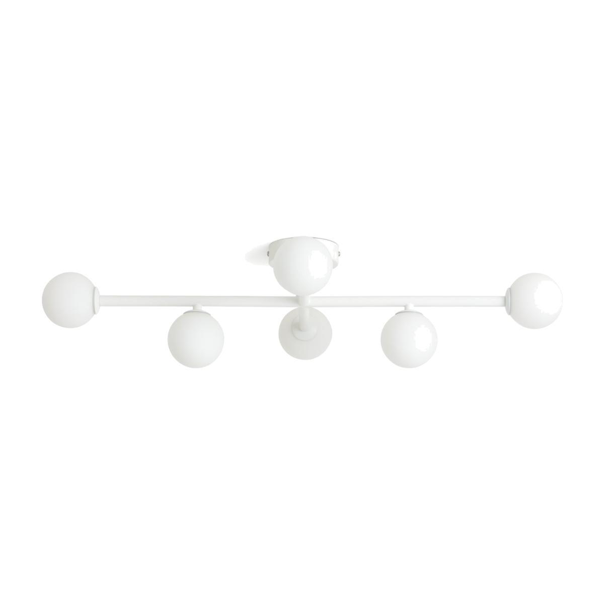Say hello to the Scandi chandelier. This stunning ceiling light, in sprayed white steel, with 6 spherical glass shades will add instant mid-century style to your look. Lovely in your living room it's also beautiful in a bathroom. With an IP rating of 44, it's glowing globes are steam and moisture resistant. A flat-to-ceiling gallery and shorter drop also makes this chic ceiling lamp the ideal statement light for lower room heights. Brilliant.