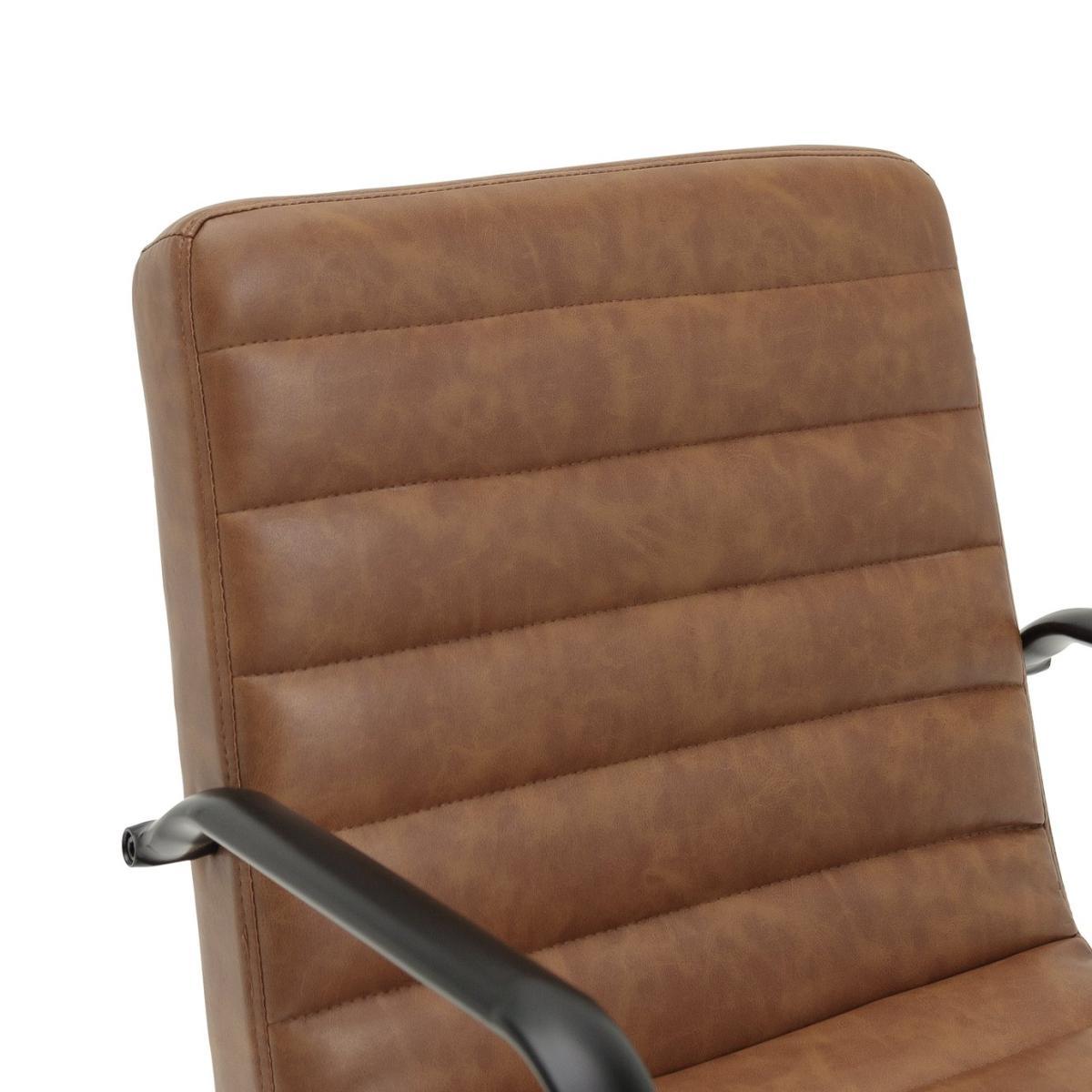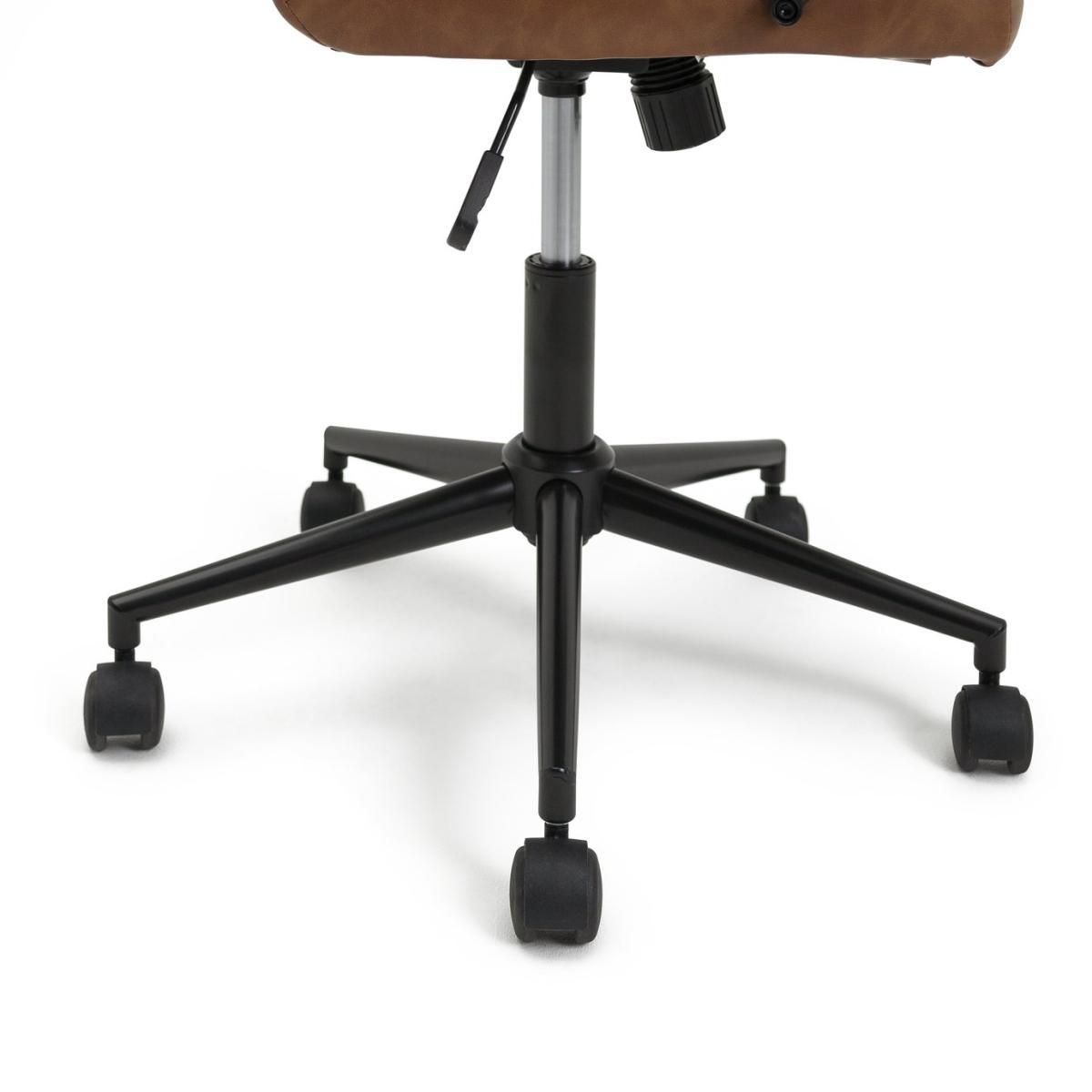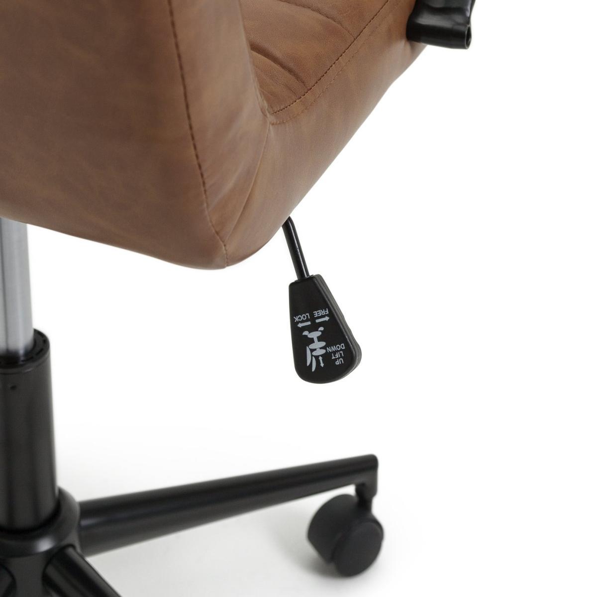 I love this office chair for its timeless tan faux leather finish, which adds a warm, inviting touch to any workspace. It pairs well with both modern and vintage interiors, working particularly well in neutral or earthy colour schemes. It’s a practical choice for creating a professional yet relaxed environment. To style around it, consider adding a soft throw or colourful cushions to soften the look or pairing it with a sleek desk for a functional set-up. Its understated design means it can easily blend into a variety of home offices, making it a versatile addition that’s both comfortable and stylish.